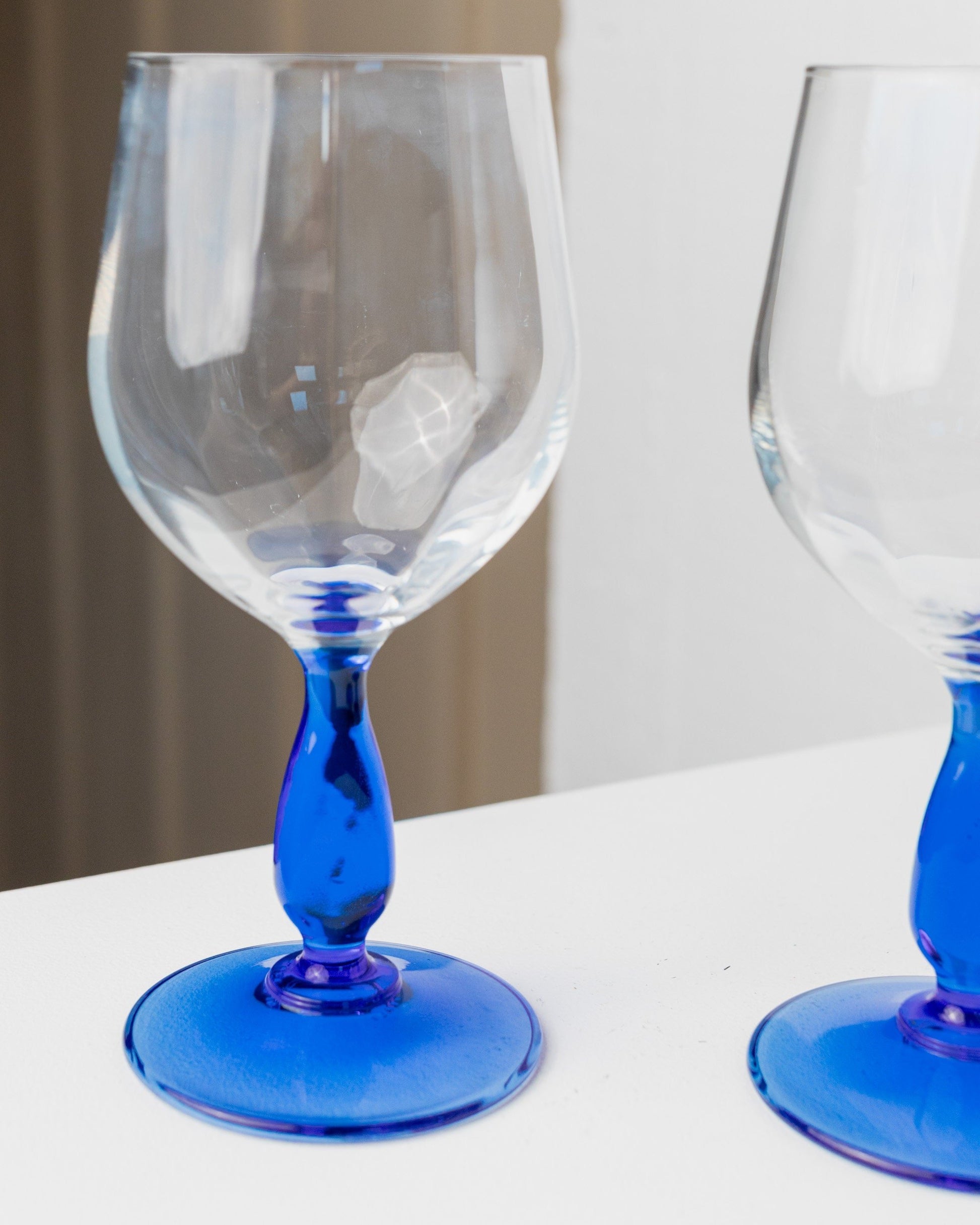 Discover the timeless charm of the 1980s with this exquisite set of two royal blue wine glasses. These vintage glasses, made in Italy, combine elegance and functionality in a stunning design. The royal blue hue adds a sophisticated touch to any table and makes them ideal for special occasions or for adding style to everyday life. Enjoy every sip from these glasses, which fit perfectly in your hand with their pleasantly flattened stem.
