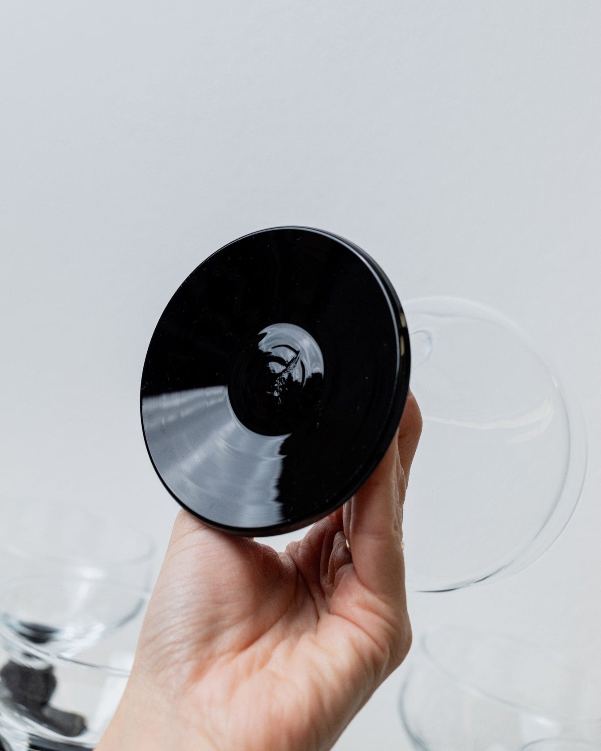 Vintage drinking glass Memphis Black, clear glass set of 8