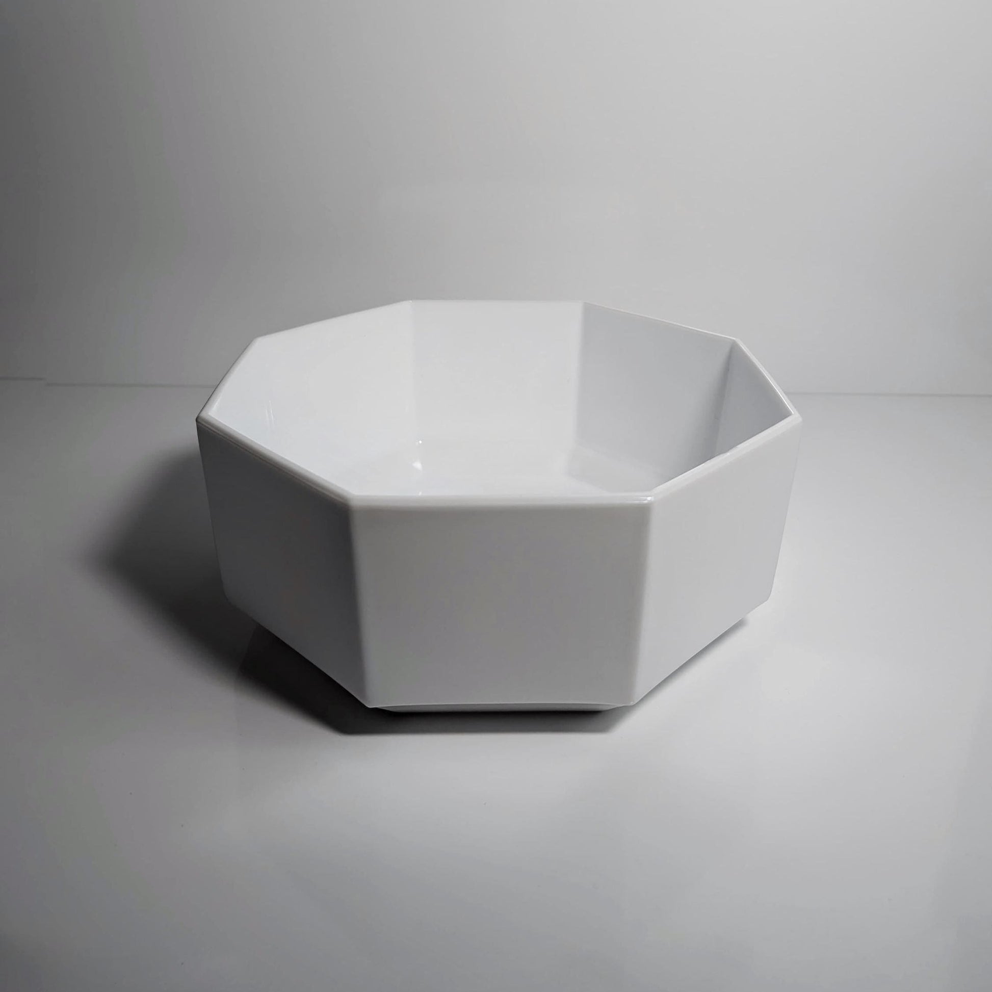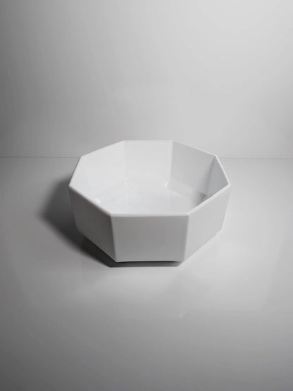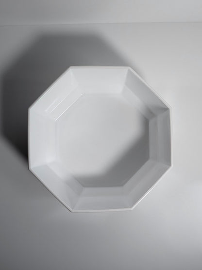 Beautiful large bowl / dish from the late 1980s on Arcoroc France from the world-famous Octime series. Here in the rare white option made of Arcopal / frosted glass. Octagonal design in Art Deco Revival style.