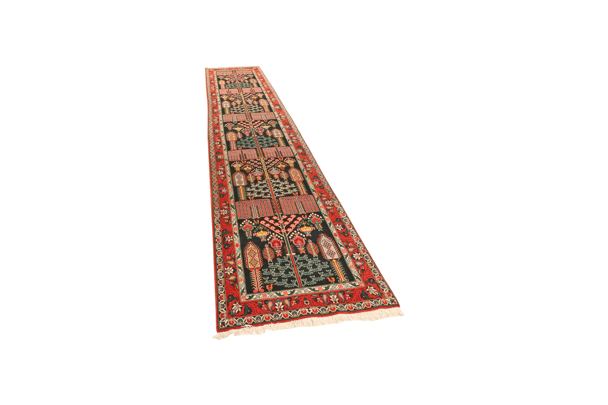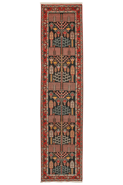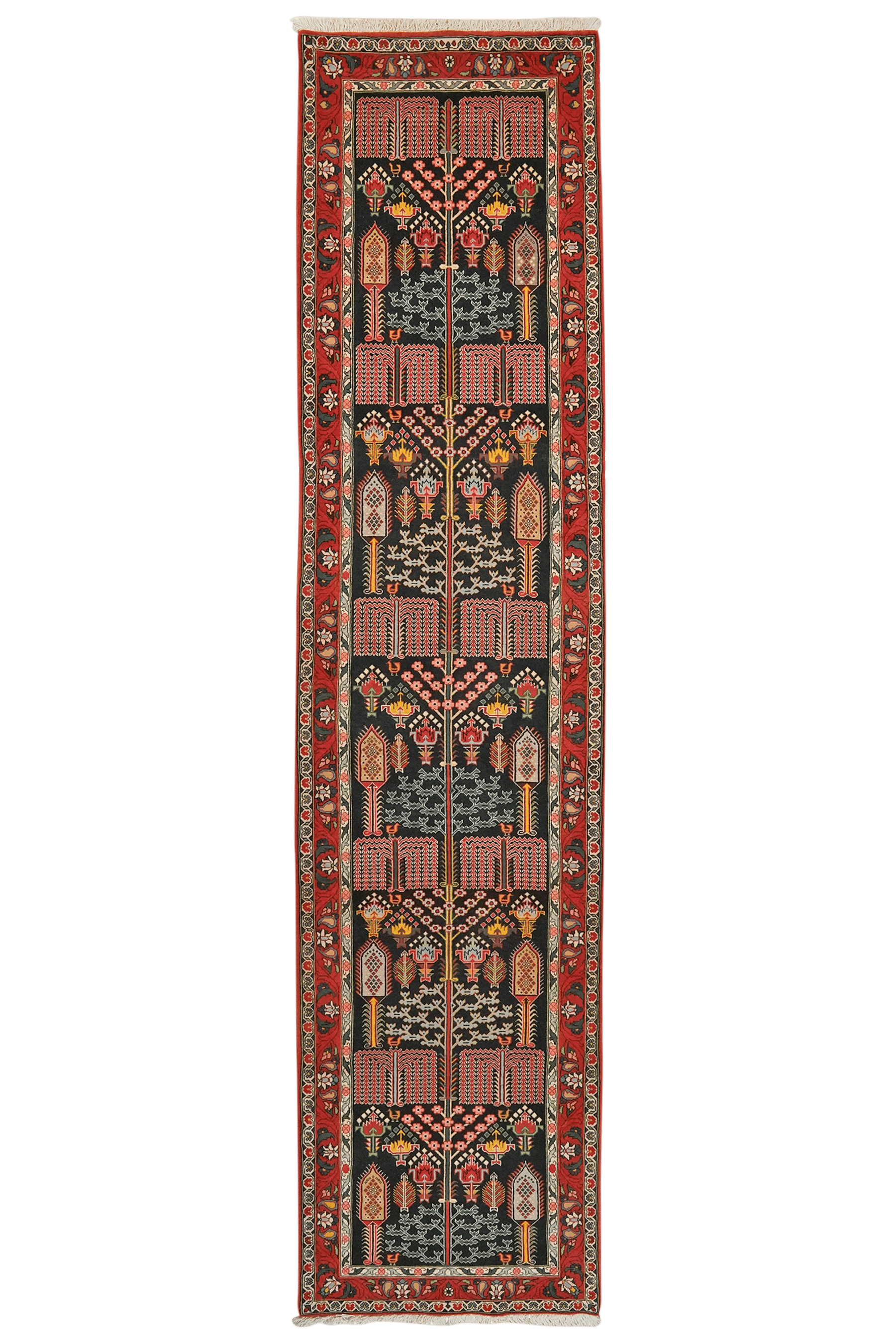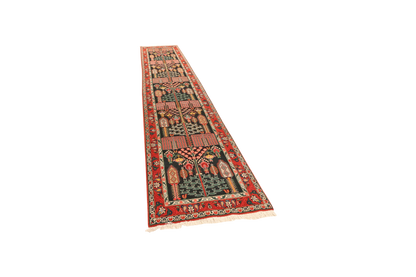 The Bakhtiar Vintage rug in size 384x92cm is an expression of master craftsmanship and cultural history. These rugs are known for their dense knotting and the use of hand-spun wool, which gives them a unique texture and durability. The designs are often inspired by the nature and lifestyles of the Gashgai and Lori nomads who make these rugs. They are not only decorative but also functional, as they bring warmth and comfort to any room.