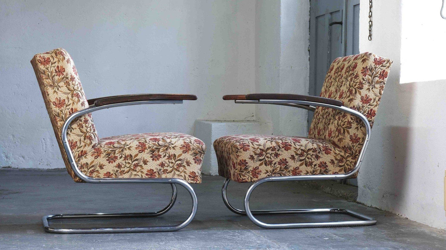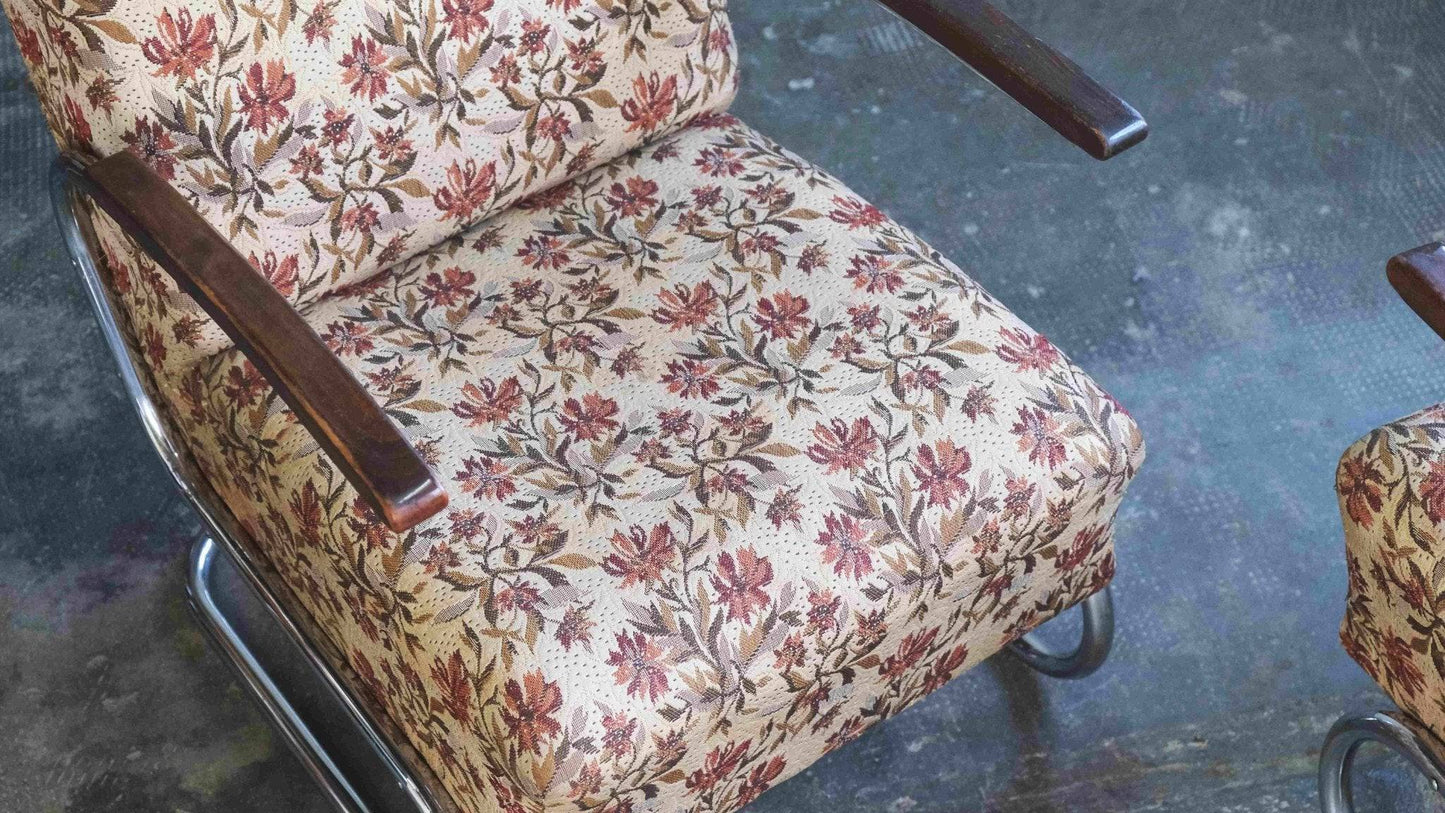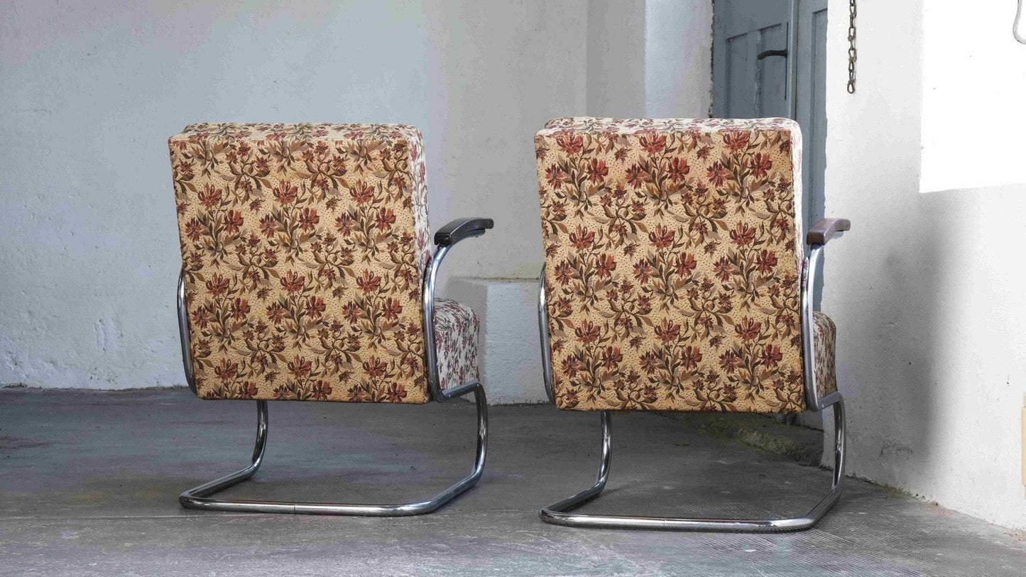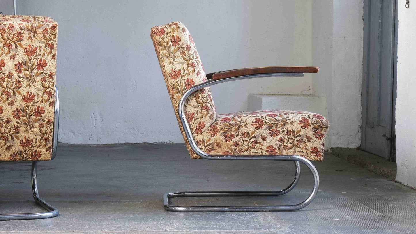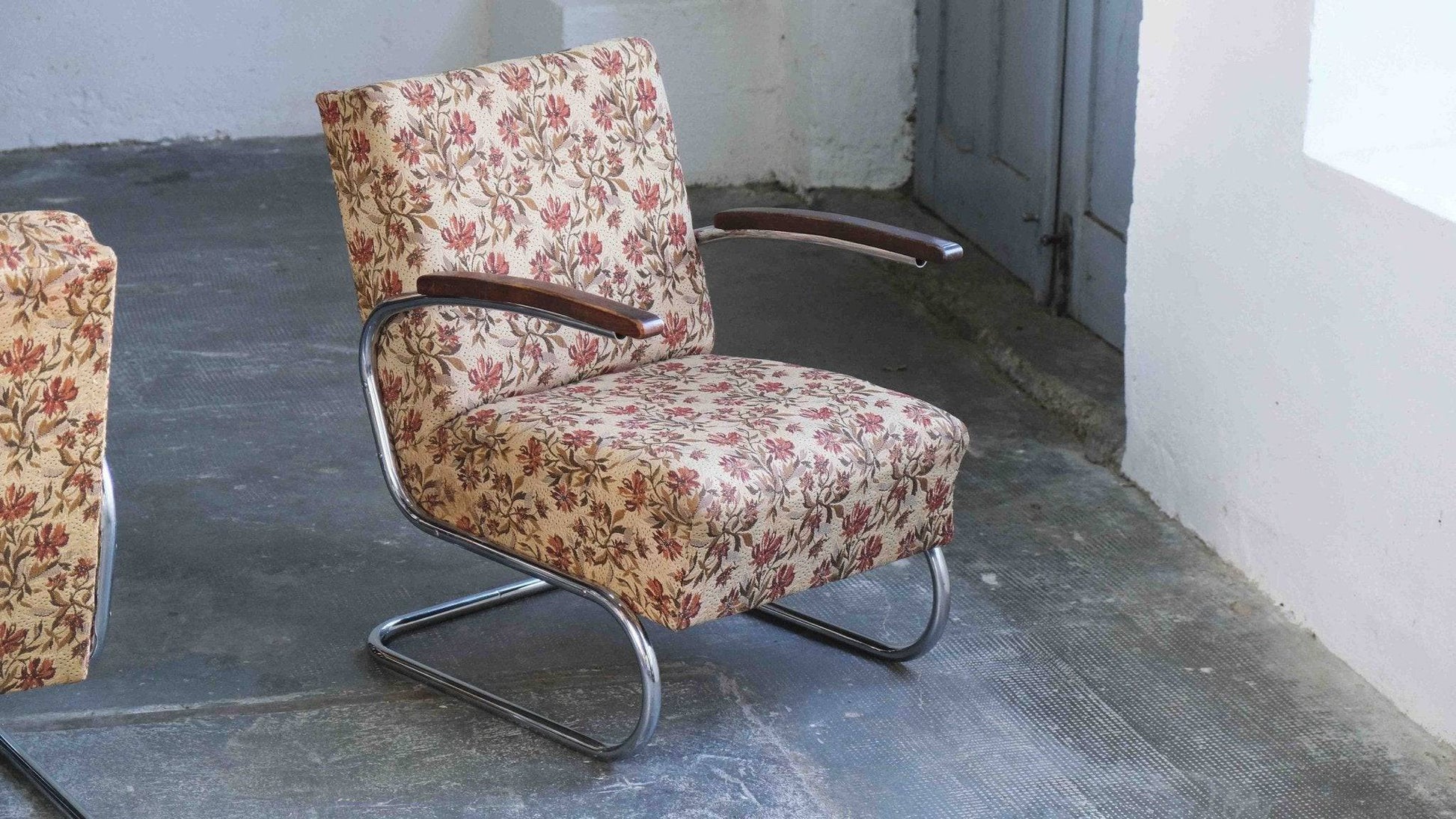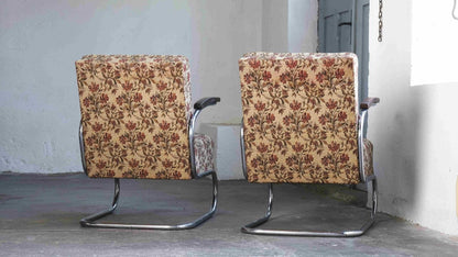 Vintage armchair S 411 floral pattern by Thonet chrome, fabric