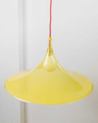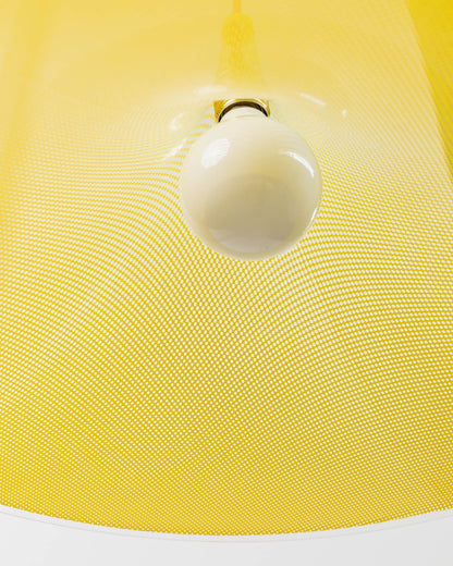 Vintage ceiling lamp with yellow fabric shade from the 1960s