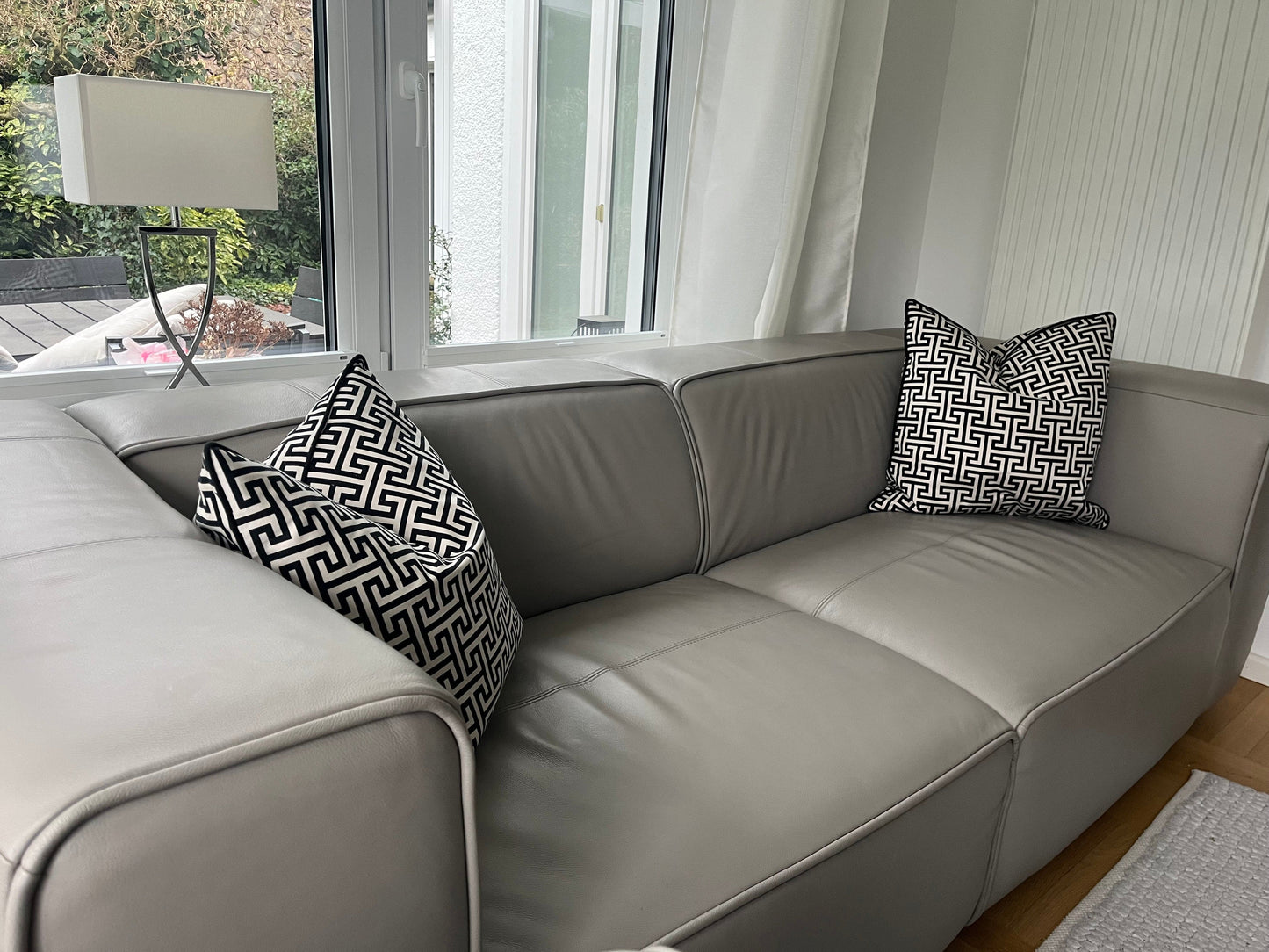 The modular nature of the Carmo sofa also offers flexible adaptability to different room sizes and layouts. It is the ideal choice for design lovers who value quality, functionality and timeless style. Whether you are looking for a statement piece for your living room or a comfortable seat for everyday family life - the BoConcept Carmo leather sofa in beige-grey meets all requirements with flying colors.