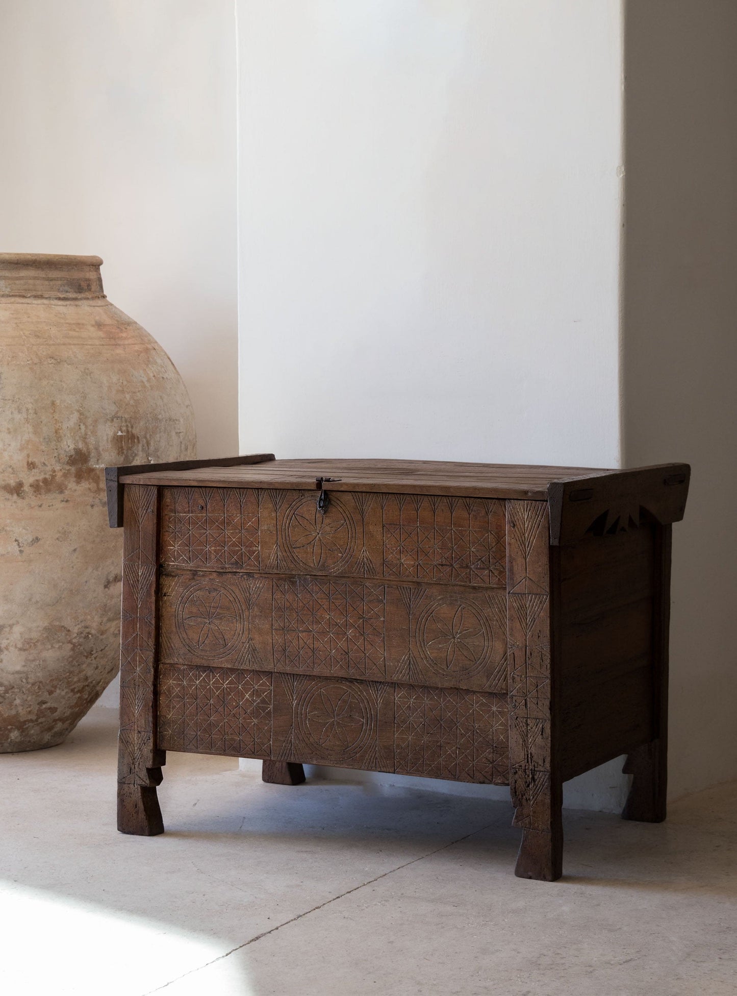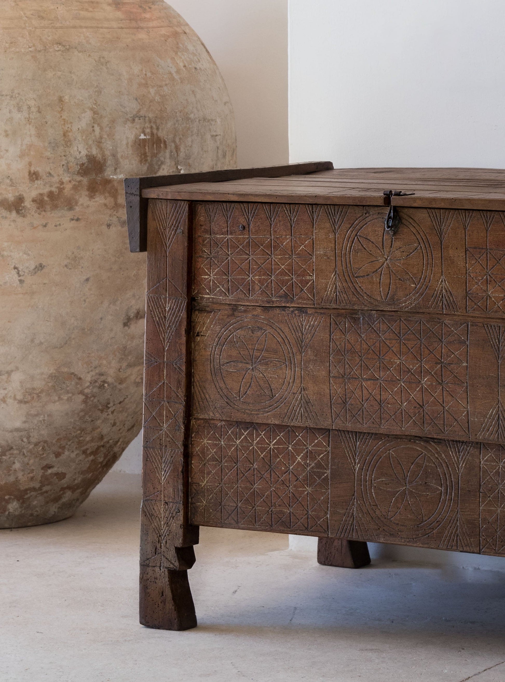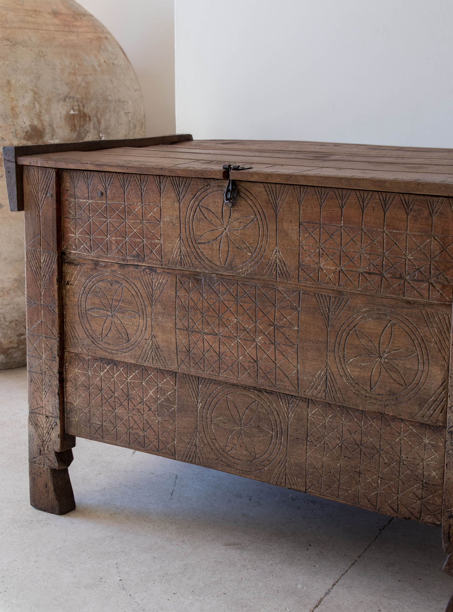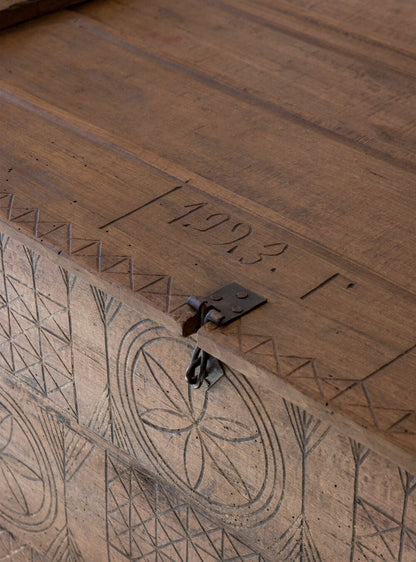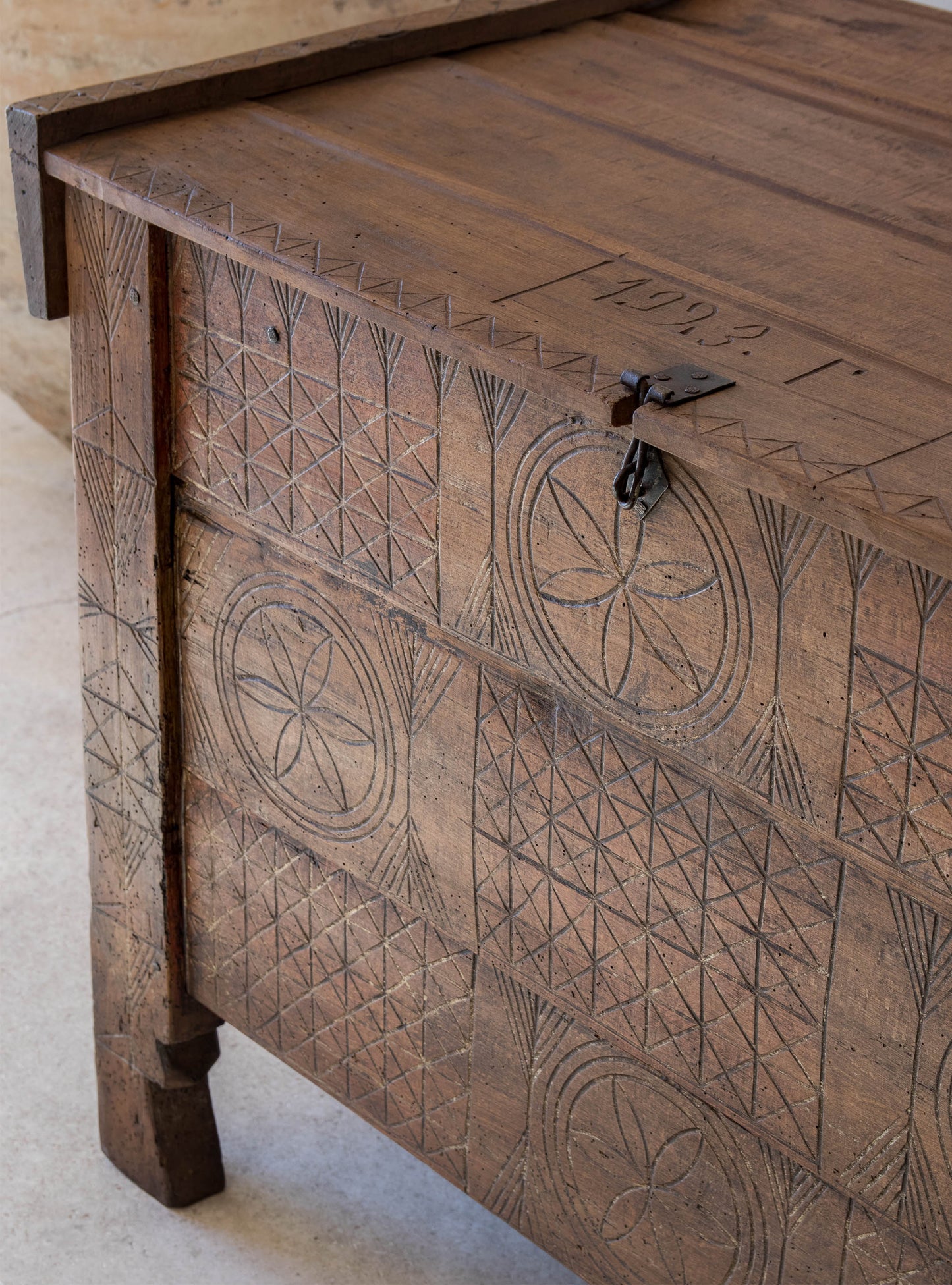 A delightful beech chest with an opening top. These chests were made by shepherds and hand carved with ancestral symbols. The year 1923 is written on the top. A delightful beech chest with an opening top. These chests were made by shepherds and hand carved with ancestral symbols. The year 1923 is written on the top. A delightful beech chest with an opening top. These chests were made by shepherds and hand carved with ancestral symbols. The year 1923 is written on the top.