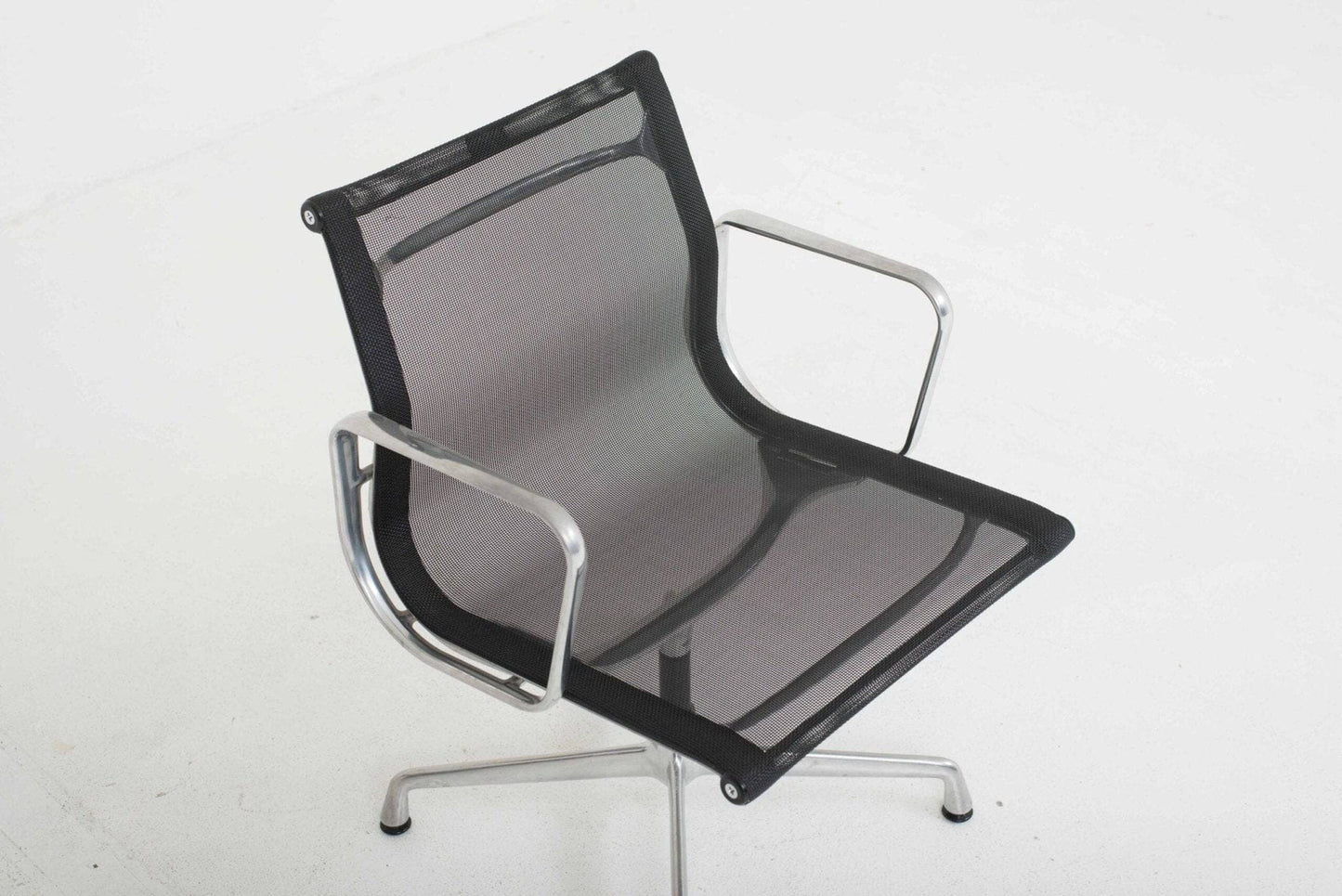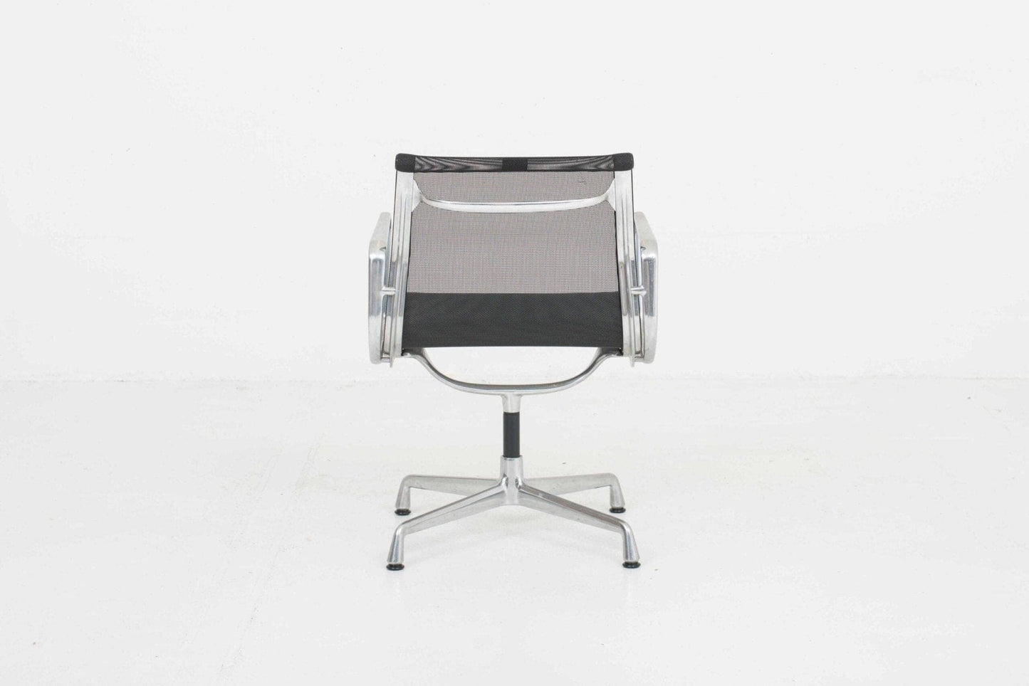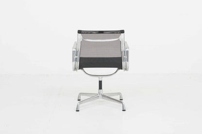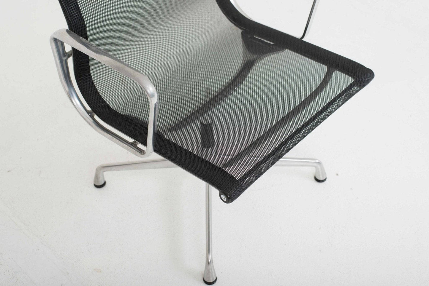 Vintage office chair Eames EA 108 by Vitra black mesh fabric polished aluminum