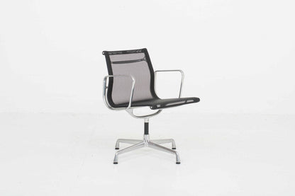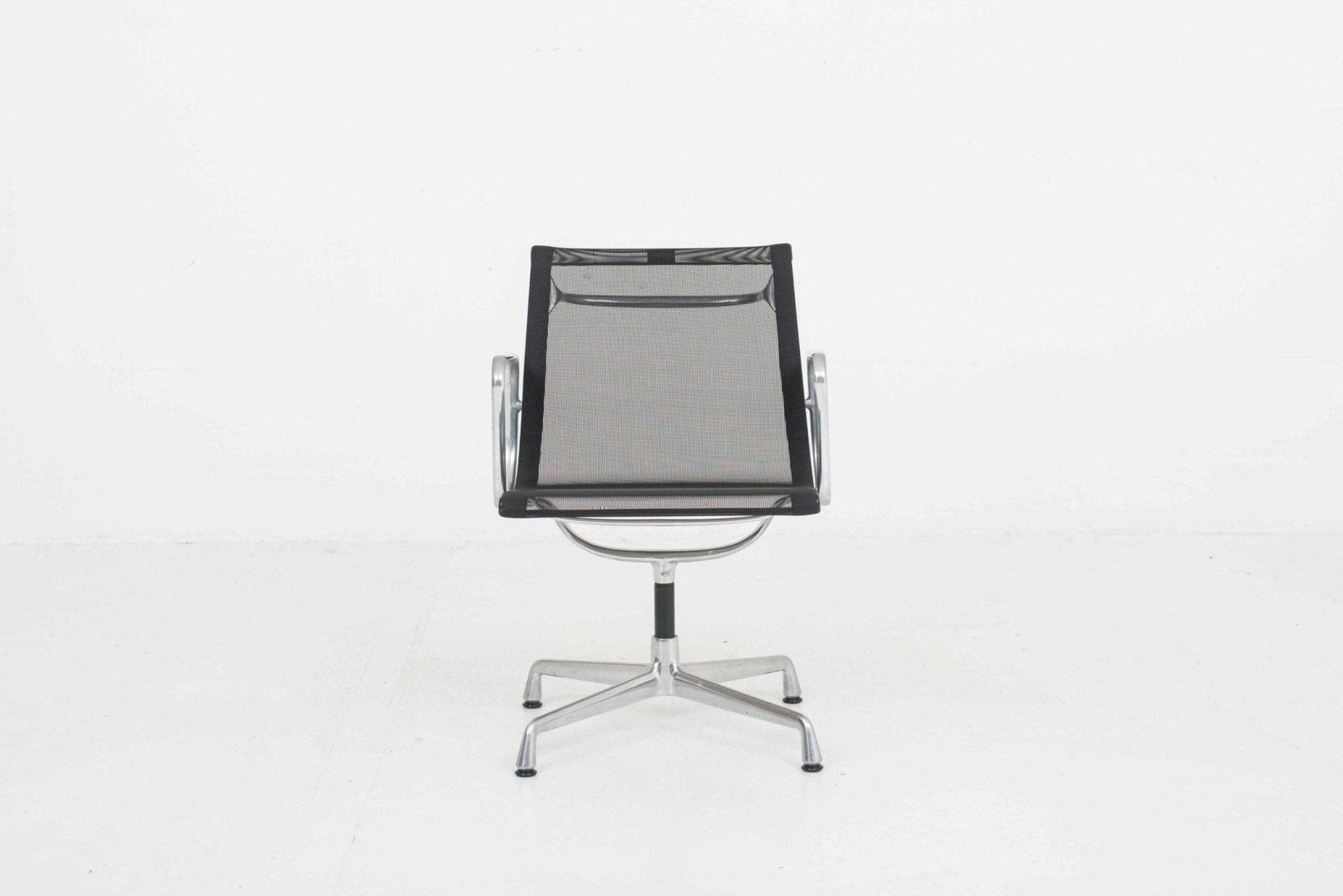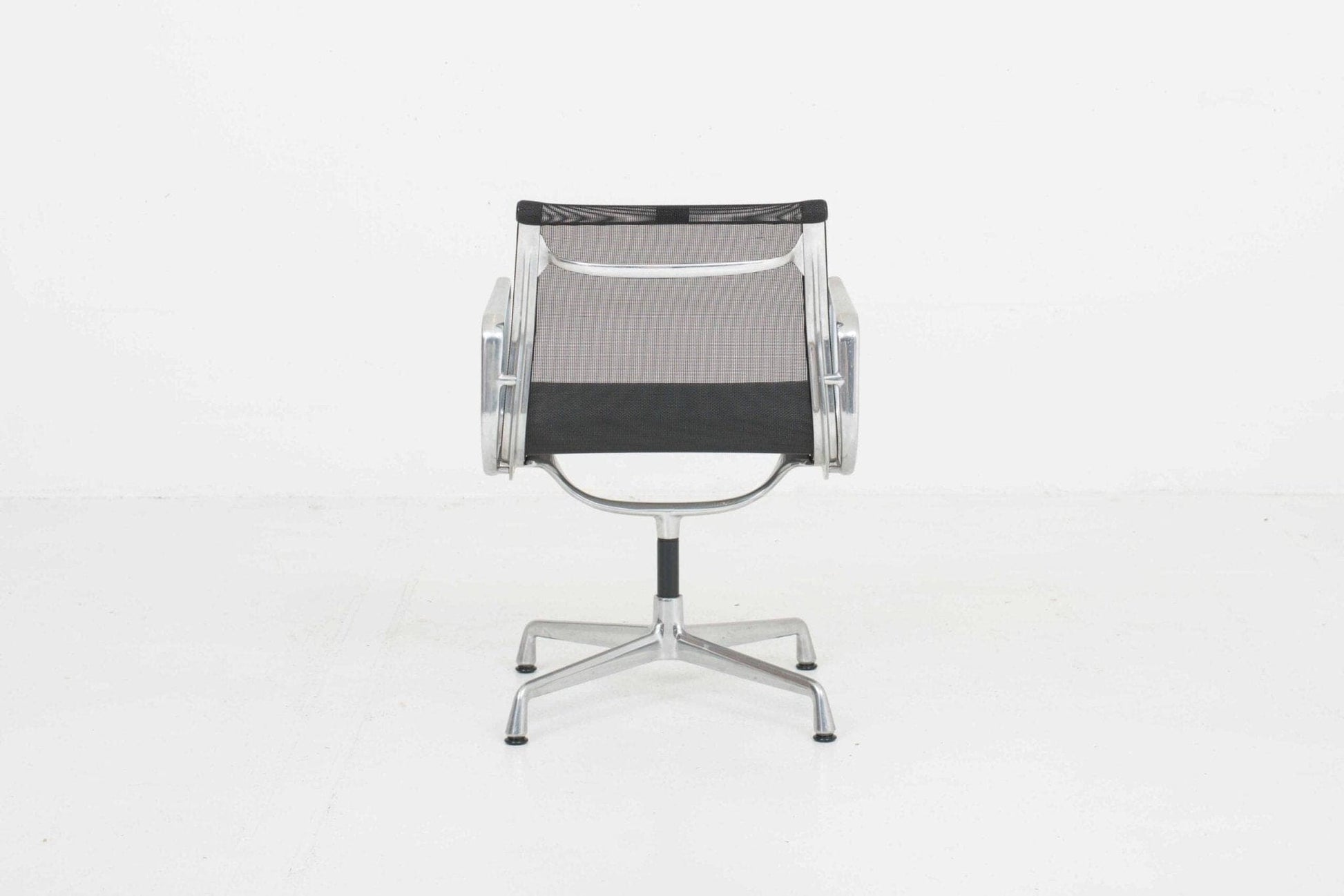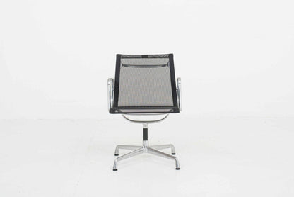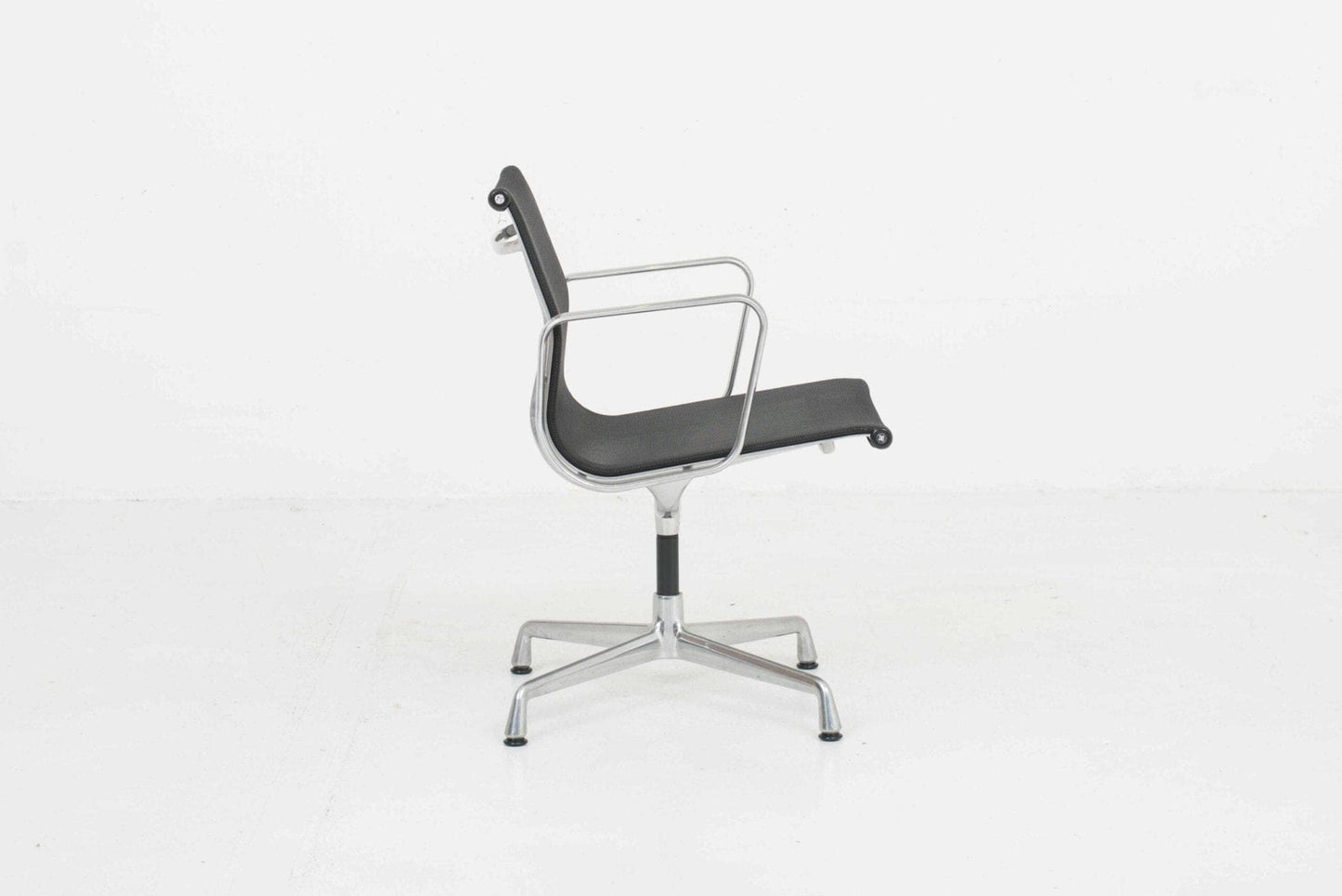 Vintage office chair Eames EA 108 by Vitra black mesh fabric polished aluminum