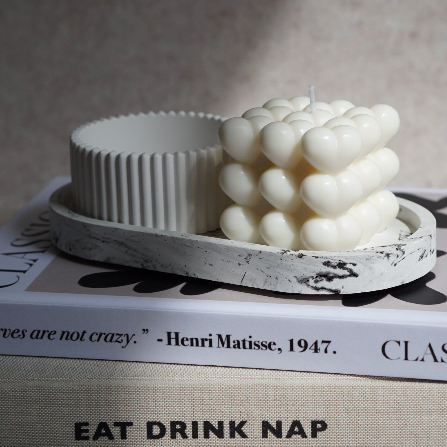 If you want to light the candle and not just use it as a decoration, it is recommended to put something underneath it, such as the trays, which are also available in my shop :) This way the wax is collected neatly.