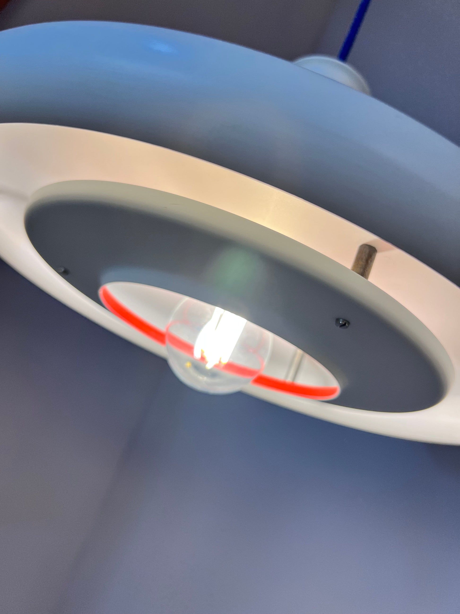 The "Optima" pendant lamp by Hans Due for Fog & Mørup combines timeless elegance with functional design. Its classic white look perfectly complements a variety of interior styles and creates a stylish atmosphere in any room. The high-quality metal craftsmanship and sophisticated design make this lamp a real eye-catcher. Its glare-free light is particularly impressive in the dining area.