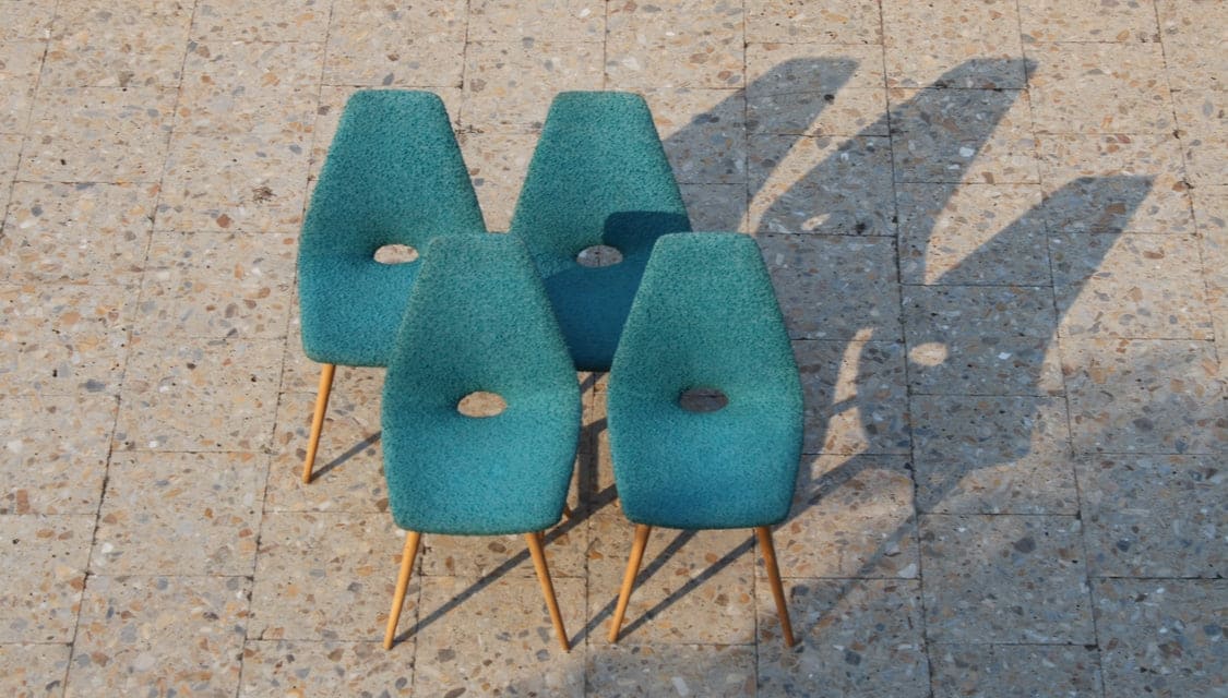 Discover our fascinating set of four "Erika" chairs, designed by Judit Burian in the 1950s - a must-have for every vintage design enthusiast.