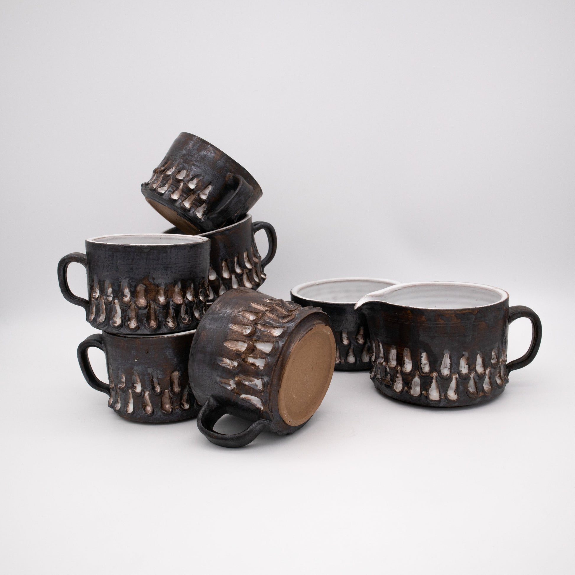 The handmade coffee service consists of: six teacups, a milk jug and a sugar bowl. The set enchants with its period-typical shape and detailed decoration. It gives every morning coffee a touch of history!