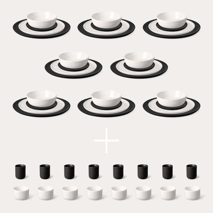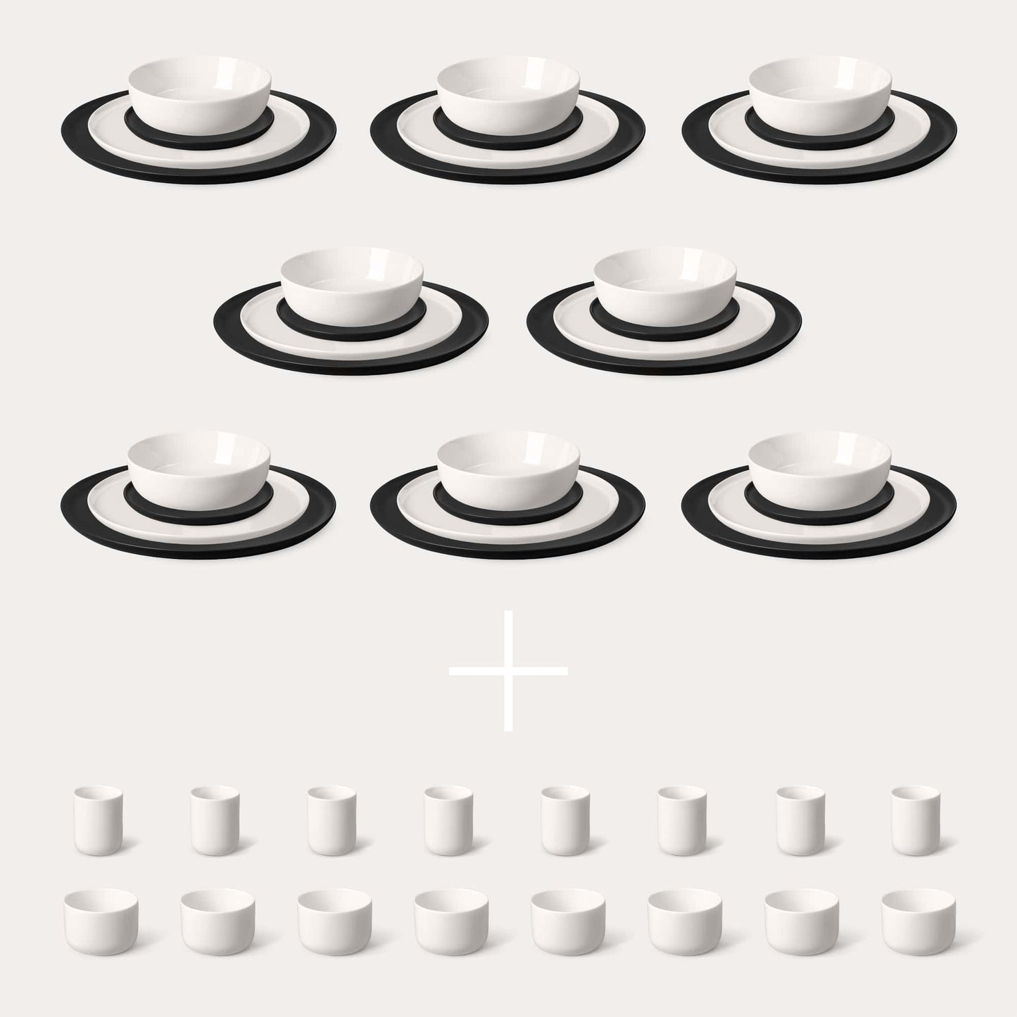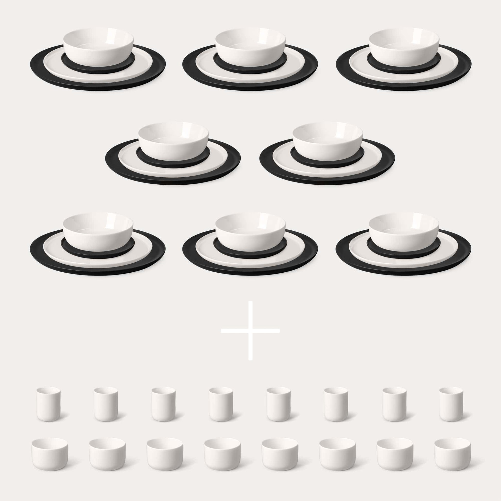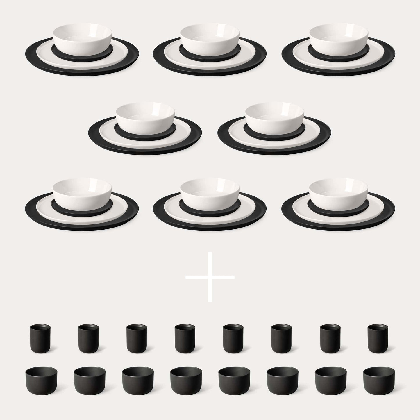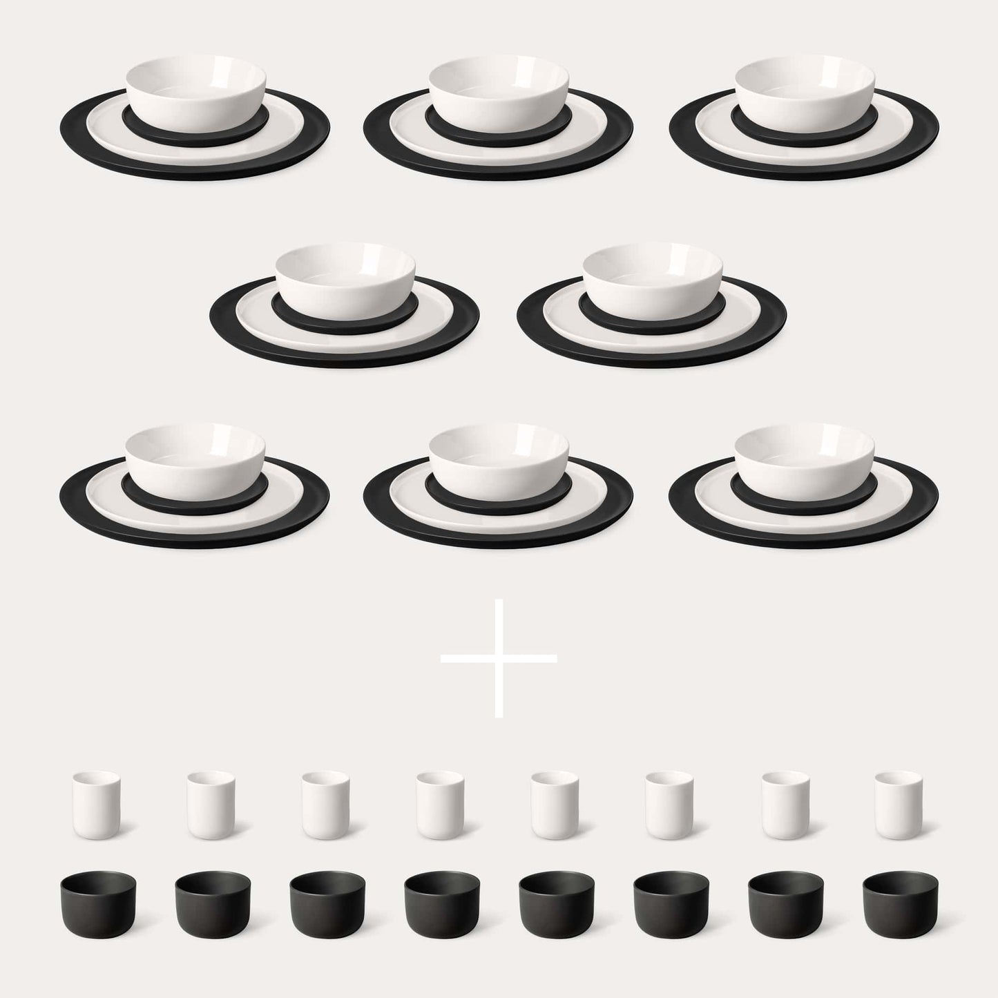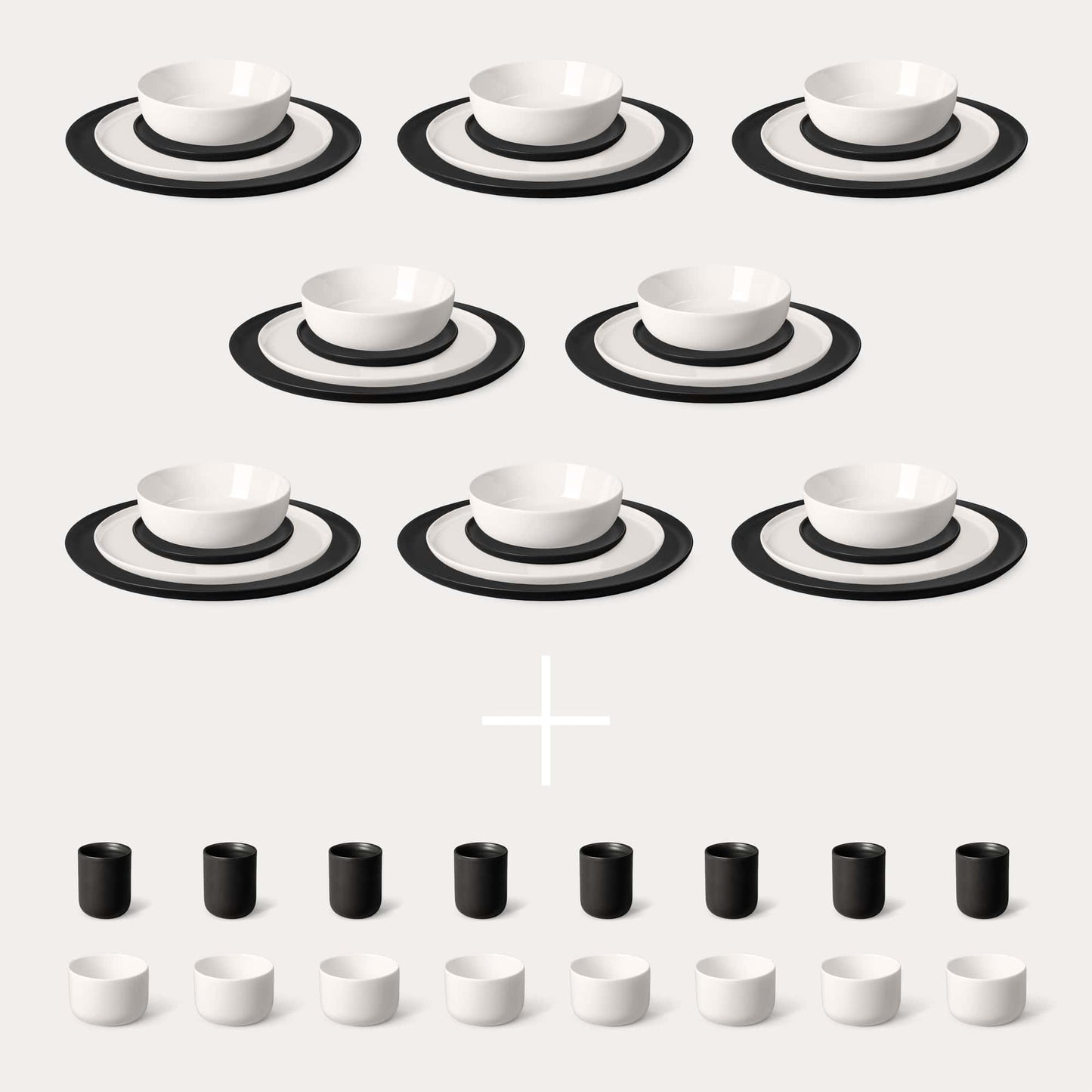 The KAYA H Entertaining Set combines timeless aesthetics with exceptional durability. The elegant colors - glossy white and matte black - set modern accents and create an elegant atmosphere for every occasion. Whether for dinner parties, festive occasions or everyday use, KAYA H is the perfect choice for sophisticated table culture.