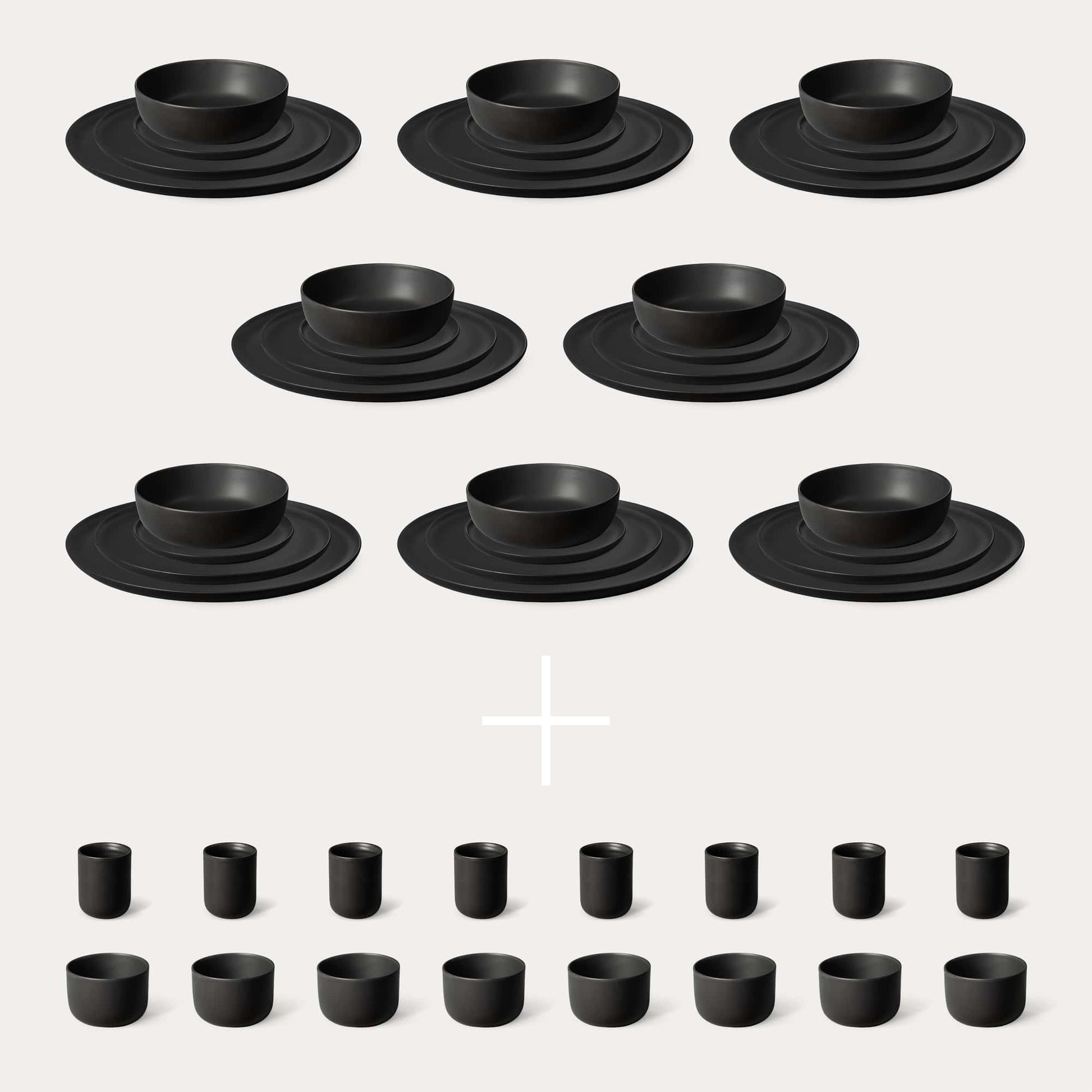The deep matte black of the KAYA H Entertaining Set brings modern elegance to your table. The soft matte glaze and the clear lines create a harmonious interplay of look and feel. The minimalist aesthetic fits effortlessly into any upscale interior and sets stylish accents for every occasion.