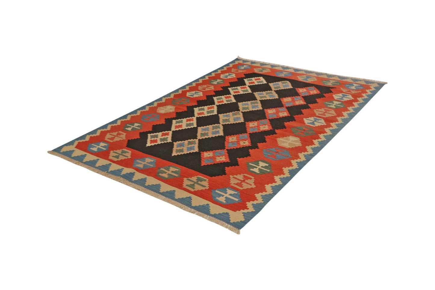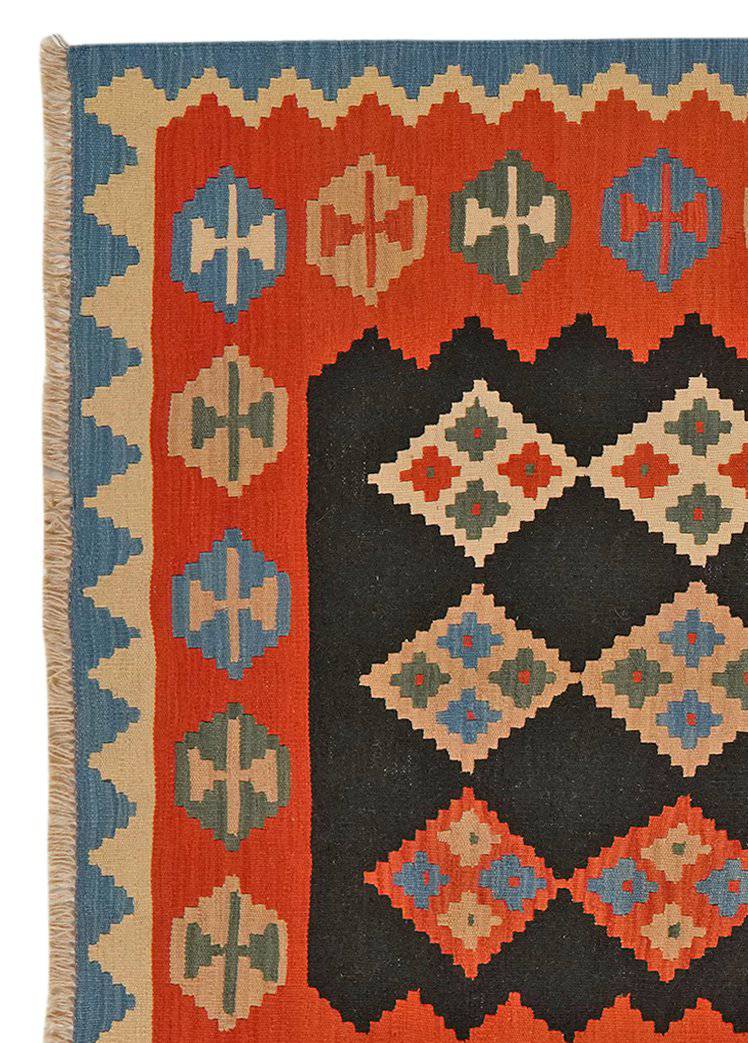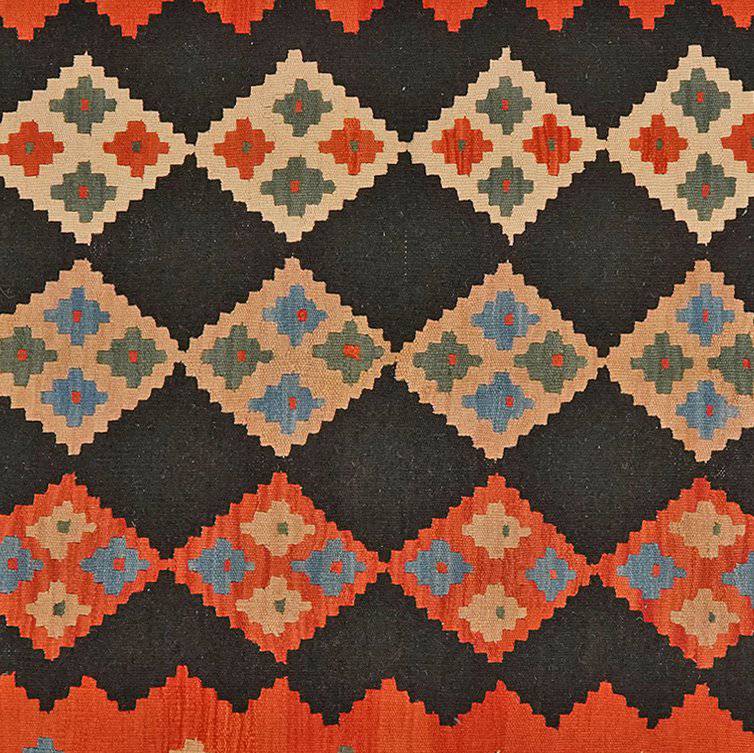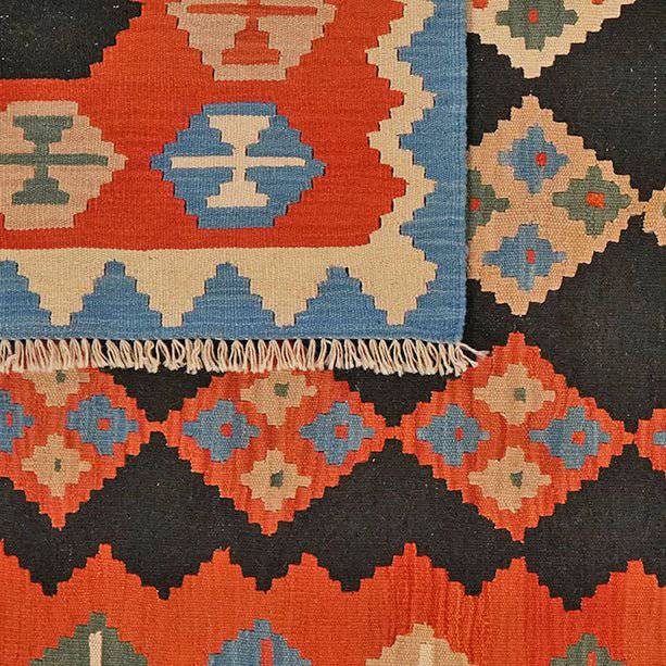 The vintage carpet Kelim Gashgai 223x159cm embodies the diverse cultural tradition of the Qashqai nomadic tribes. Thanks to the slit weaving technique, which is used primarily in color changes, it is decorated with geometric patterns in a variety of colors. Each pattern is laid by hand and from memory, creating a unique and personal look for each kilim and an incomparable work of art.