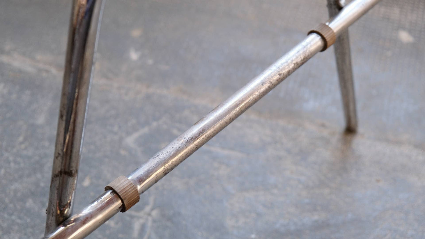 The chrome plating is very well preserved in the visible area; a few patinated areas are visible in the area of the contact surfaces.