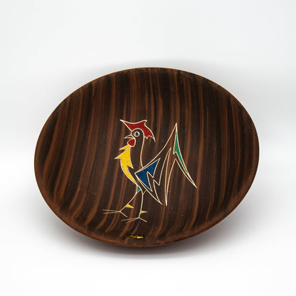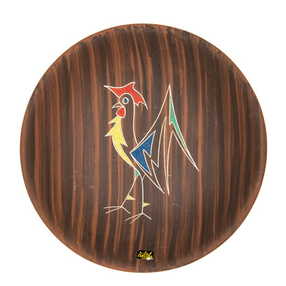 The wall plate was made between 1955 and 1968 by Herman Van Den Kroonenberg for the L'Ancora / Kroon ceramics factory in the Netherlands. It has the model number 106 and the Kera-Teak decor. The original label is still on the front.