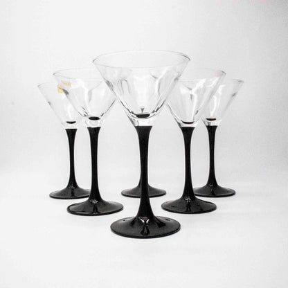 Vintage wine glass collectible by Pavel Hanousek for SKLO Studio black, copper, colorless set of 4