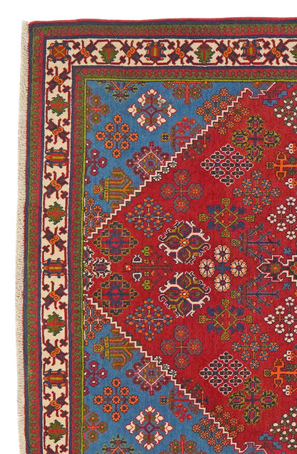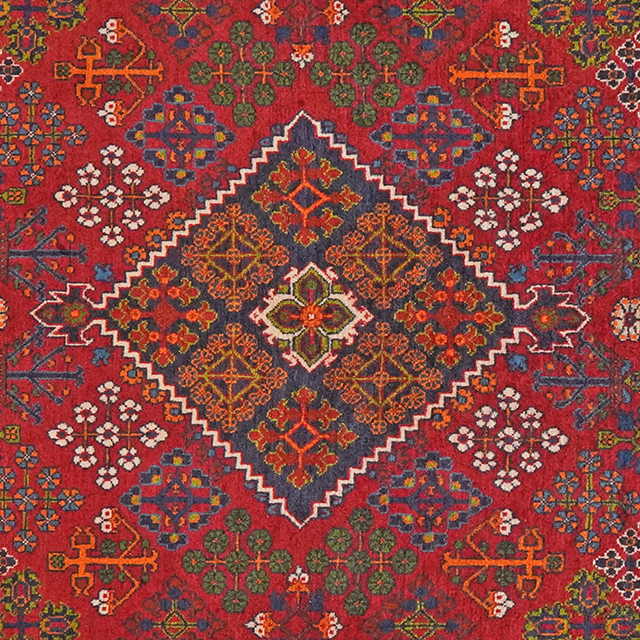 The Meymeh Vintage carpet in size 172x121cm is an expression of master craftsmanship and cultural history. These carpets are known for their dense knotting and the use of hand-spun wool, which gives them a unique texture and durability. The designs are often inspired by the nature and lifestyles of the Gashgai and Lori nomads who make these carpets. They are not only decorative but also functional, as they bring warmth and comfort to any room.