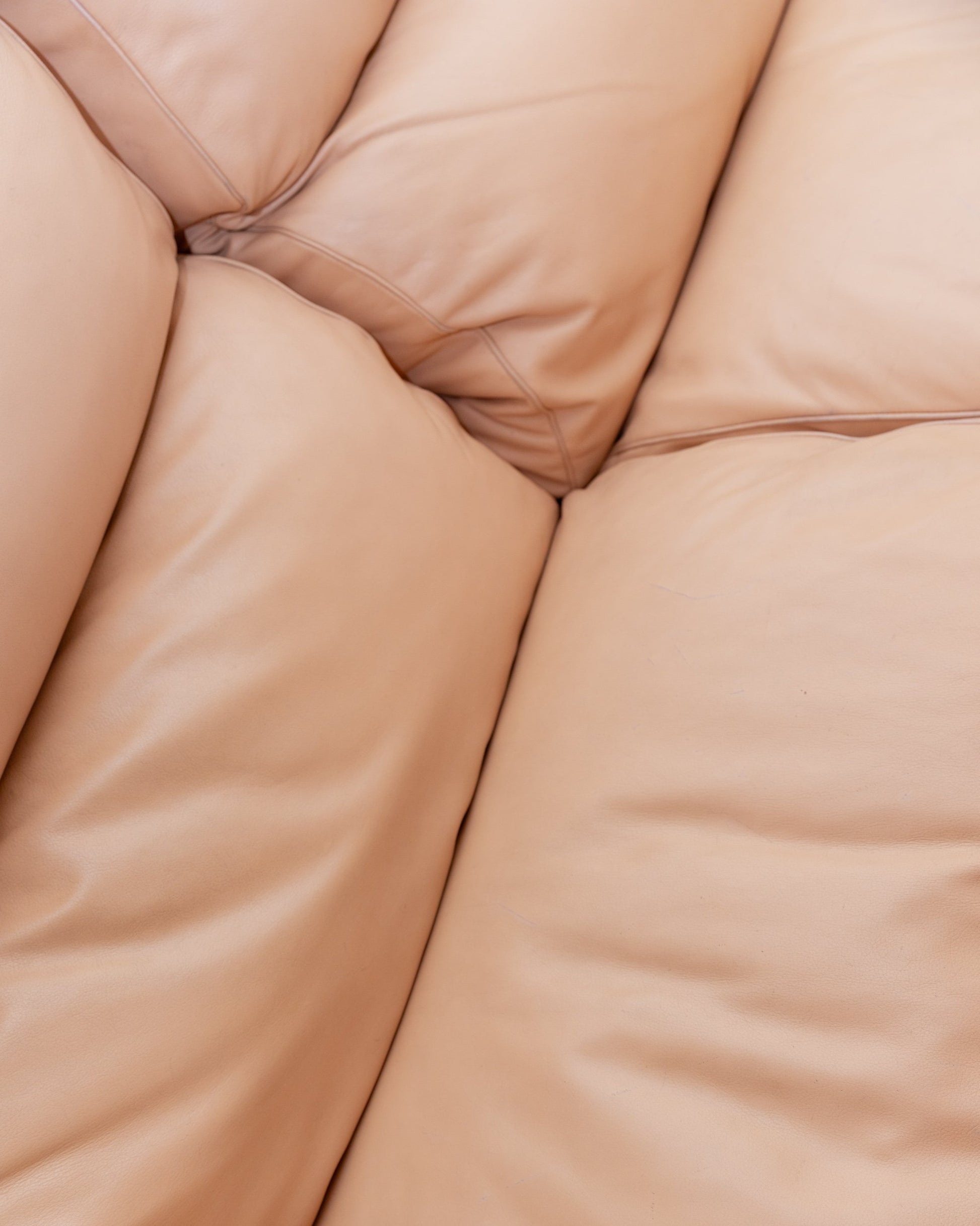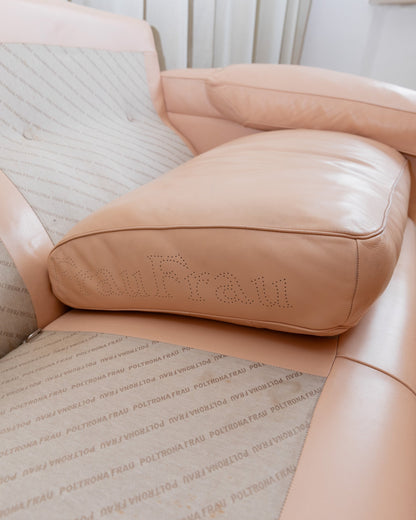 Discover the vintage leather sofa Blush by Tito Agnoli for Poltrona Frau from the 1970s. This three-piece sofa in an elegant blush/pink leather is a masterpiece of Italian design. The cushions are filled with down and offer excellent comfort and support. The modules can be used flexibly individually or combined to fit perfectly into your living room, office or exhibition room.