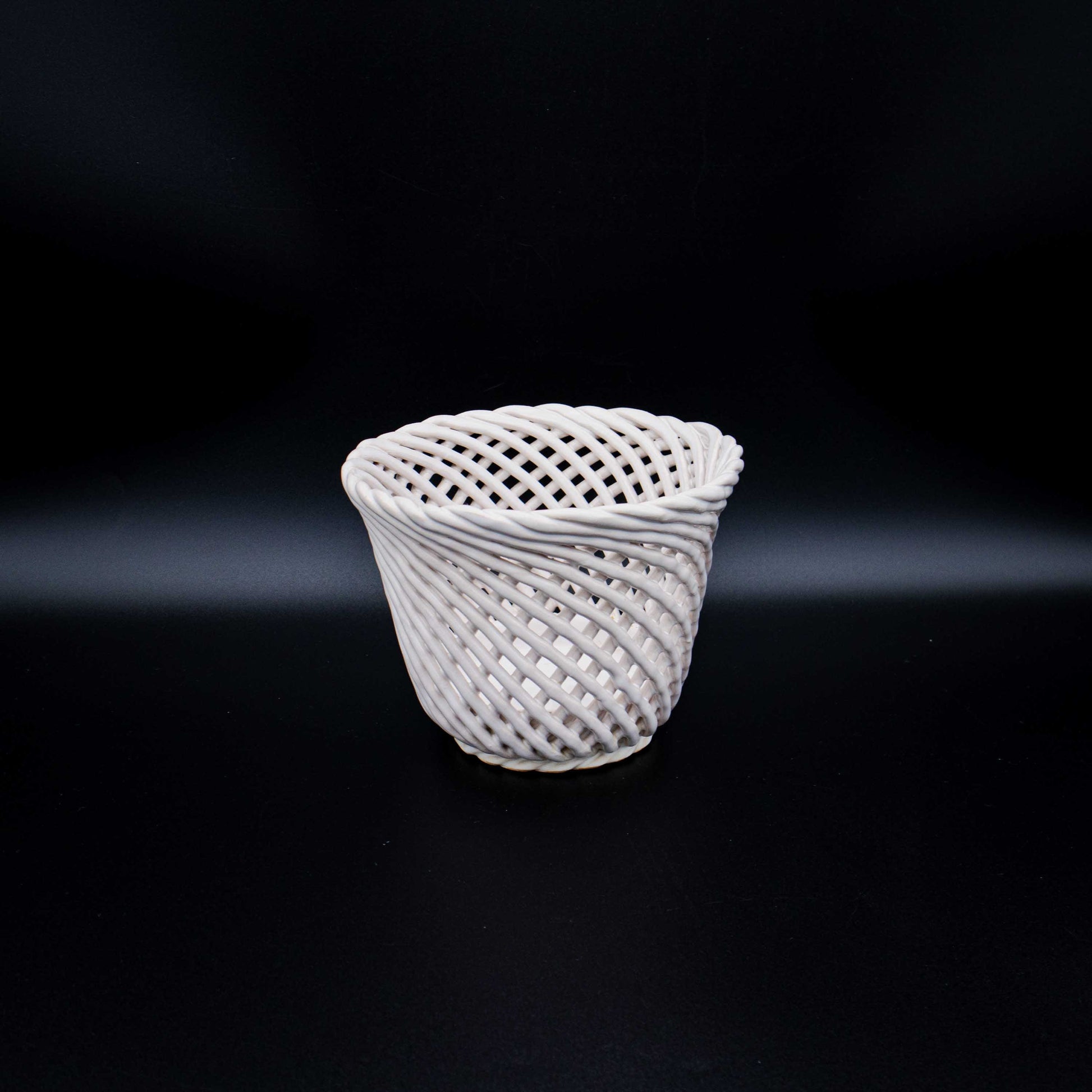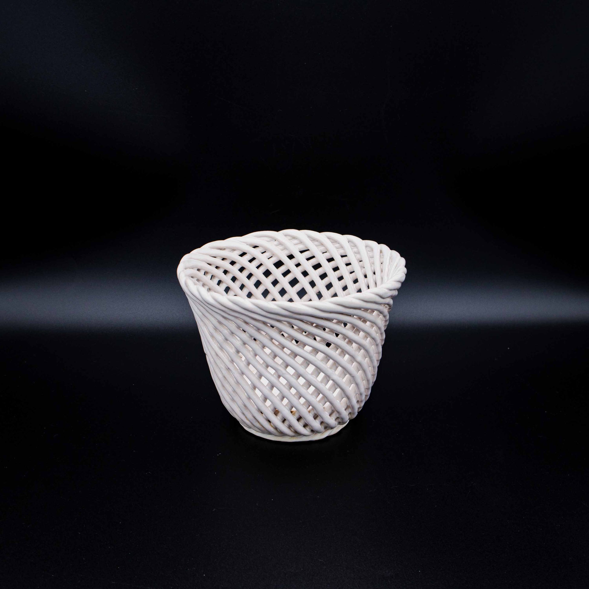 The planter with braided walls was made around 1950 by Mürztaler Keramik. The brick factory founded in 1911 developed over the years into Volkskeramik Mürzzuschlag. Production was discontinued in 1975. This beautiful planter is a very typical example of the ceramics made by Volkskeramik Mürzzuschlag and is in excellent condition.