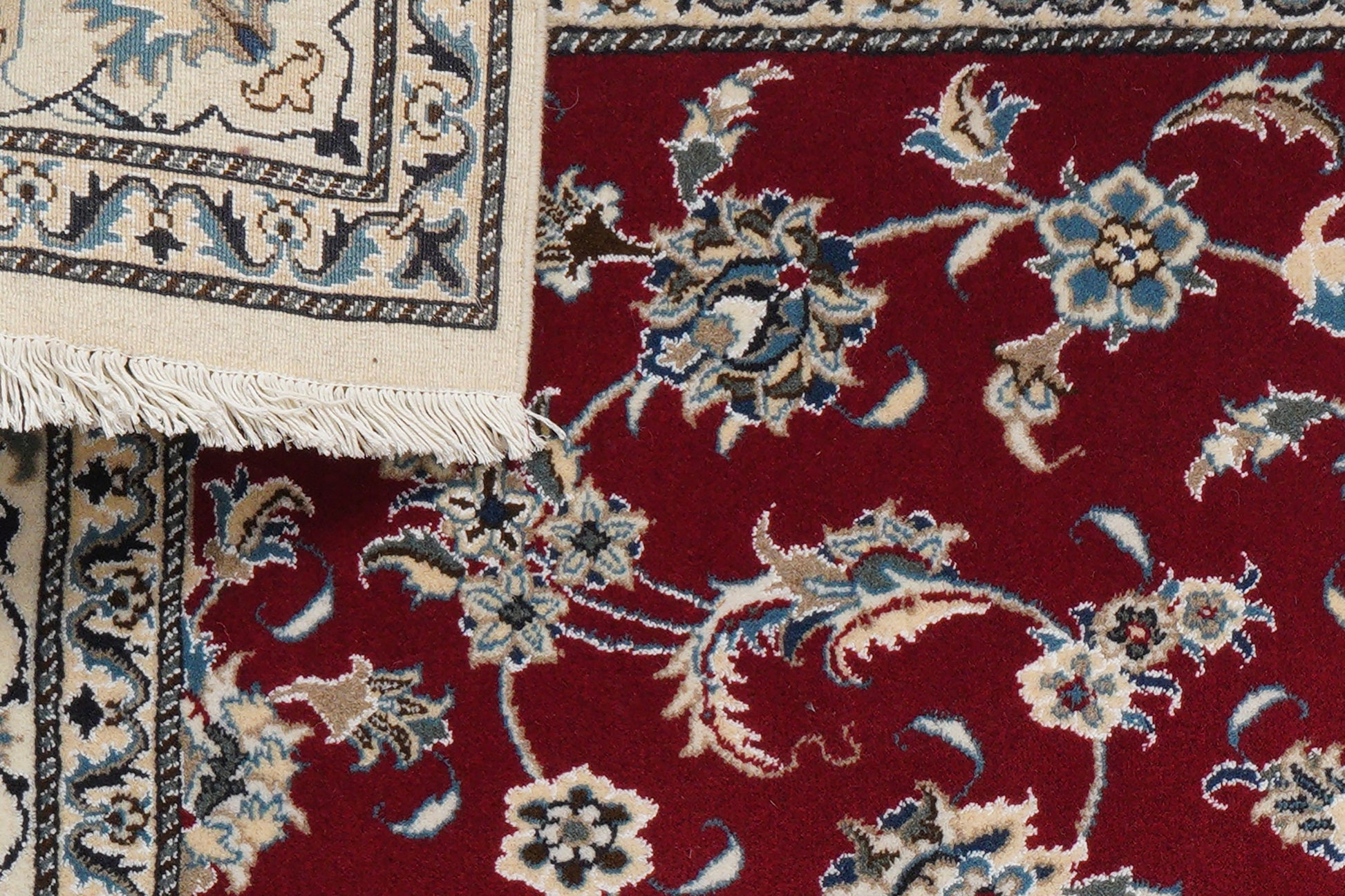 The Nain Vintage rug in size 203x195cm is an expression of master craftsmanship and cultural history. These rugs are known for their dense knotting and the use of hand-spun wool, which gives them a unique texture and durability. The designs are often inspired by the nature and lifestyles of the Gashgai and Lori nomads who make these rugs. They are not only decorative, but also functional, as they bring warmth and comfort to any room.
