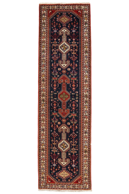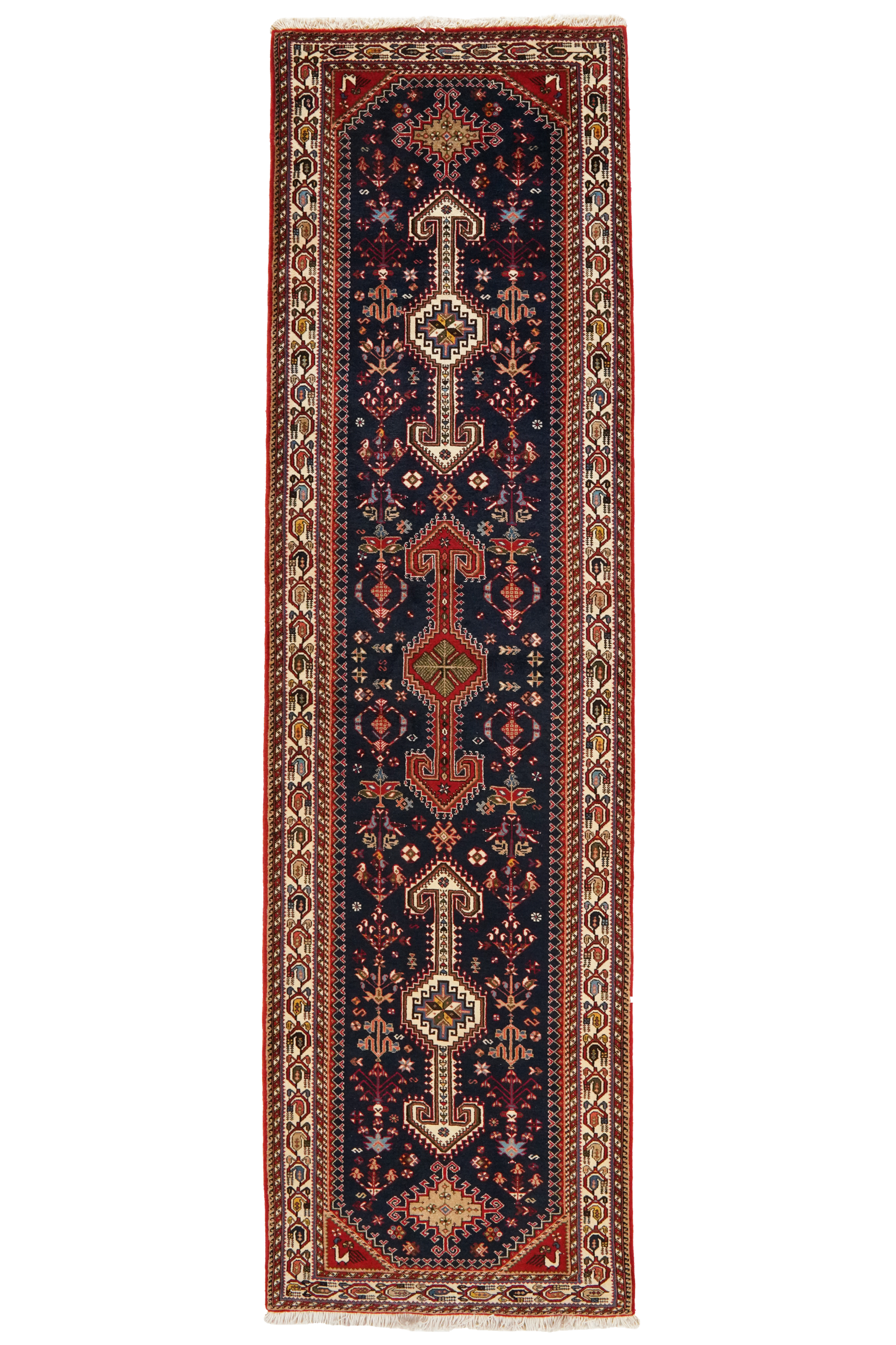 The Nasrabad Vintage rug in size 305x81cm is an expression of master craftsmanship and cultural history. These rugs are known for their dense knotting and the use of hand-spun wool, which gives them a unique texture and durability. The designs are often inspired by the nature and lifestyles of the Gashgai and Lori nomads who make these rugs. They are not only decorative but also functional, as they bring warmth and comfort to any room.