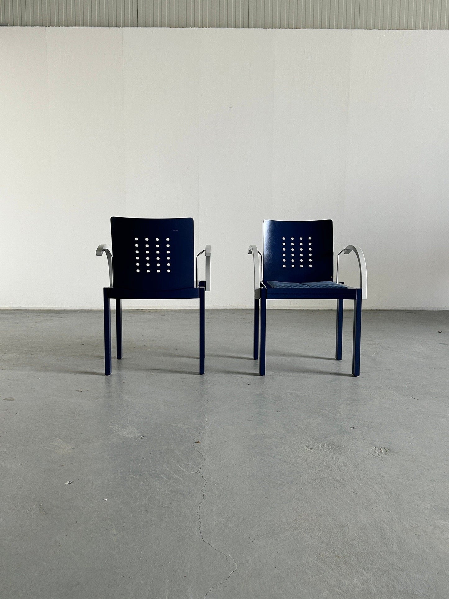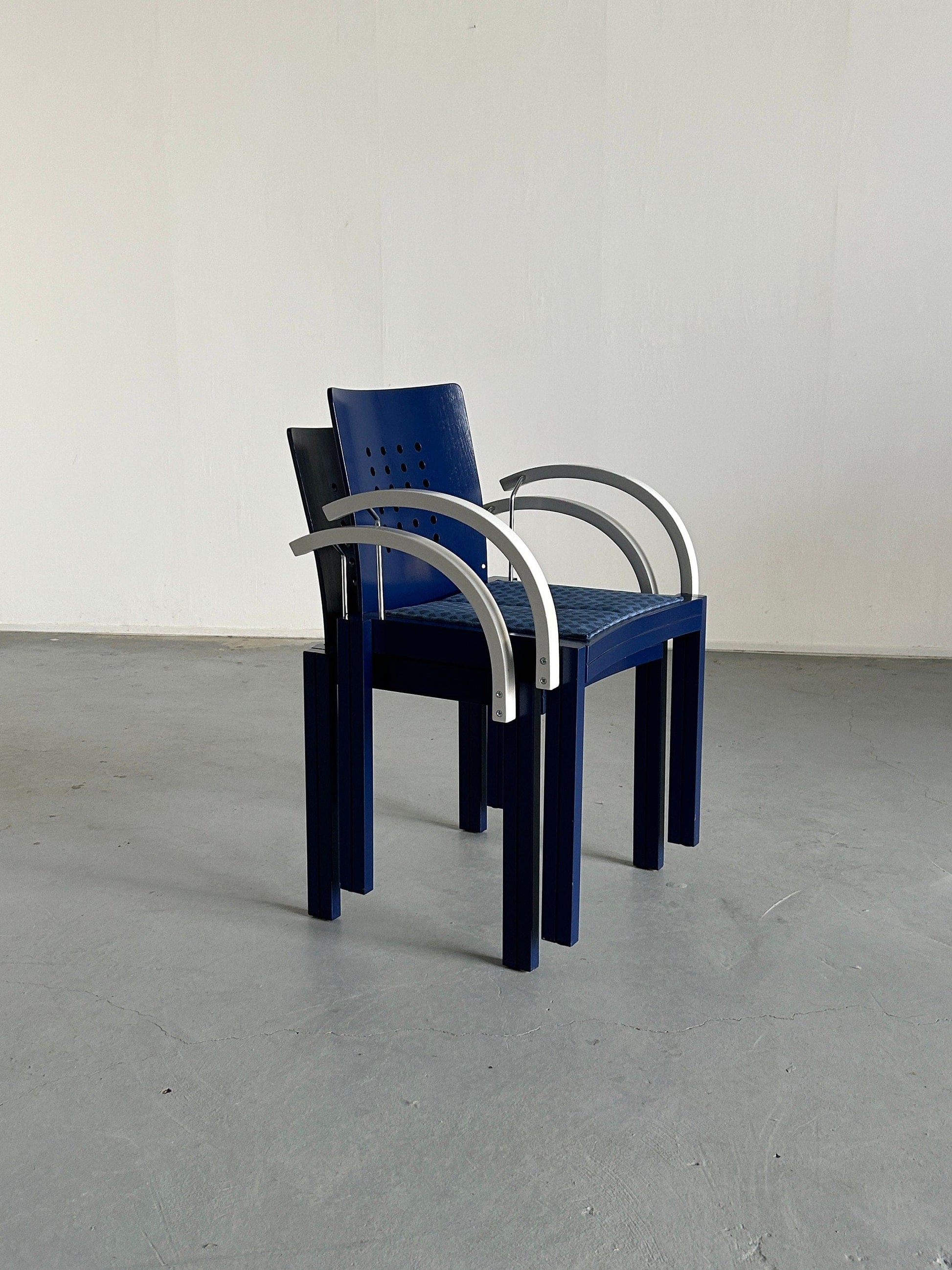 1 of 20 postmodern Memphis era original Thonet Vienna sculptural stackable dining chairs, original and signed, 1990s Austria vintage