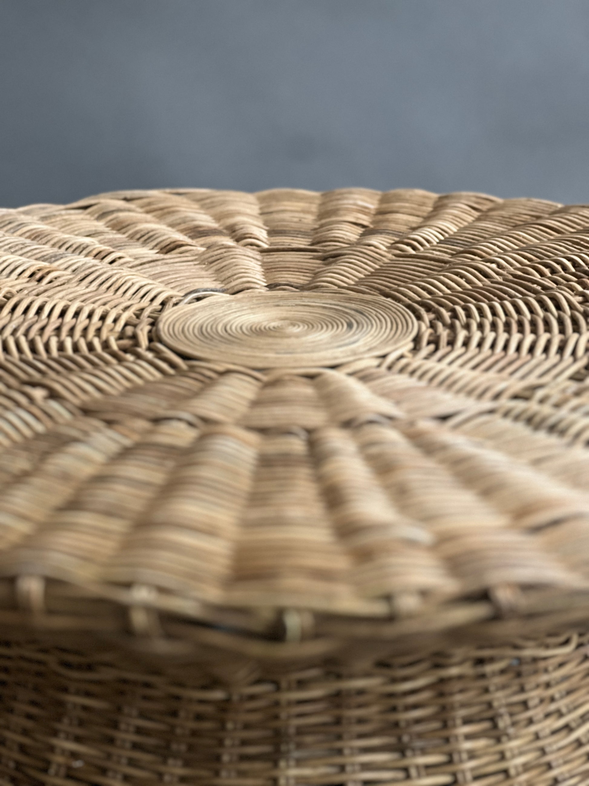 - Special features: square format; low height; warm-textured rattan weave; references to Mid-Century and Space Age styles; original price €650