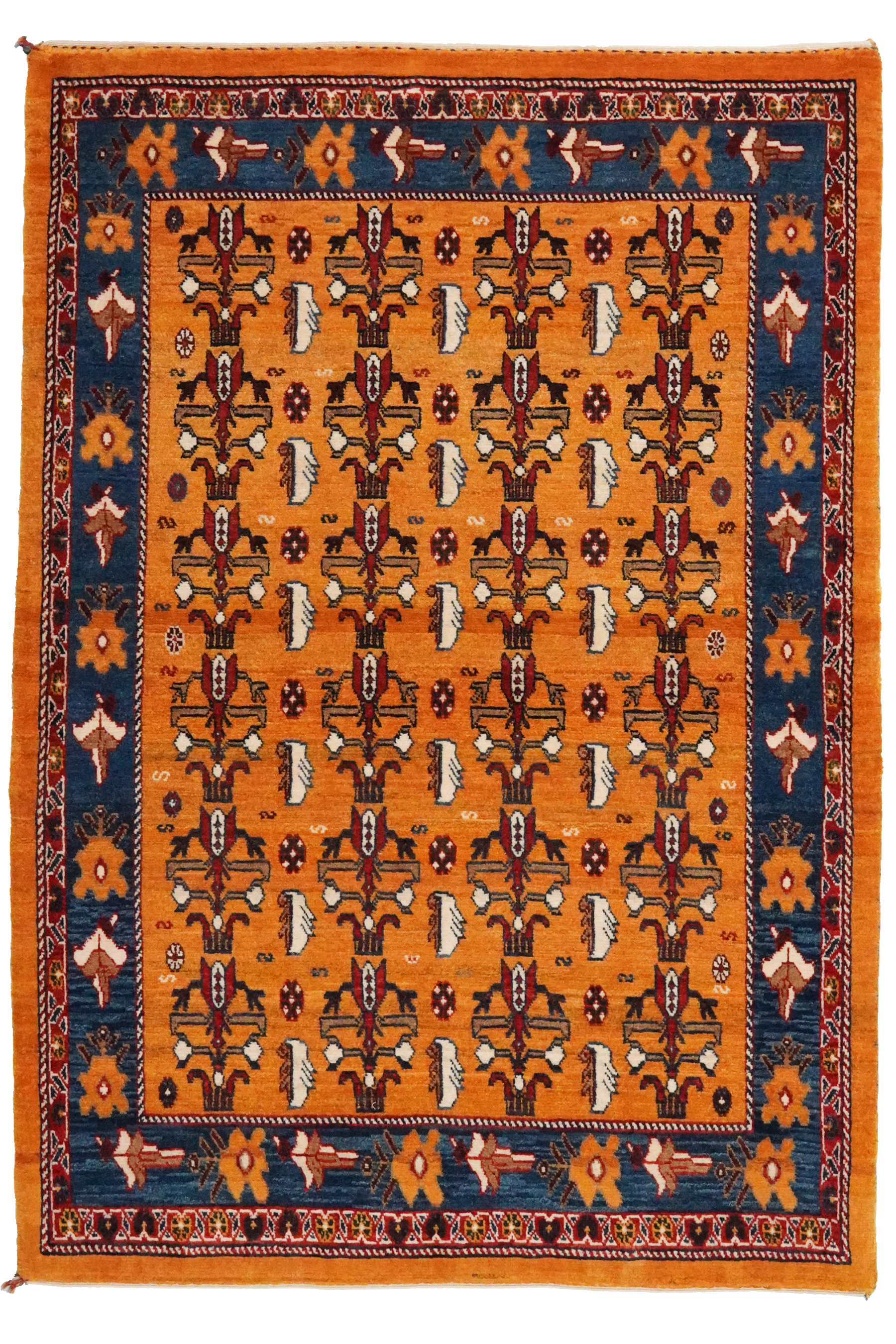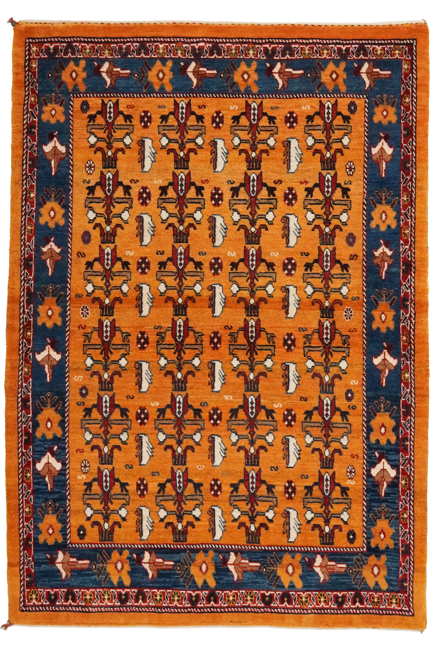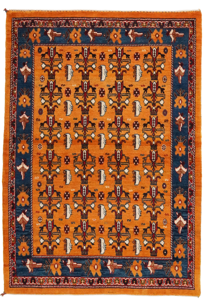 The Rizbaf Vintage rug in size 152x102cm is an expression of master craftsmanship and cultural history. These rugs are known for their dense knotting and the use of hand-spun wool, which gives them a unique texture and durability. The designs are often inspired by the nature and lifestyles of the Gashgai and Lori nomads who make these rugs. They are not only decorative but also functional, as they bring warmth and comfort to any room.