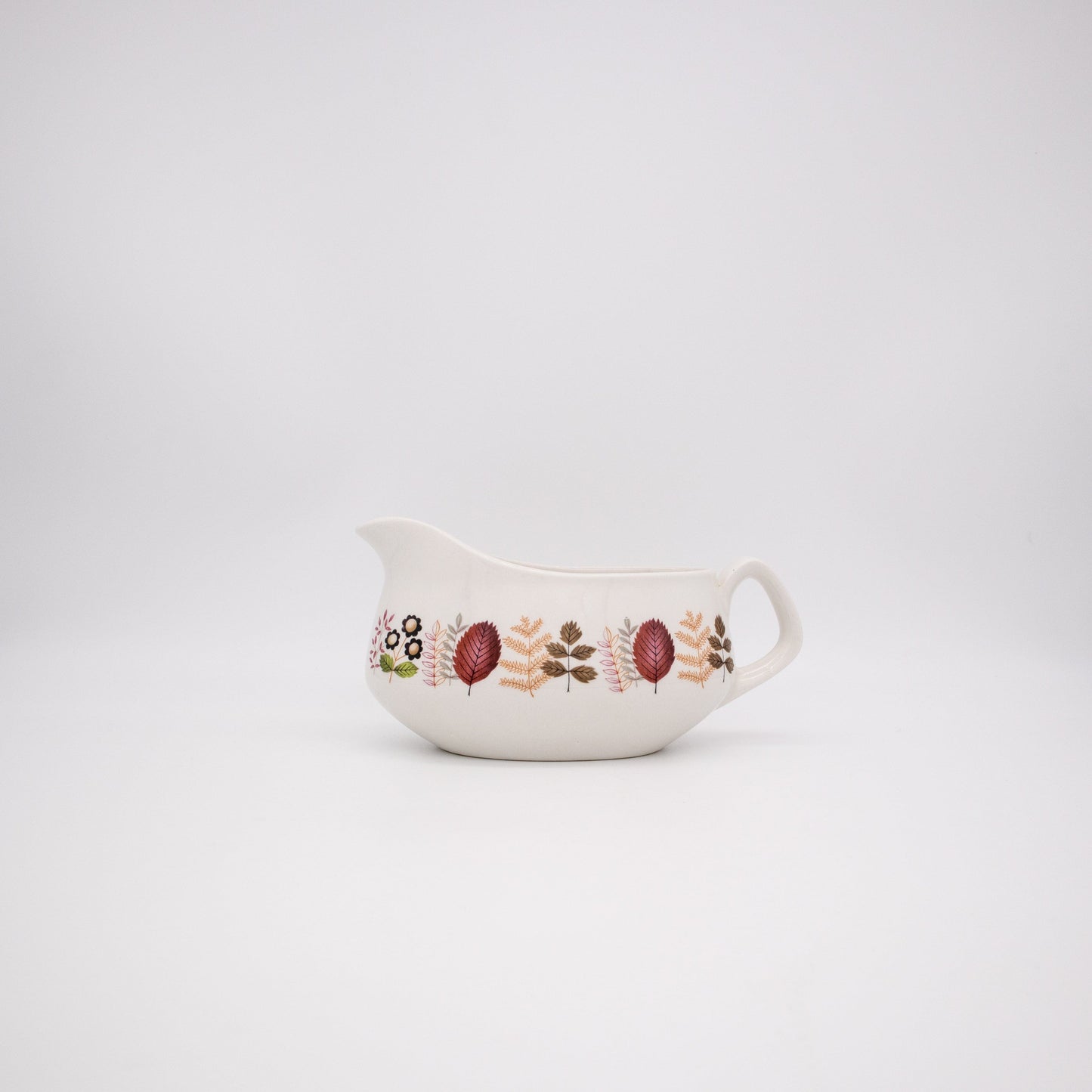 The gravy boats from Wood and Sons have typical, delicate leaf and natural details from the 1960s. A wonderful addition to the dining table.