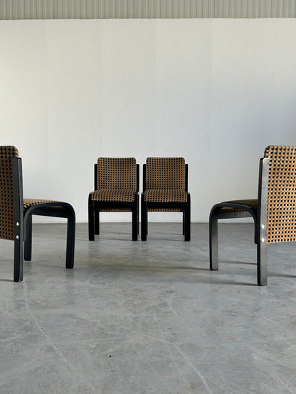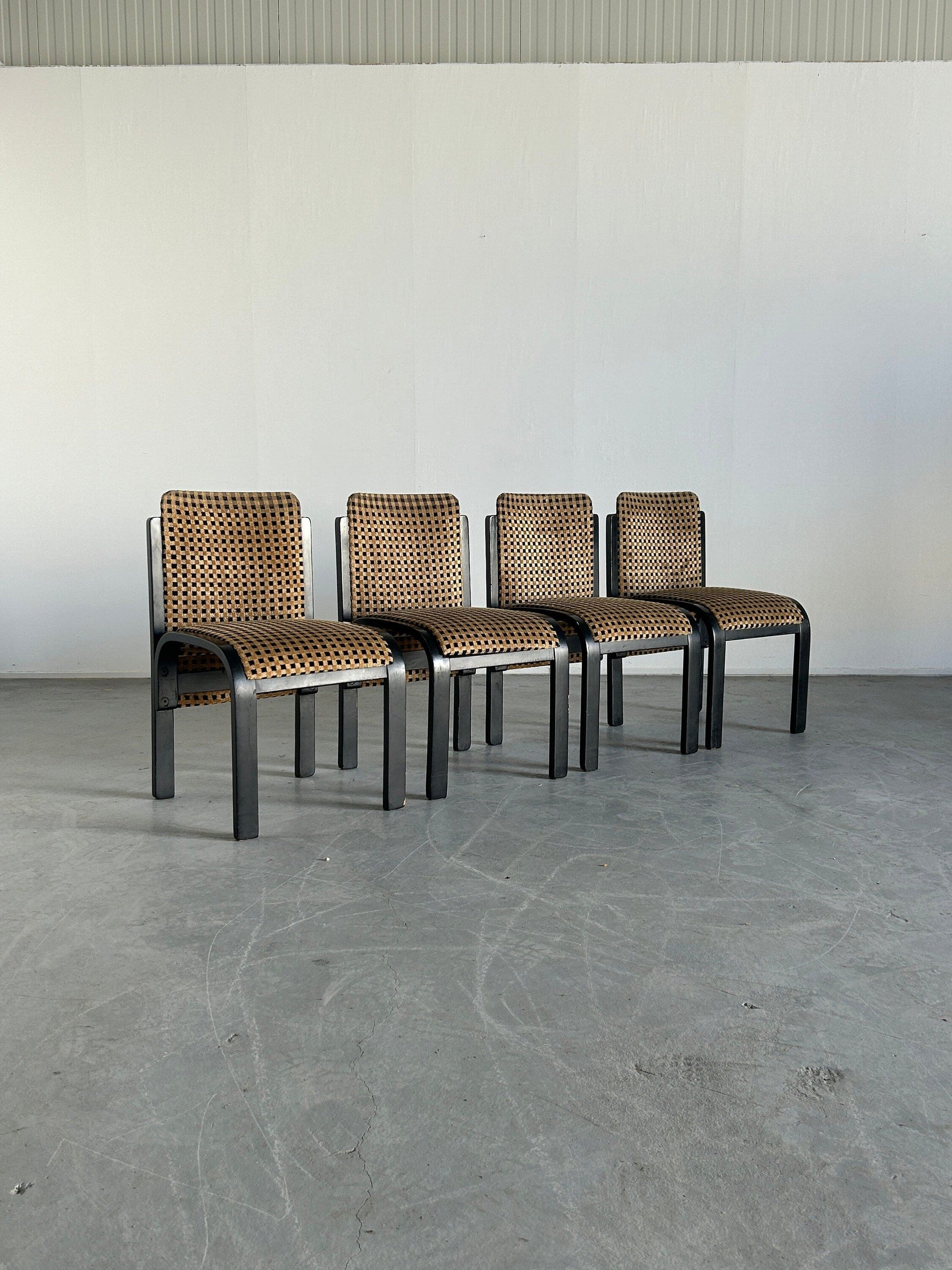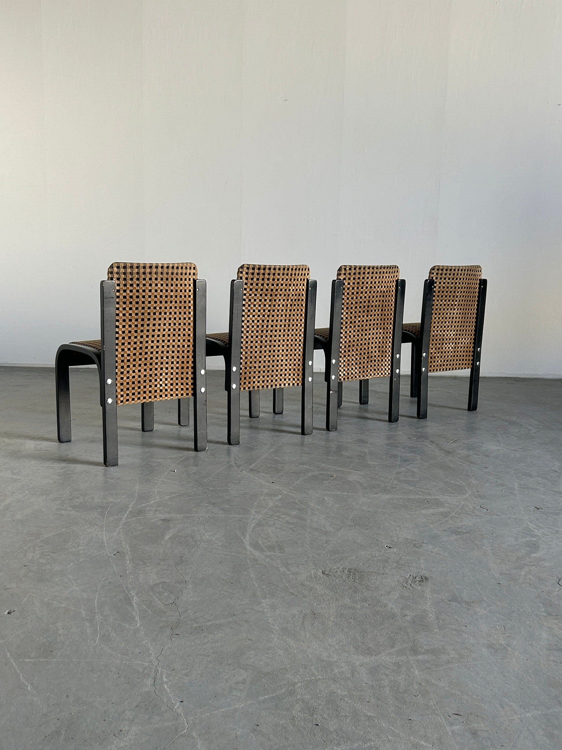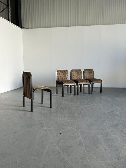 Vintage Dining Chair Pierluigi Molinari Red Wood, Metal Set of 4