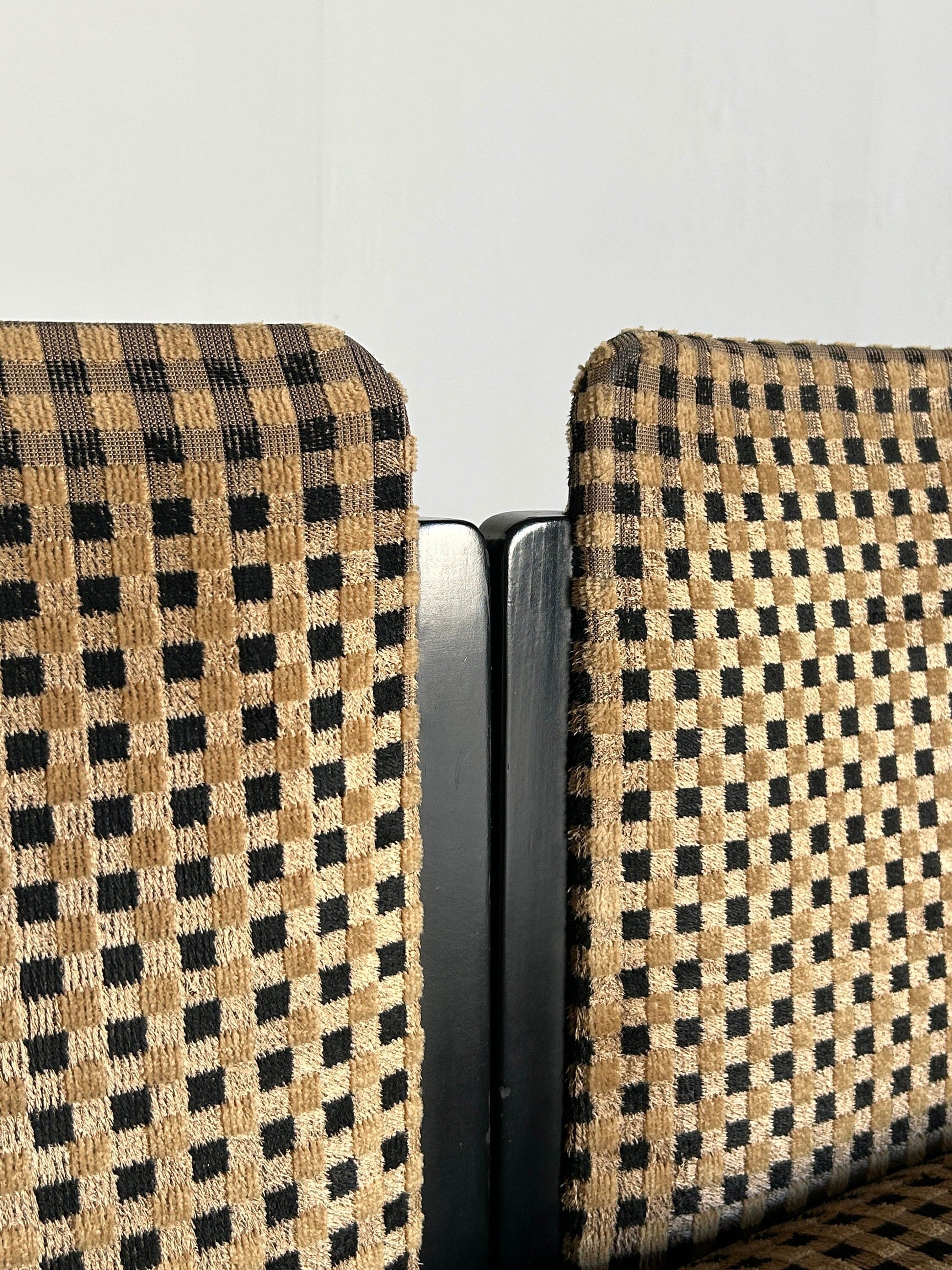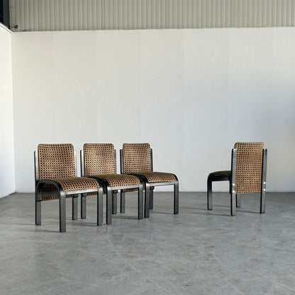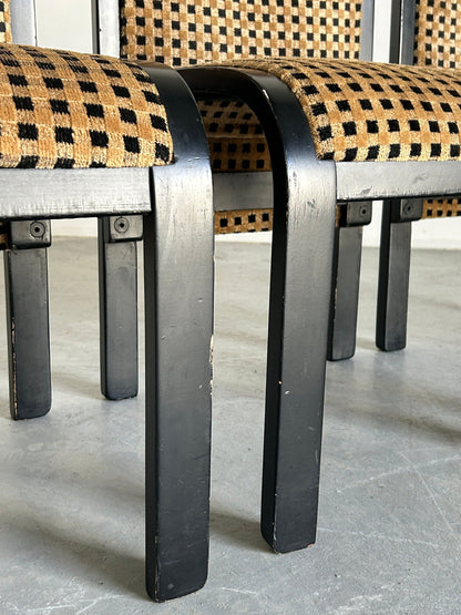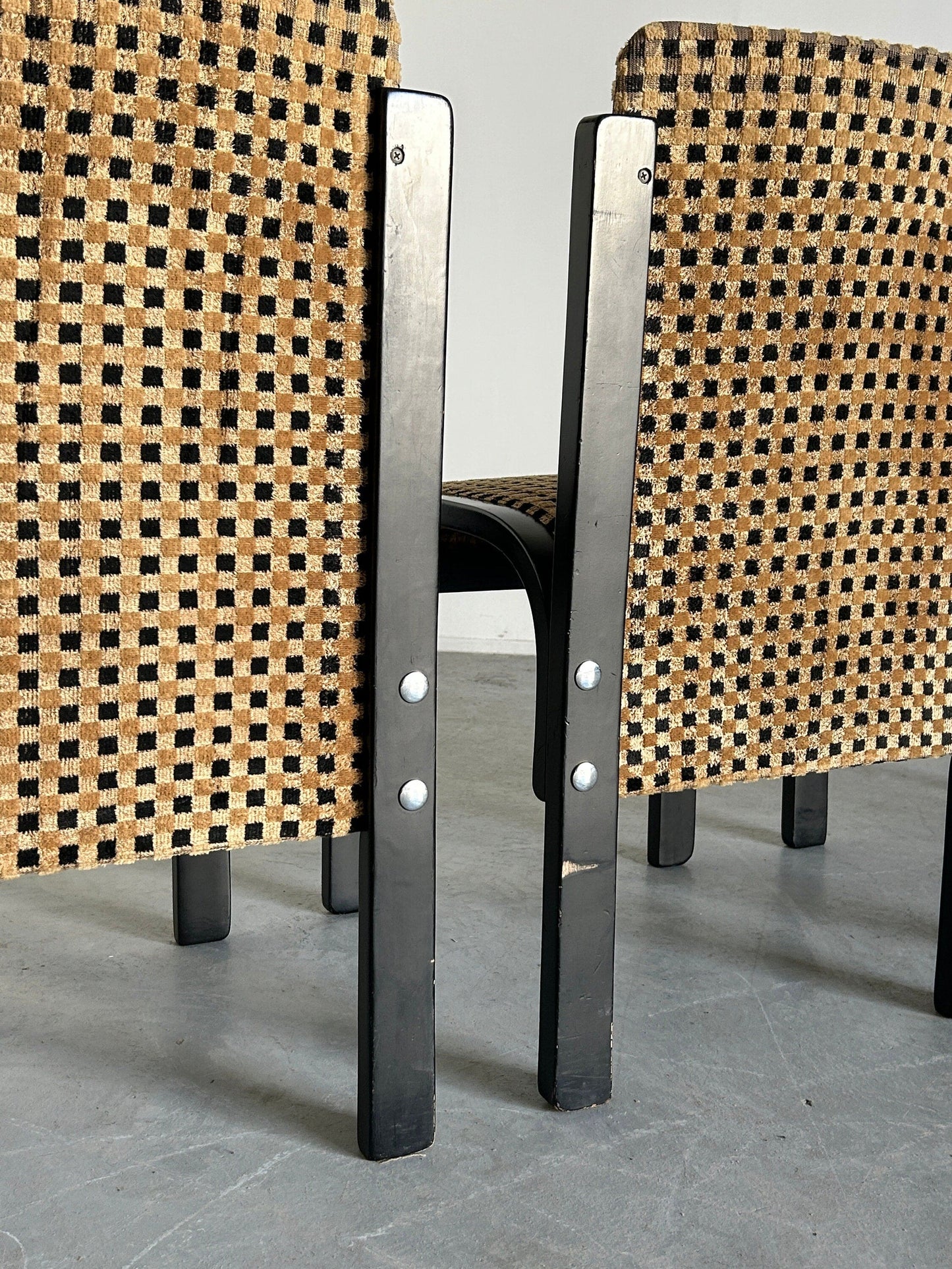 - Material: Black lacquered bentwood, chrome fittings, velvet with geometric pattern