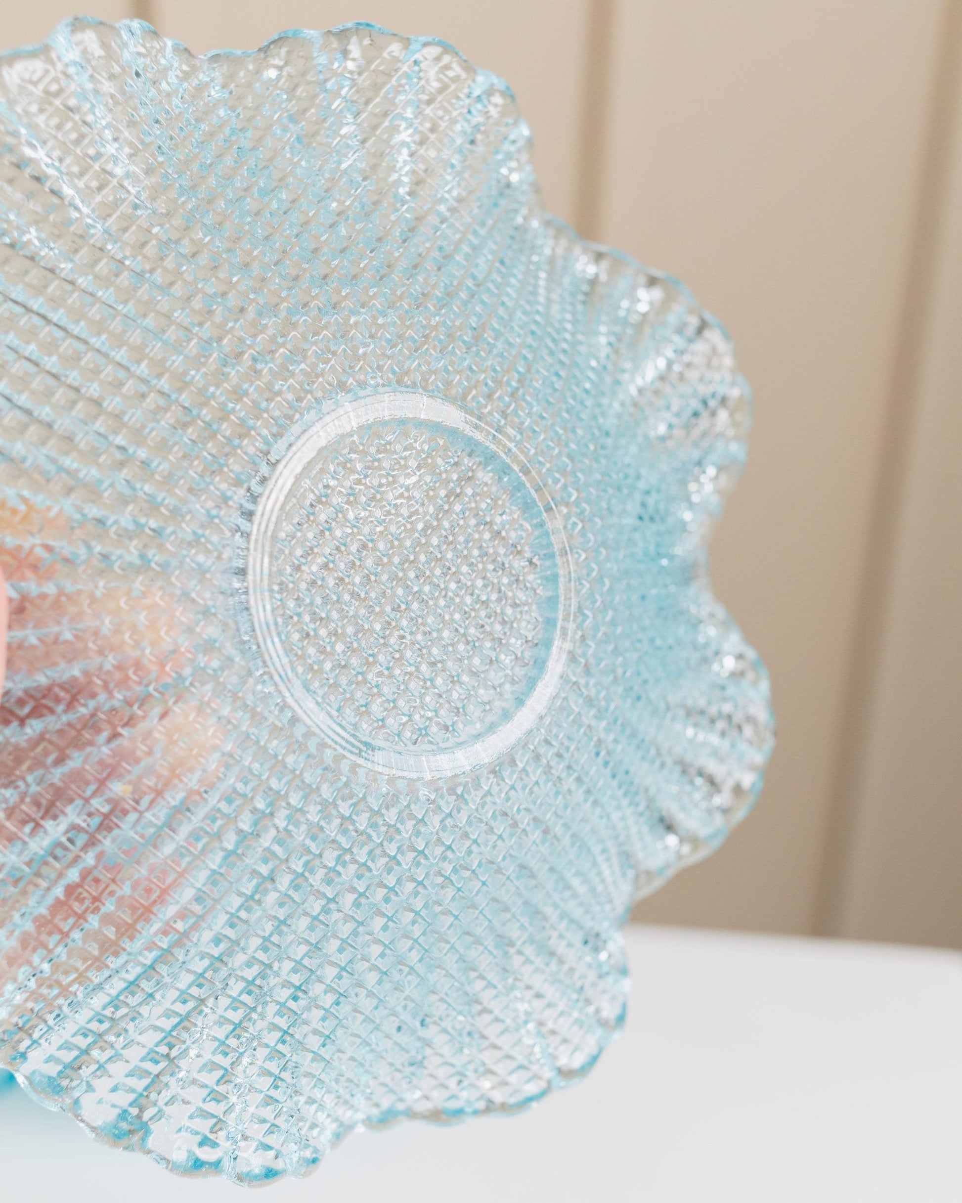 Add a touch of elegance and nostalgia to your home with the Vintage Bowl Crystal Glass Turquoise by Fenton Set of 6. These impressive dessert plates from the 80s impress with their bright turquoise color and elegant design that is both functional and decorative. Whether as stylish bowls for desserts, ice cream or fruit - they are versatile and a real eye-catcher. The high-quality workmanship and charming vintage style make them an asset to any home.