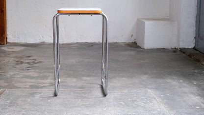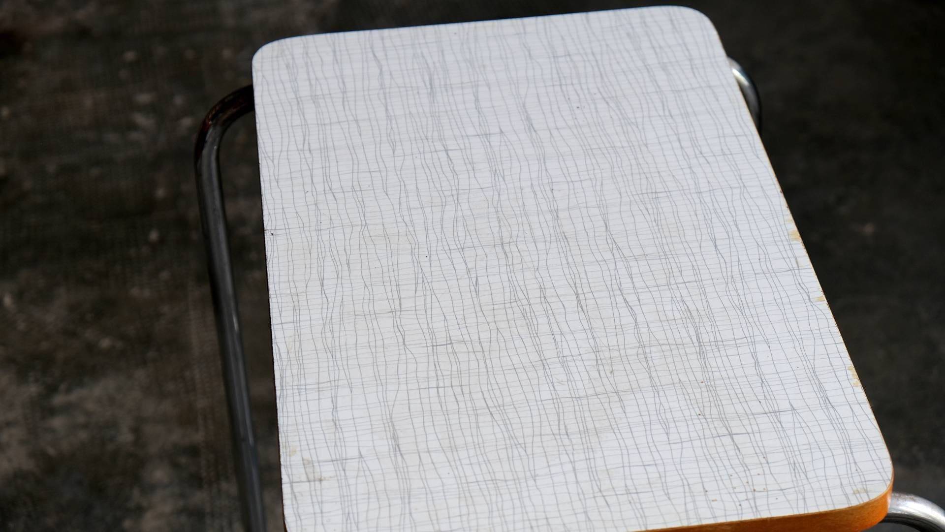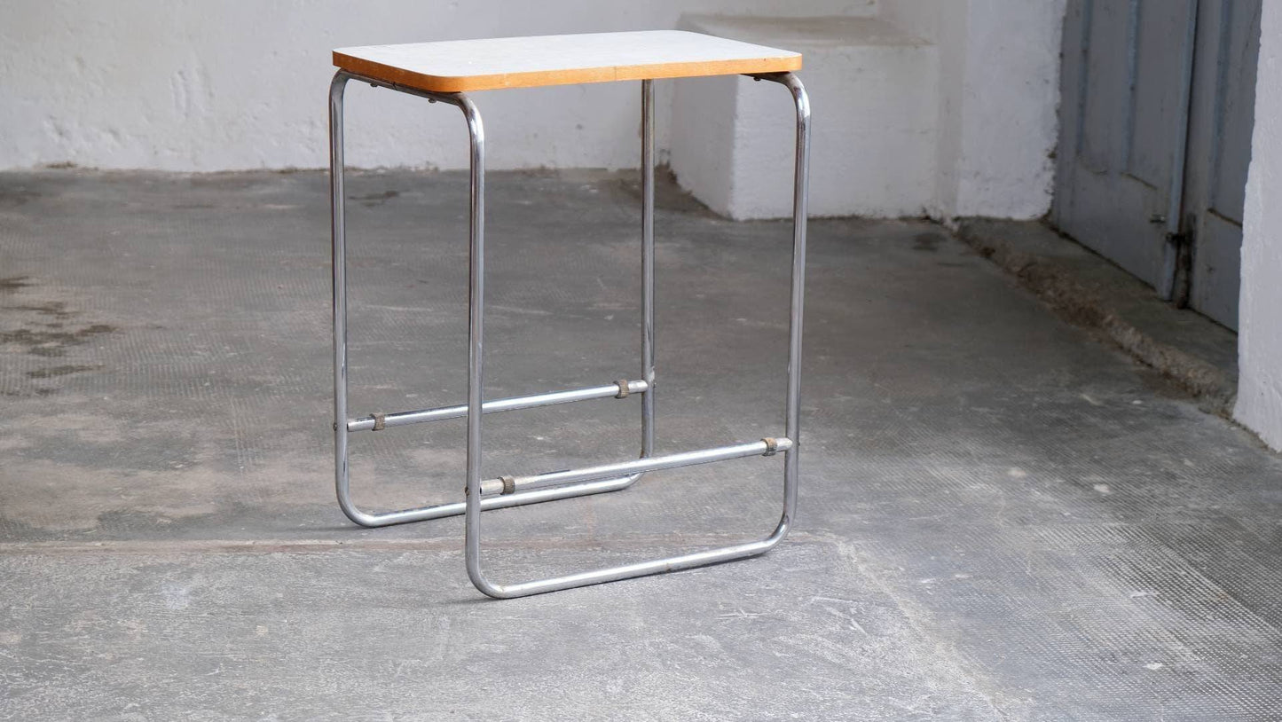 Vintage side table Bauhaus chrome-plated steel tube white Bakelite