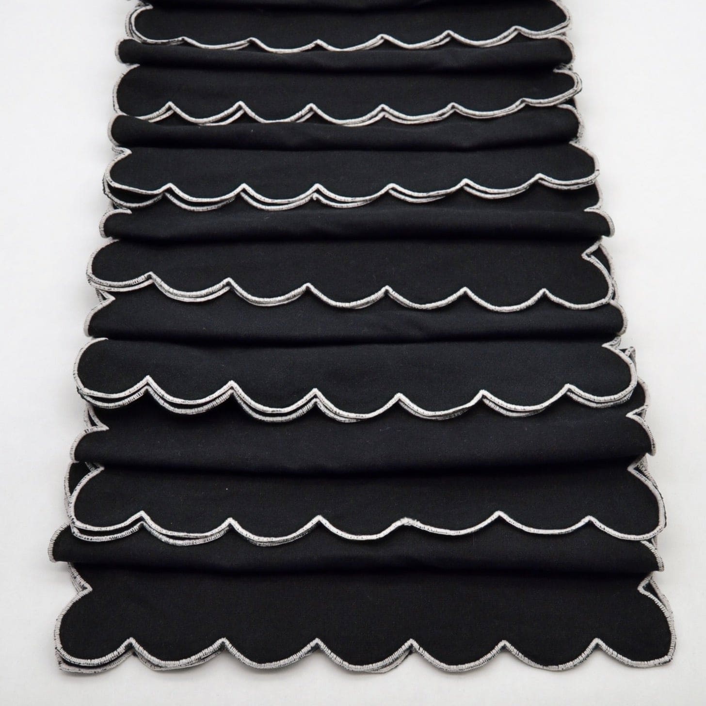 This placemat is not only functional but also a real eye-catcher. The combination of black cotton and white borders gives your table a space-age flair that's both modern and classic. Invest in quality and style with this unique placemat that will add a special touch to your home.