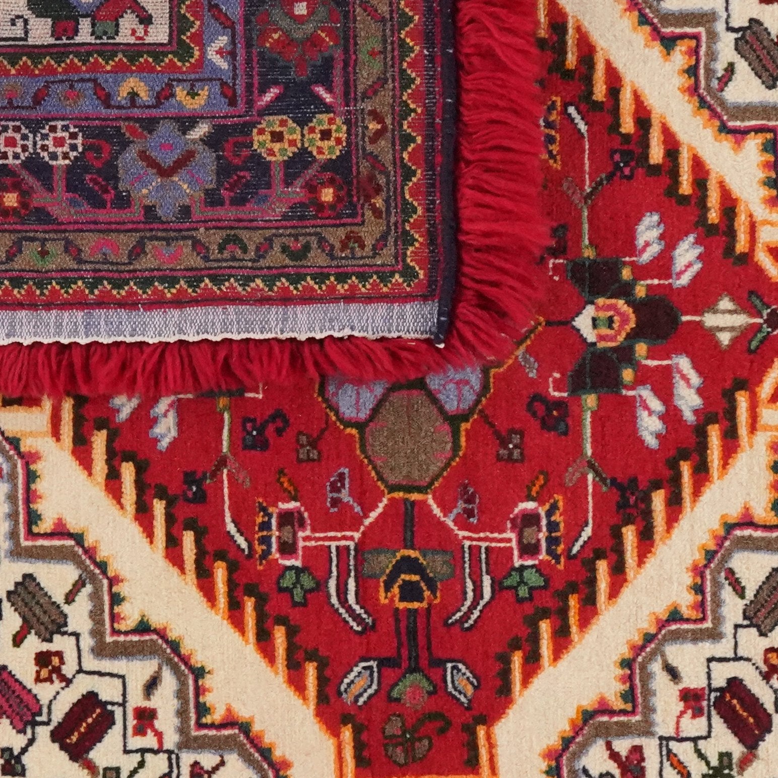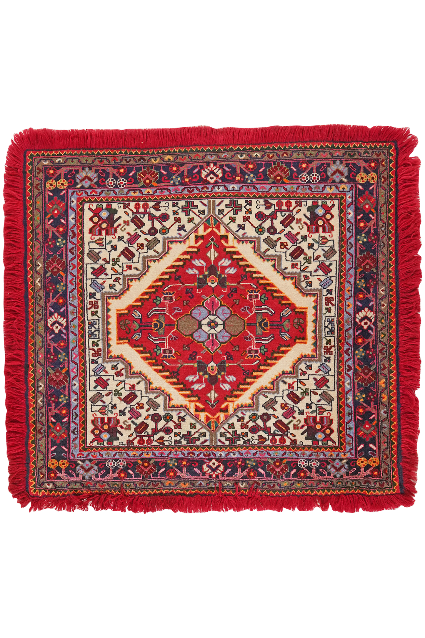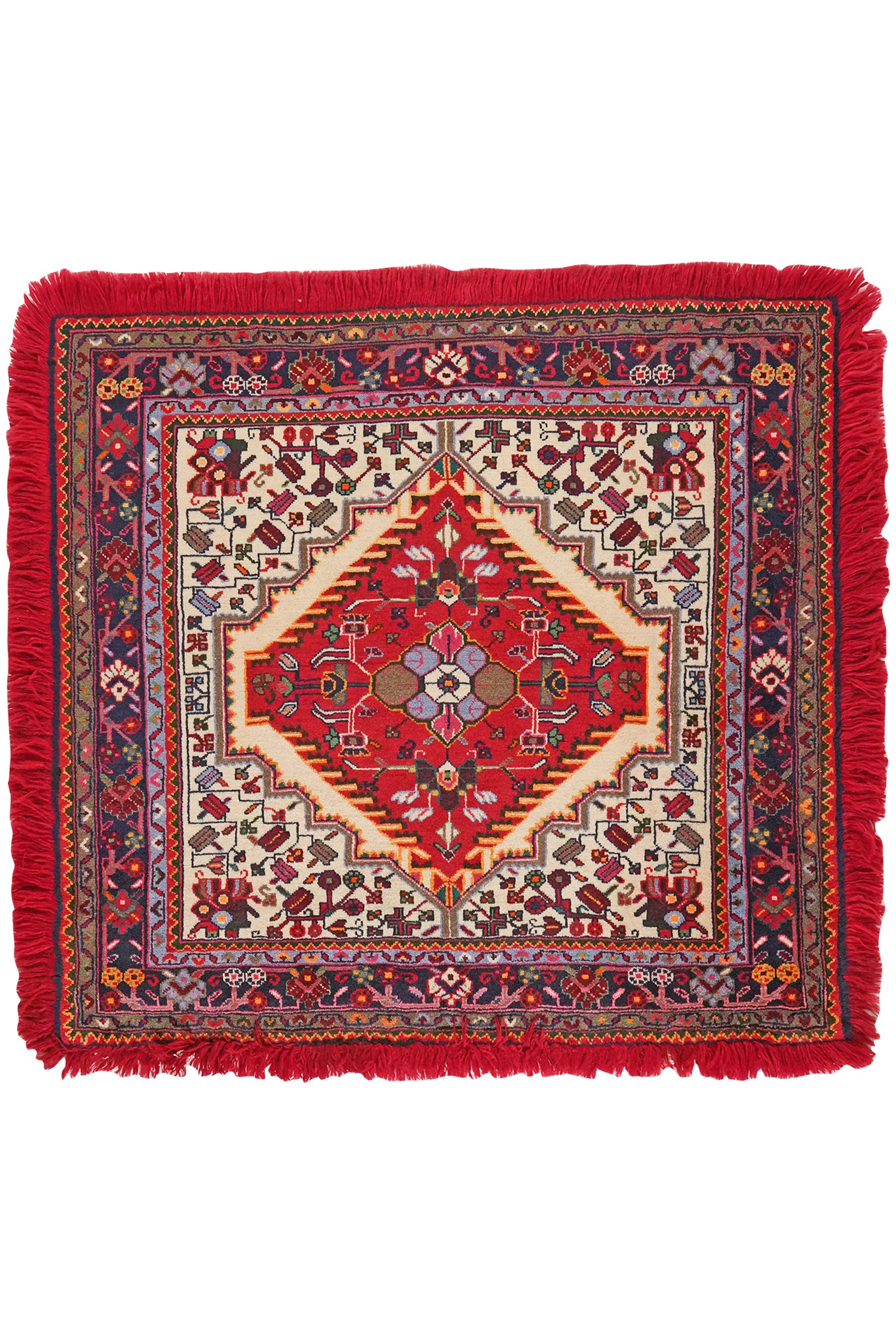 The Toysarghan Vintage carpet in size 115x126cm is an expression of master craftsmanship and cultural history. These carpets are known for their dense knotting and the use of hand-spun wool, which gives them a unique texture and durability. The designs are often inspired by the nature and lifestyles of the Gashgai and Lori nomads who make these carpets. They are not only decorative but also functional, as they bring warmth and comfort to any room.
