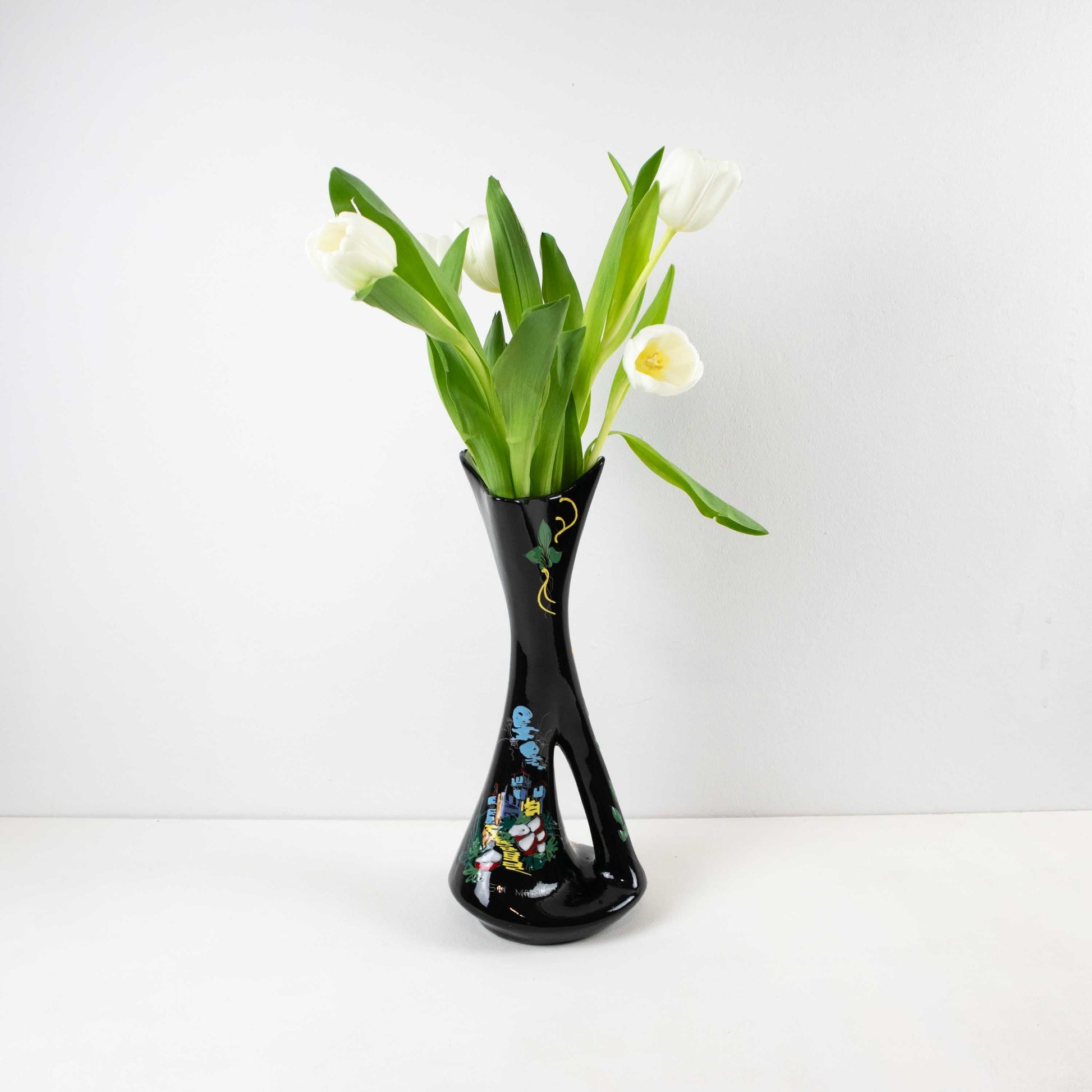 The vase was handmade in Italy in the 1960s in the workshop of Ceramica Fratelli Meloni. With a faded stamp of the manufacturer on the bottom, it is an authentic piece of Italian craftsmanship. Its expressive organic shape and the view of San Marino that adorns it give it a special beauty and character. It is perfect as a decorative element and gives any room a special atmosphere.
