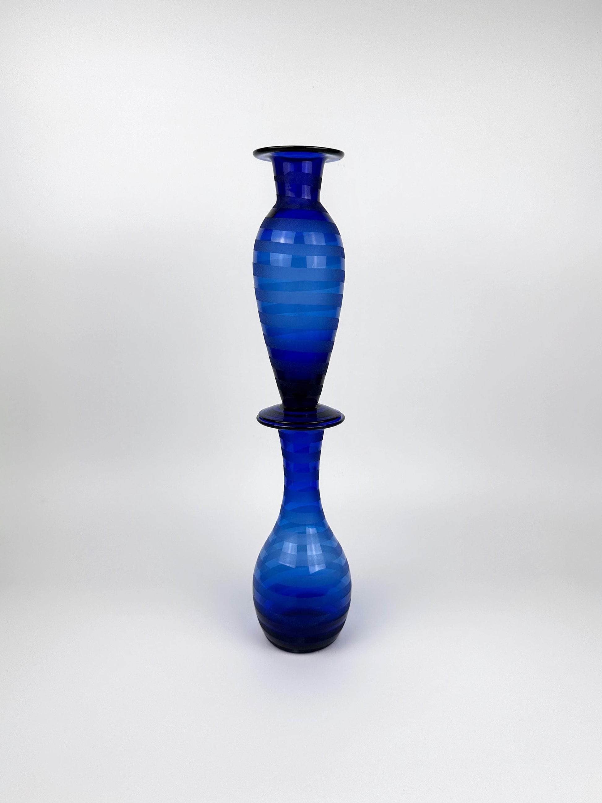 Vintage Vase Cobalt Blue Stripes Swirl 90s Set of 2