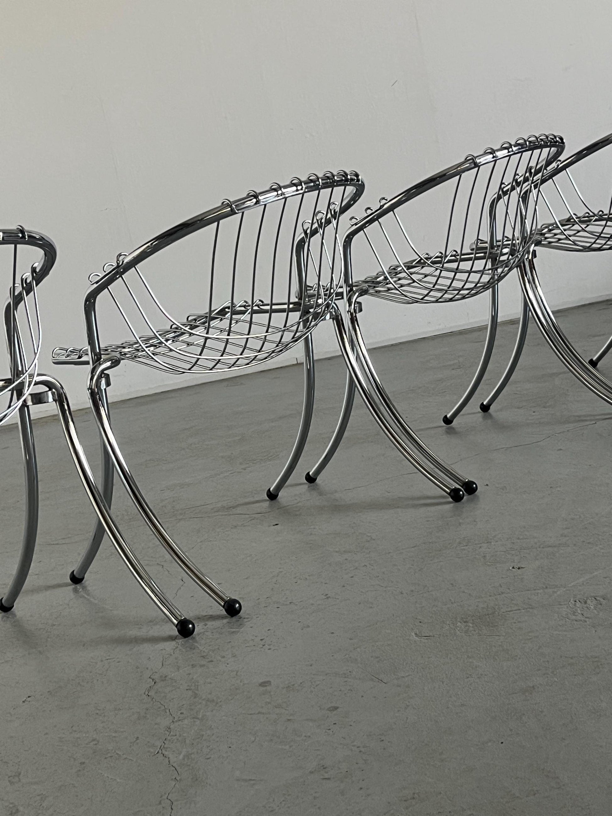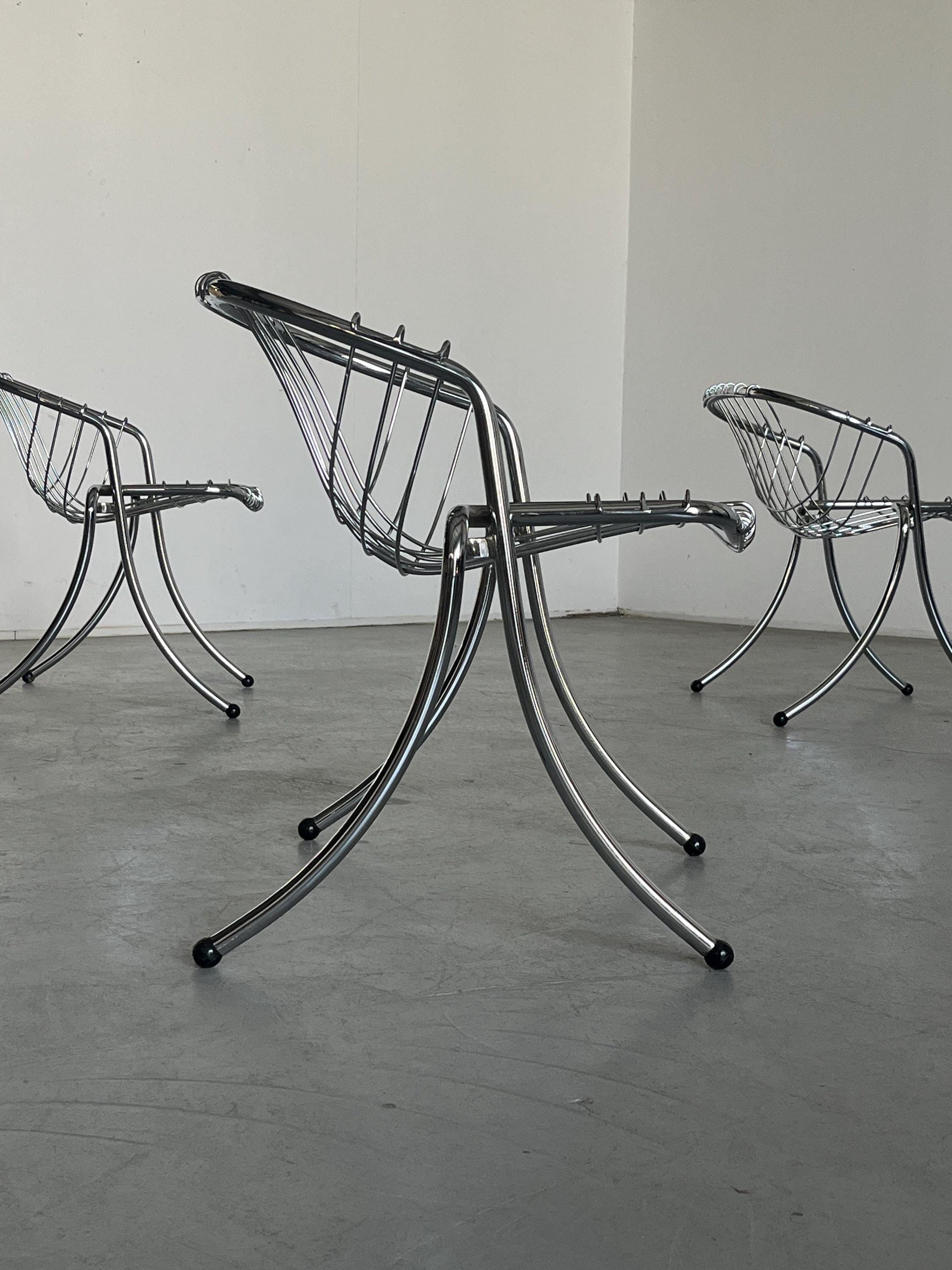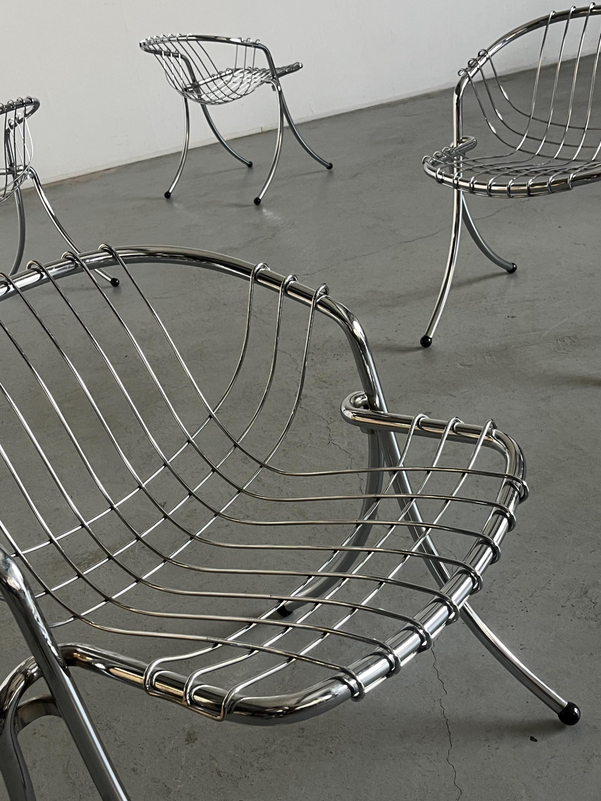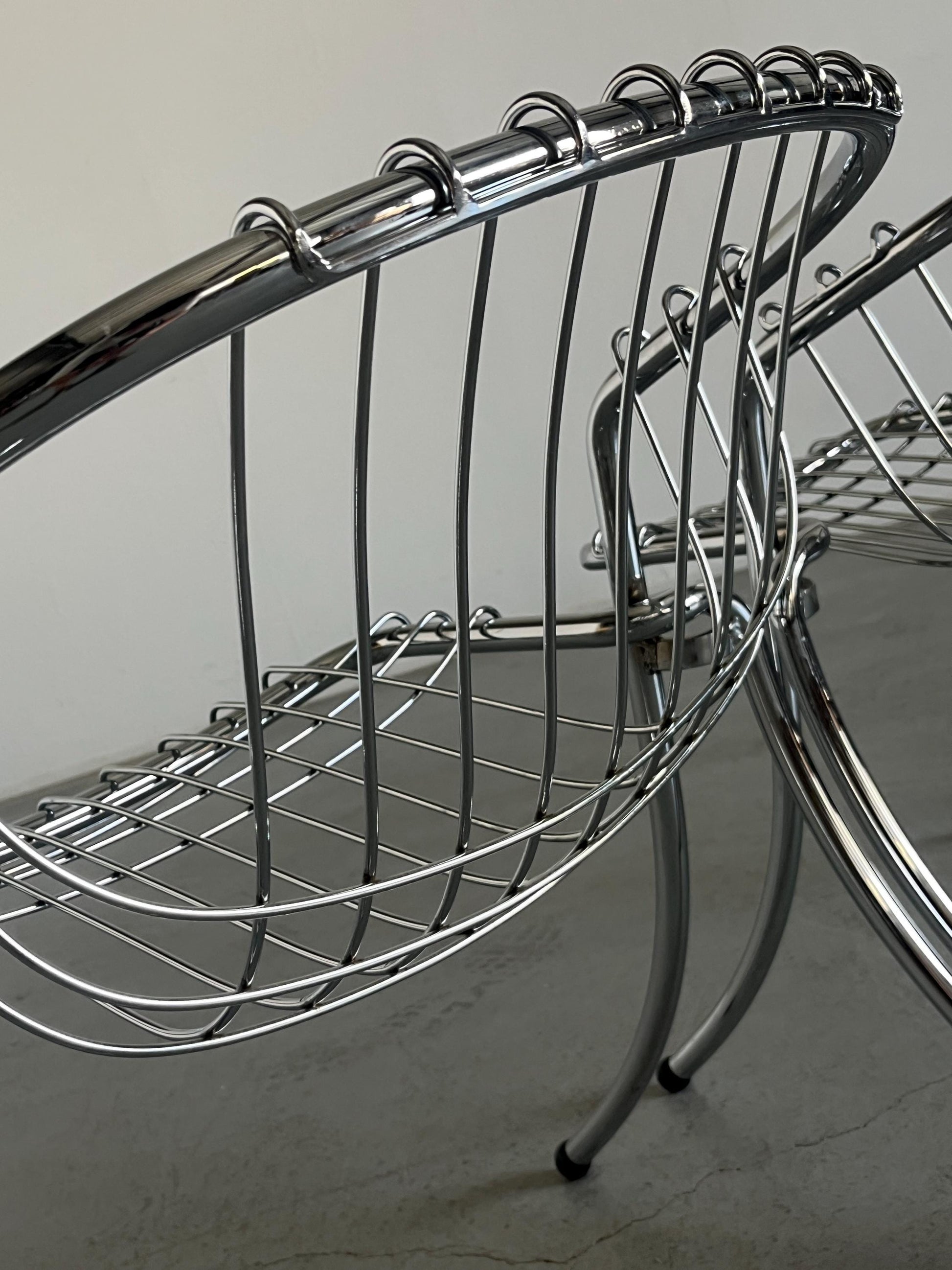 With this vintage armchair, you'll bring home a piece of design history in excellent quality. The combination of chrome-plated steel and delicate wire gives the chair a timeless elegance that perfectly complements both modern and classic interiors. A must-have for lovers of Italian design and collectors of mid-century modern furniture.