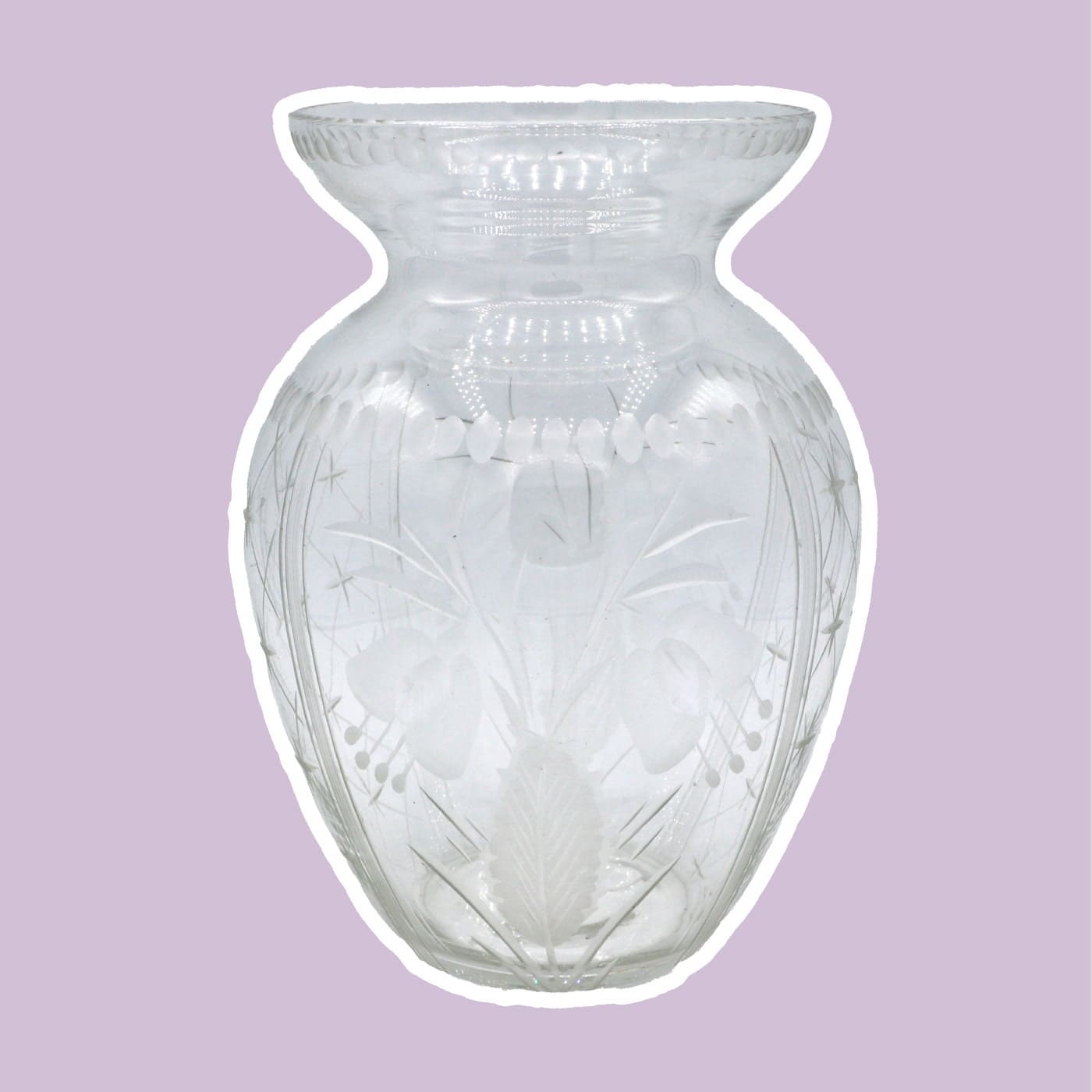 Vintage Flower Vase Crystal from Art Deco 1920 1930 Floral Dots Lines 30s 20s
