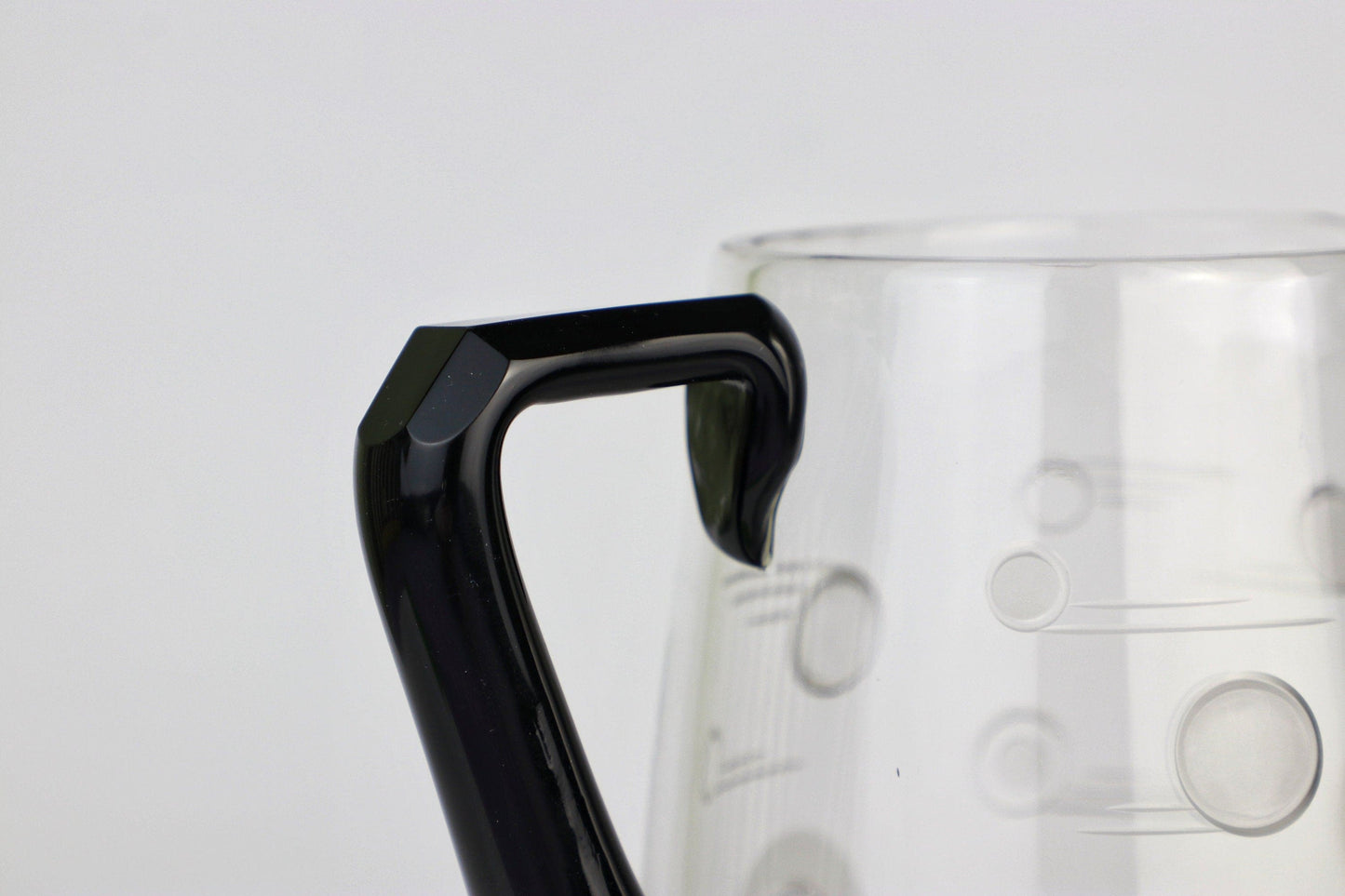 - Material: Transparent glass with black, ground handle