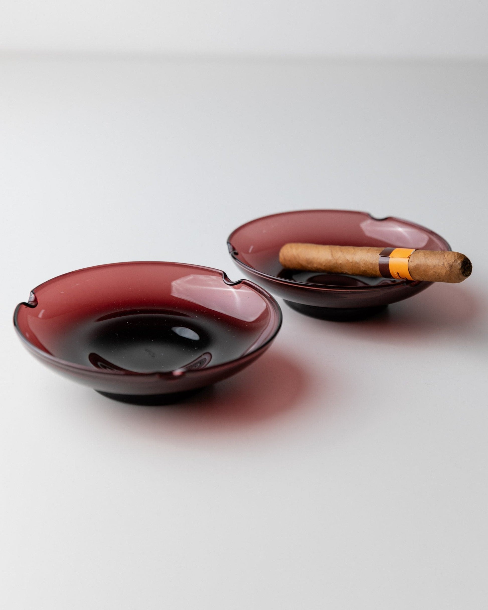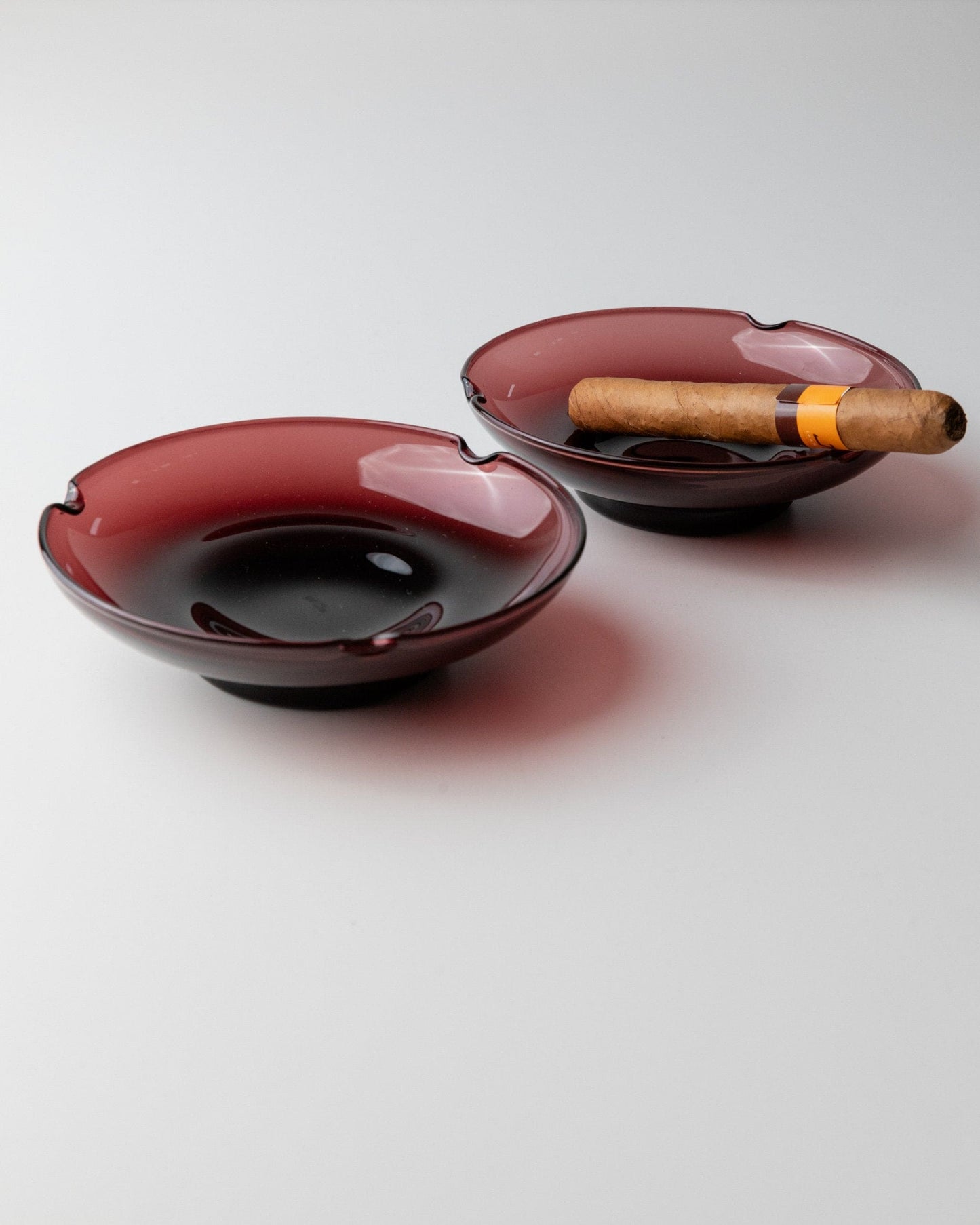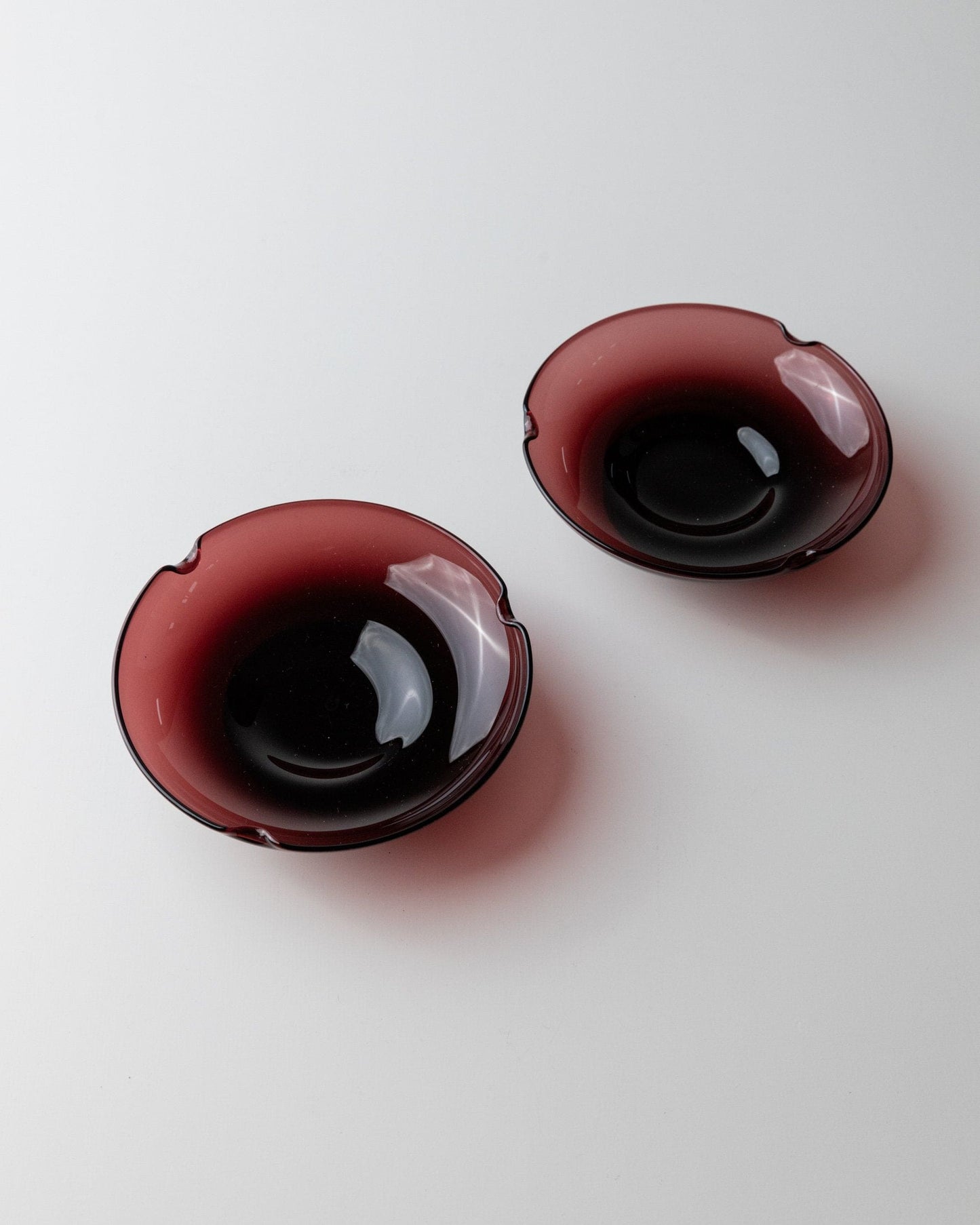 Vintage Ashtray Murano Glass Blackberry Dark Red Mid-Century Set of 2