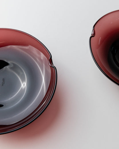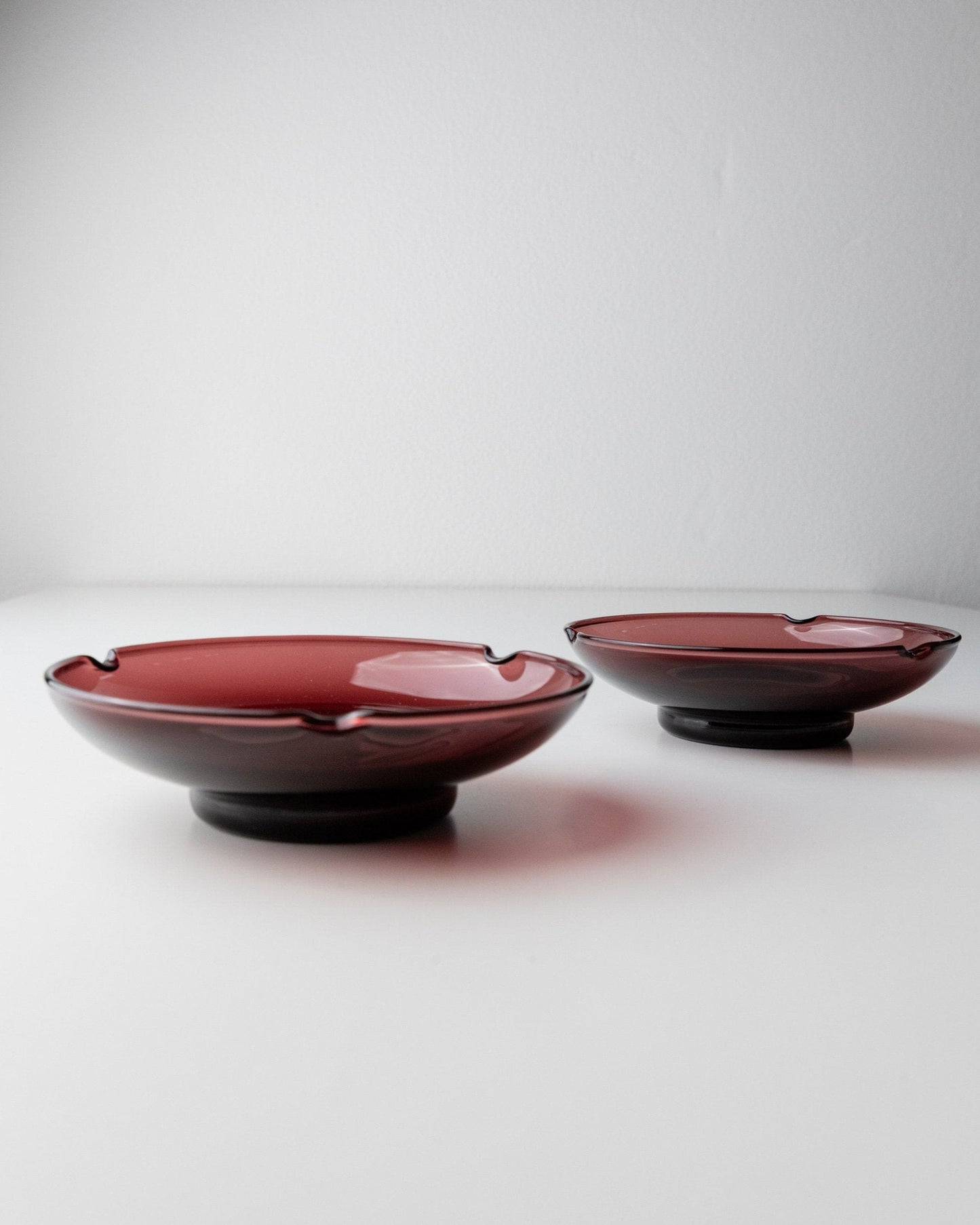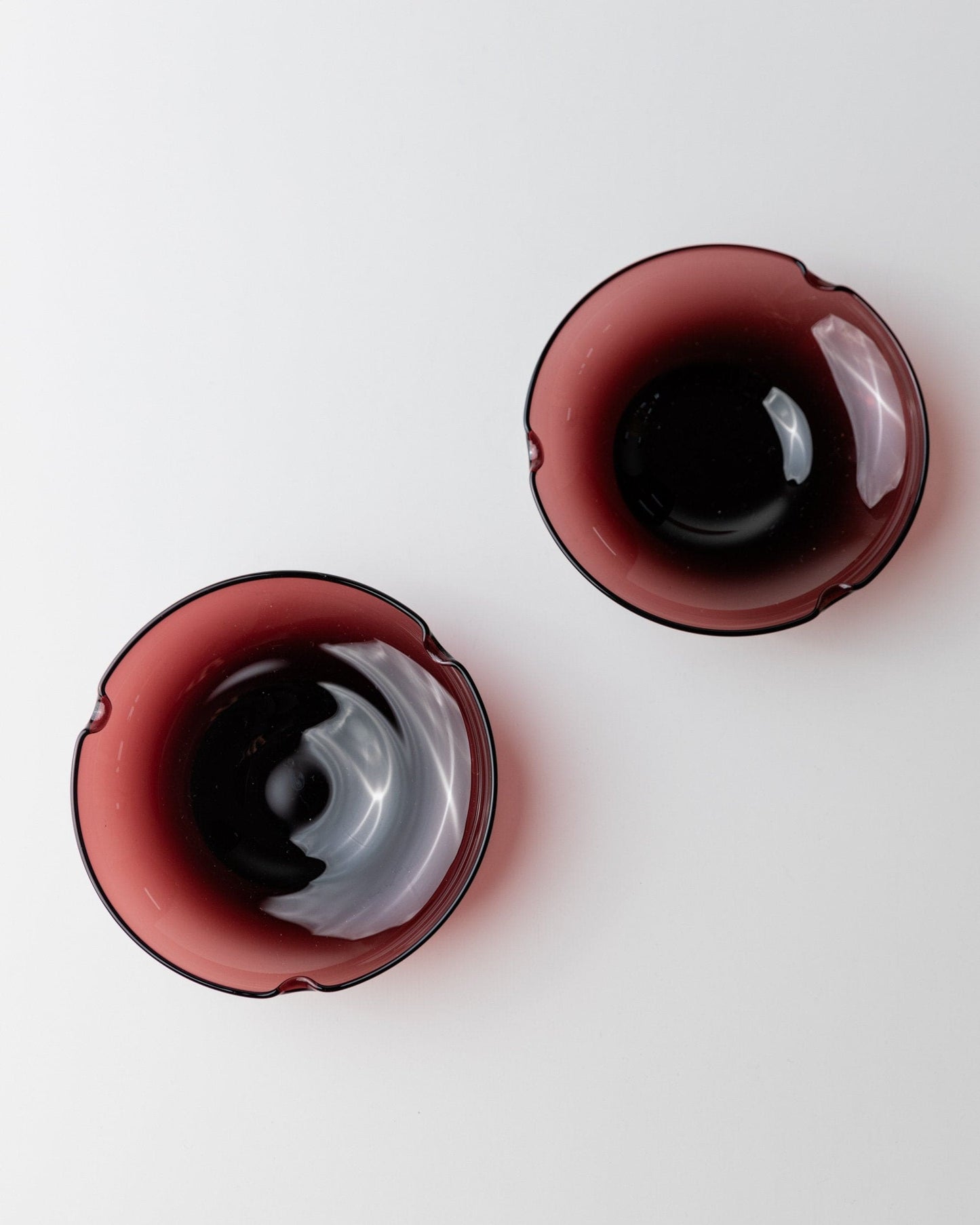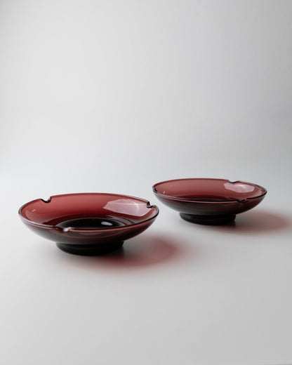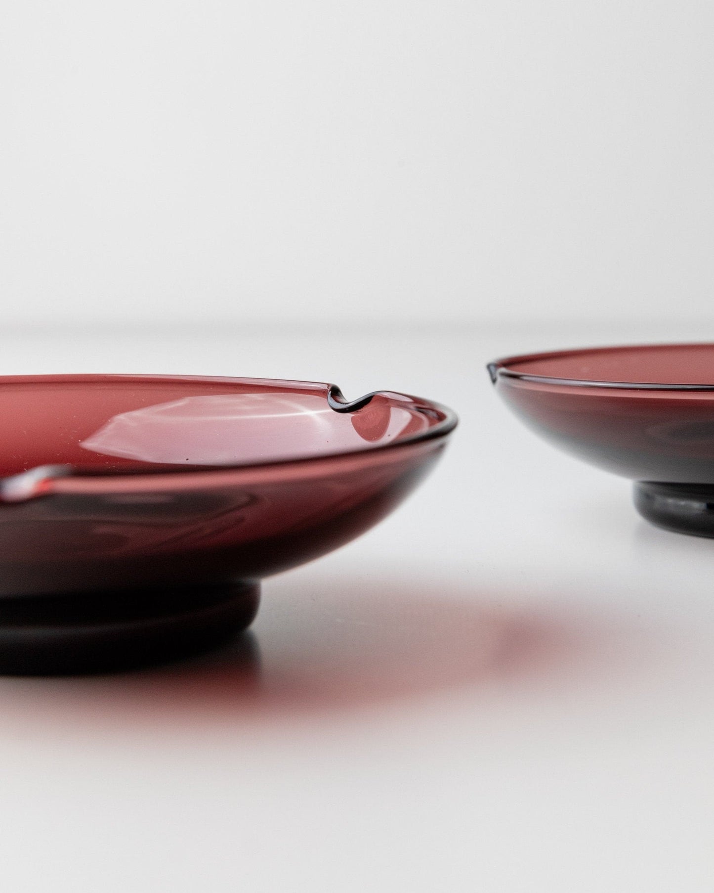 Vintage Ashtray Murano Glass Blackberry Dark Red Mid-Century Set of 2