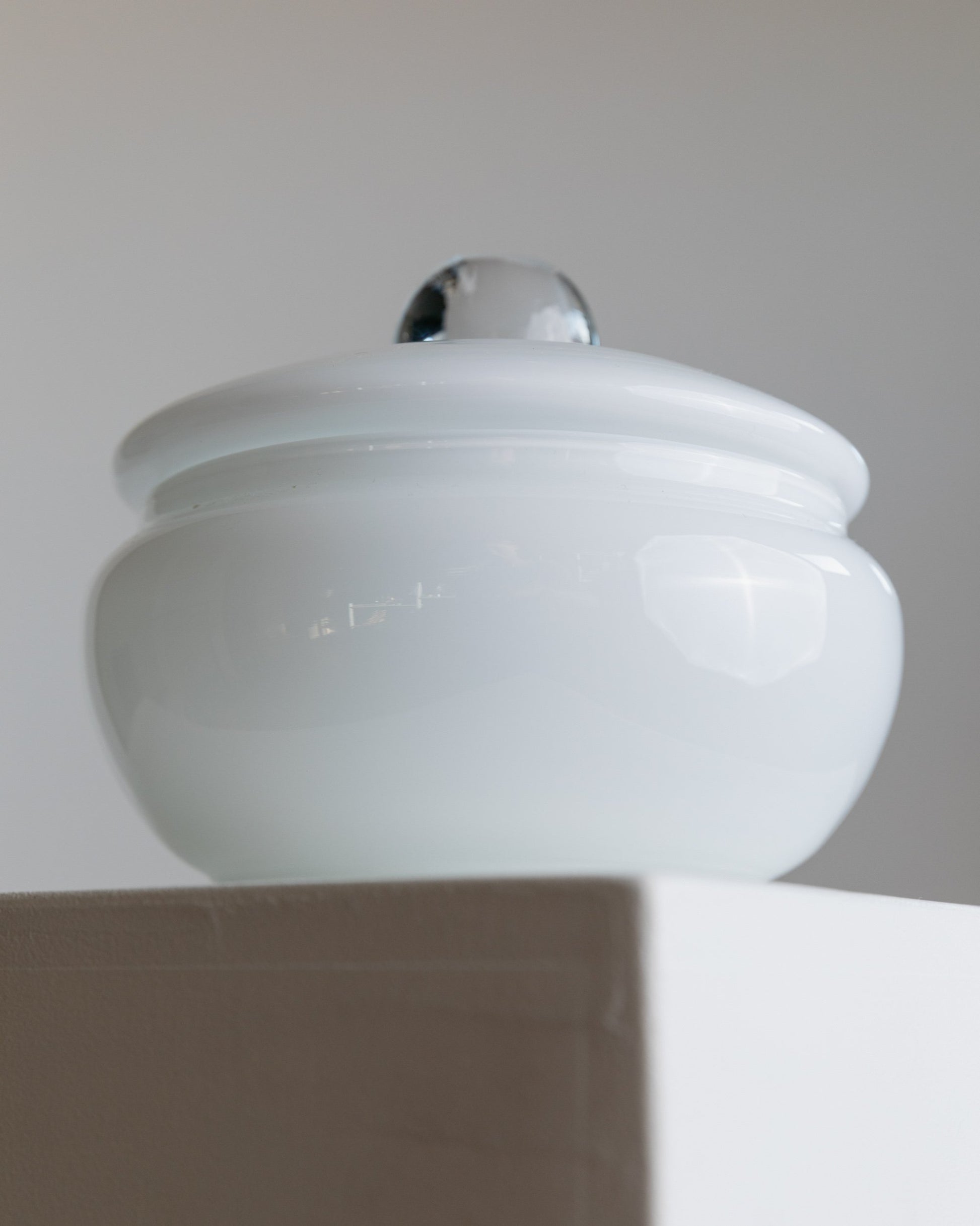 This candy dish is an authentic example of Space Age design and brings a touch of vintage charm to your home. Made from high-quality white and transparent glass, it is a testament to the excellent craftsmanship that Murano is known for. Let yourself be enchanted by the timeless elegance of this candy dish and enjoy a piece of Italian design history.
