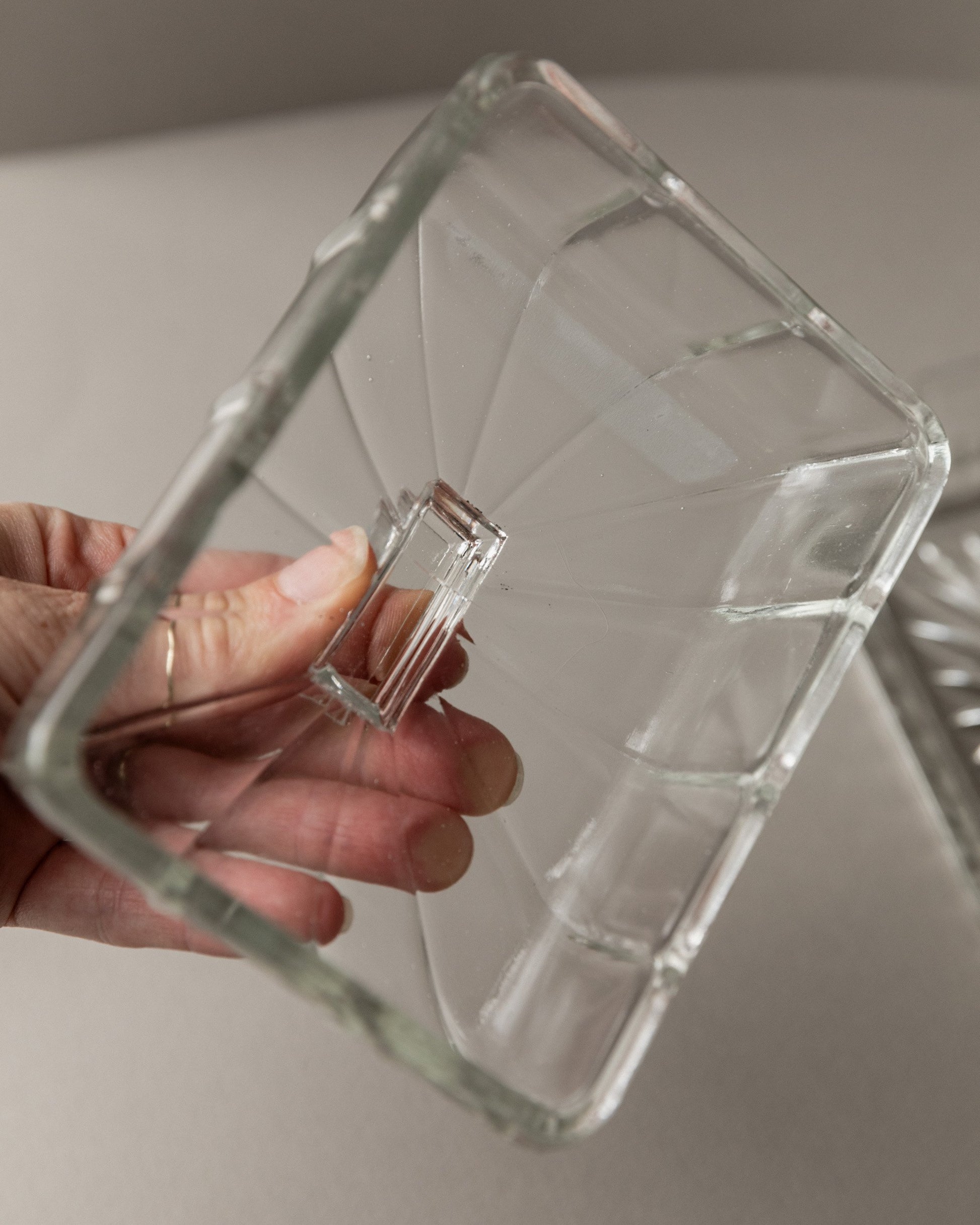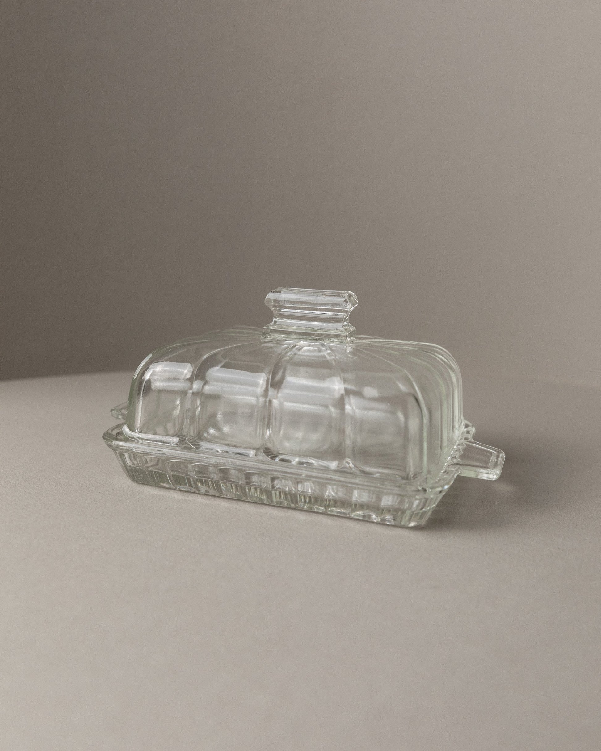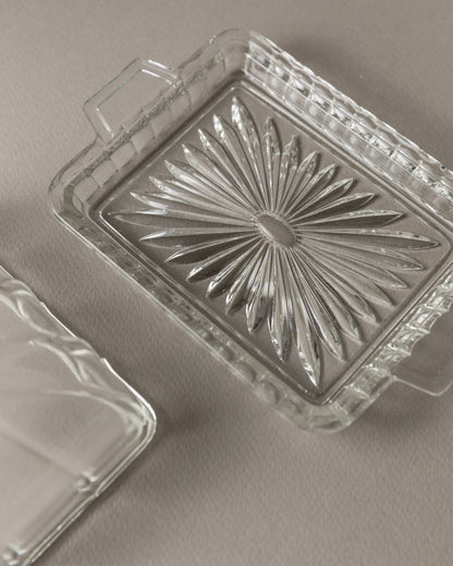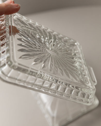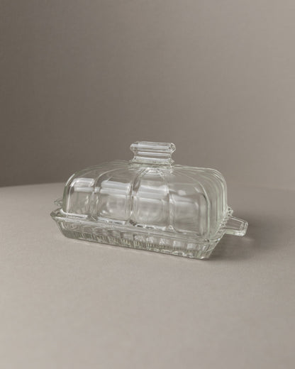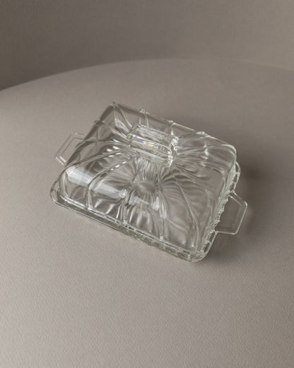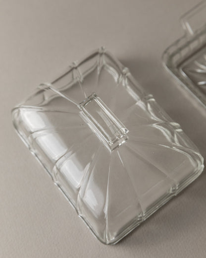 Vintage butter dish glass clear Art Deco Italy 1940s