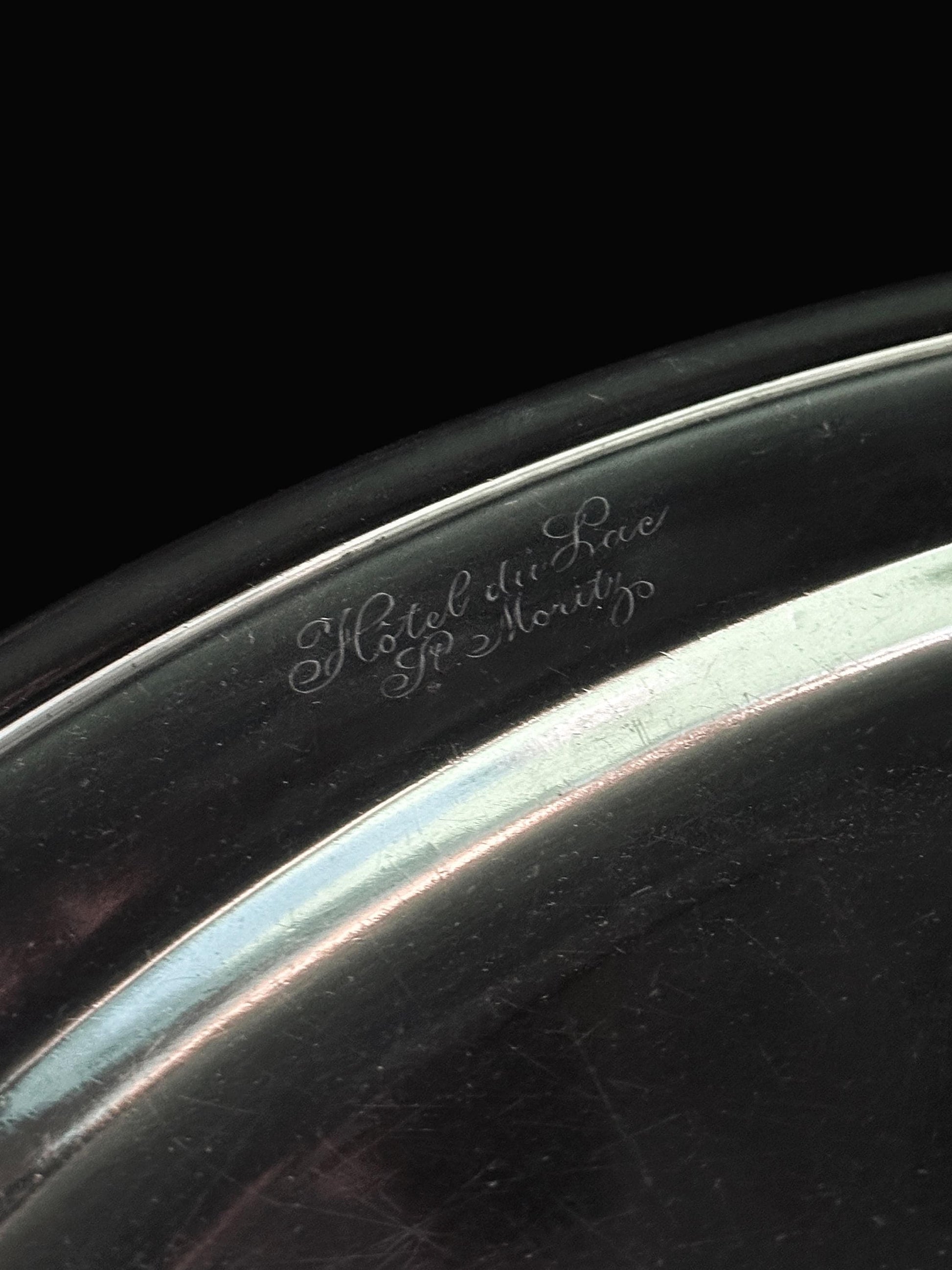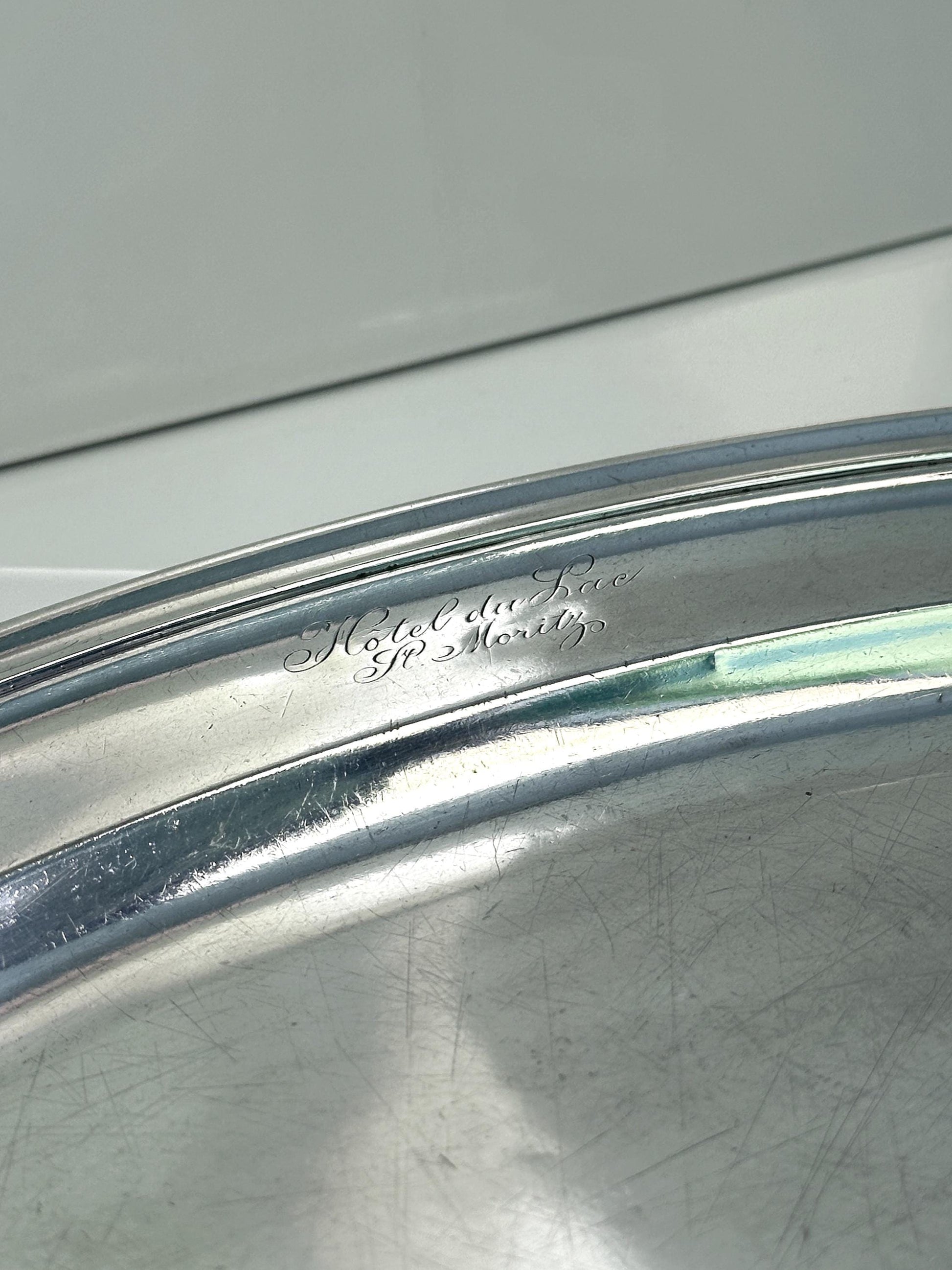 Experience timeless elegance with this vintage Christofle tray, dating back to the legendary Belle Epoque. The heavy silver-plated tray embodies the finest Art Deco aesthetics and was once used in the renowned Grand Hotel du Lac St. Moritz. As an authentic collector's item, it brings the glamour and history of the 1920s and 1930s directly into your home. The high-quality craftsmanship and iconic design make this tray a true highlight for lovers of vintage, mid-century modern, and Space Age objects.