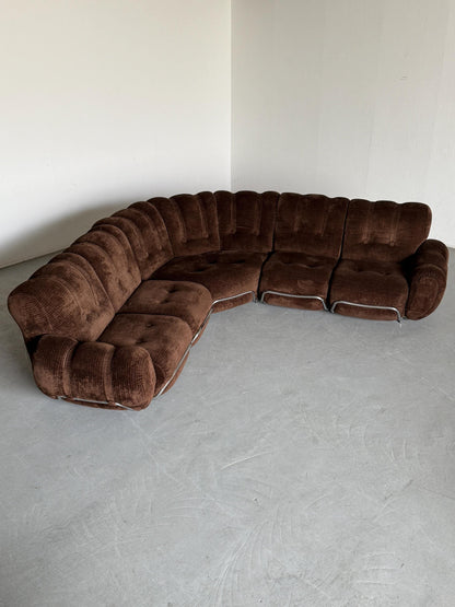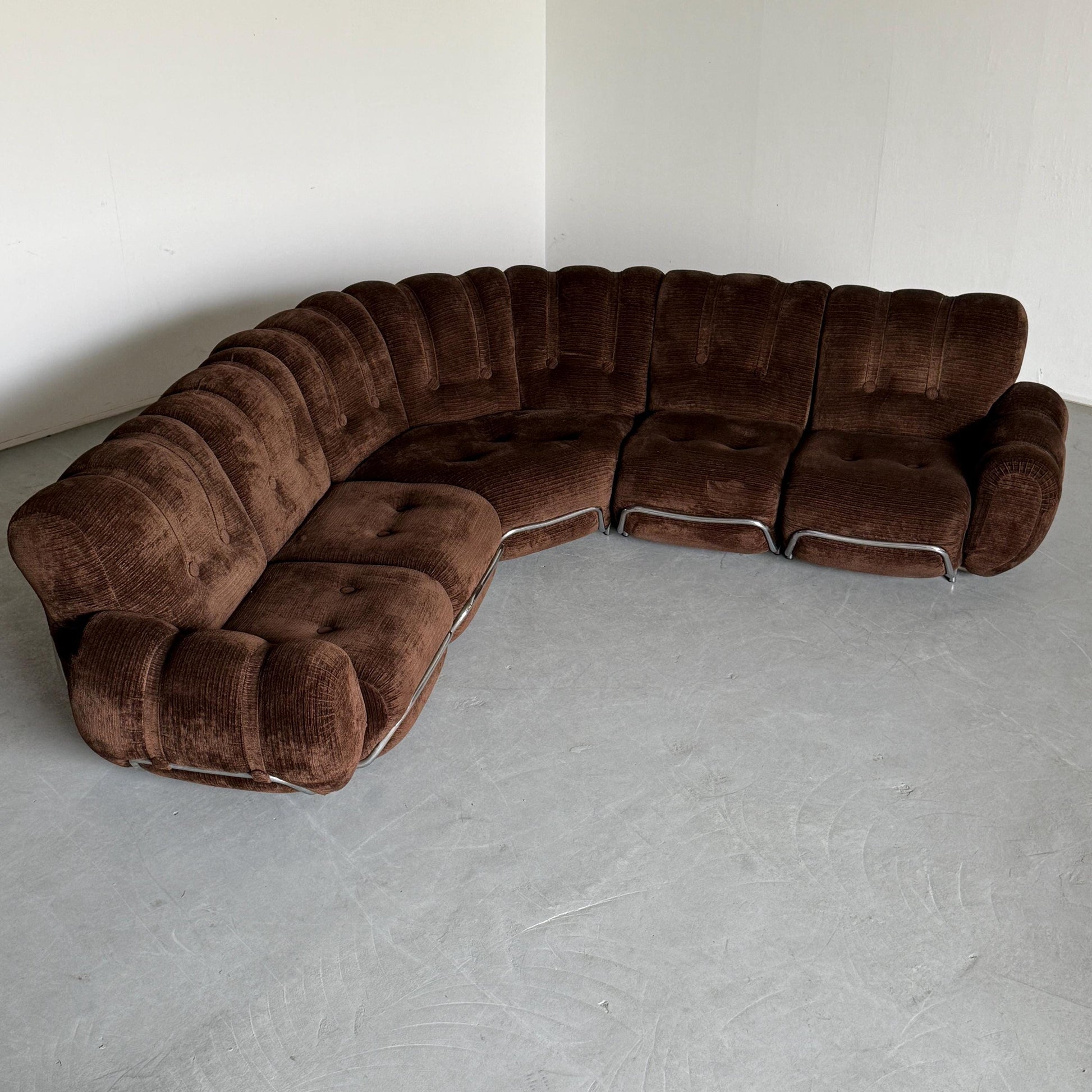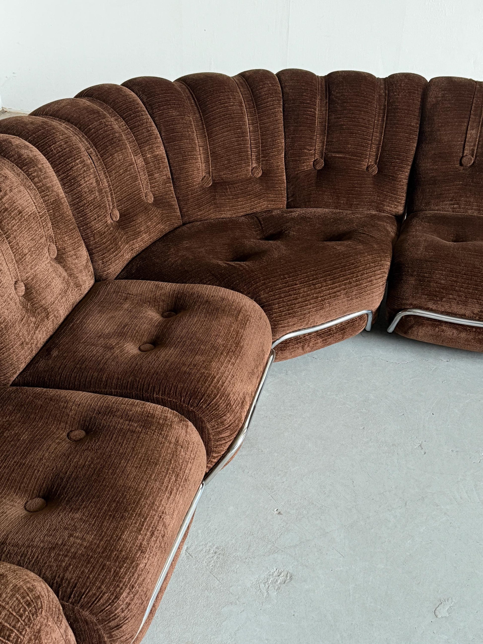 Vintage sofa set of 5 modules, Italian, black, 1970s, curved chrome frame