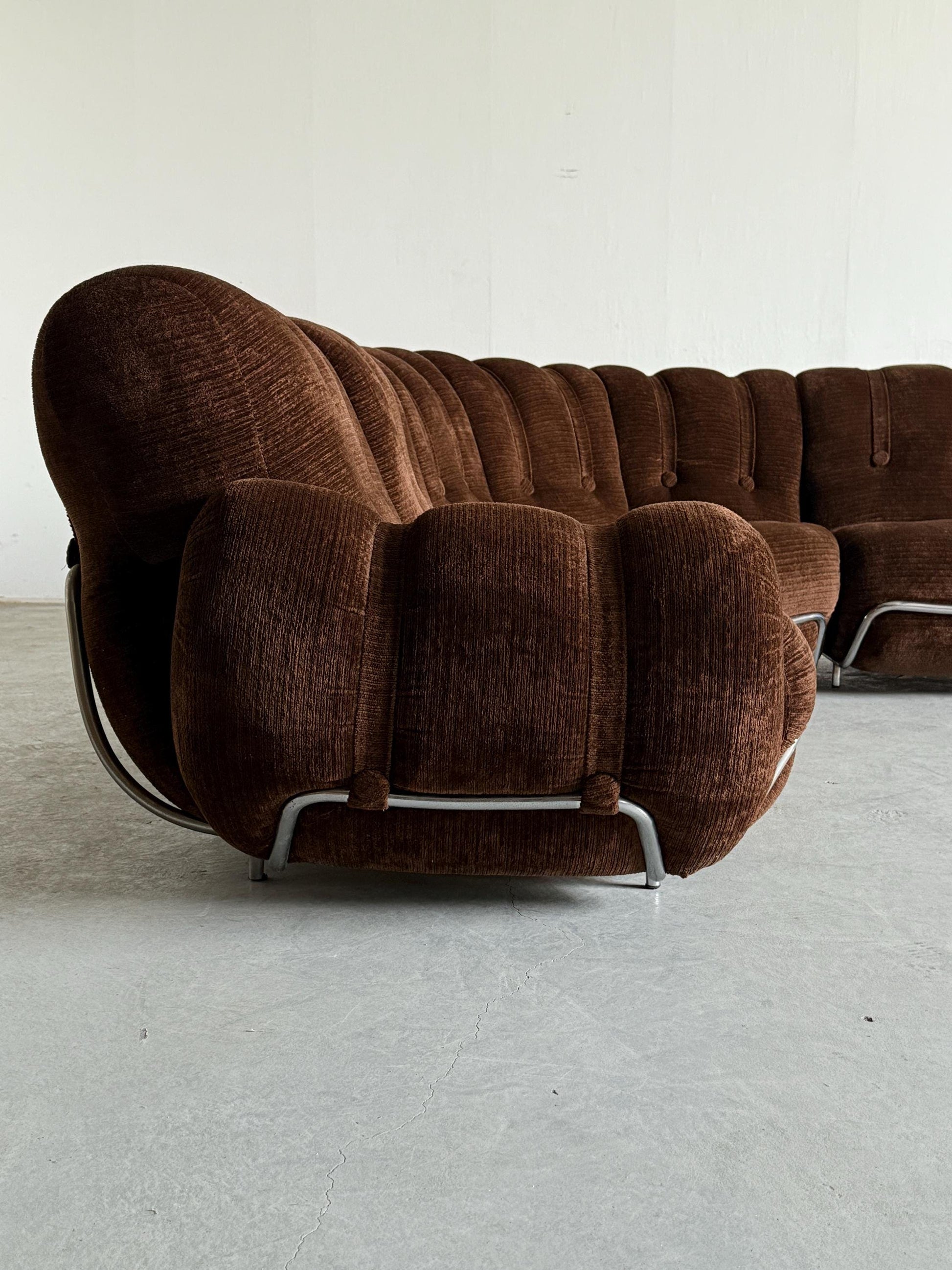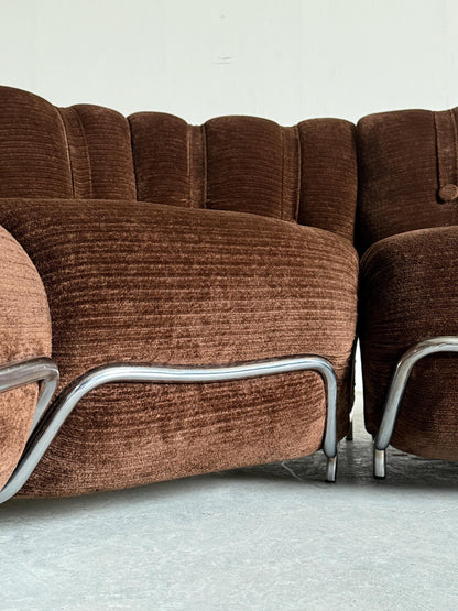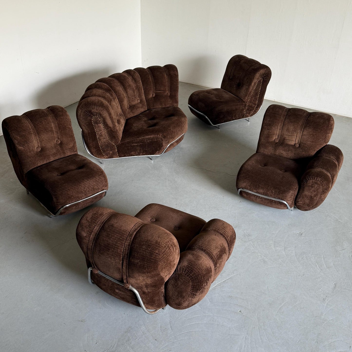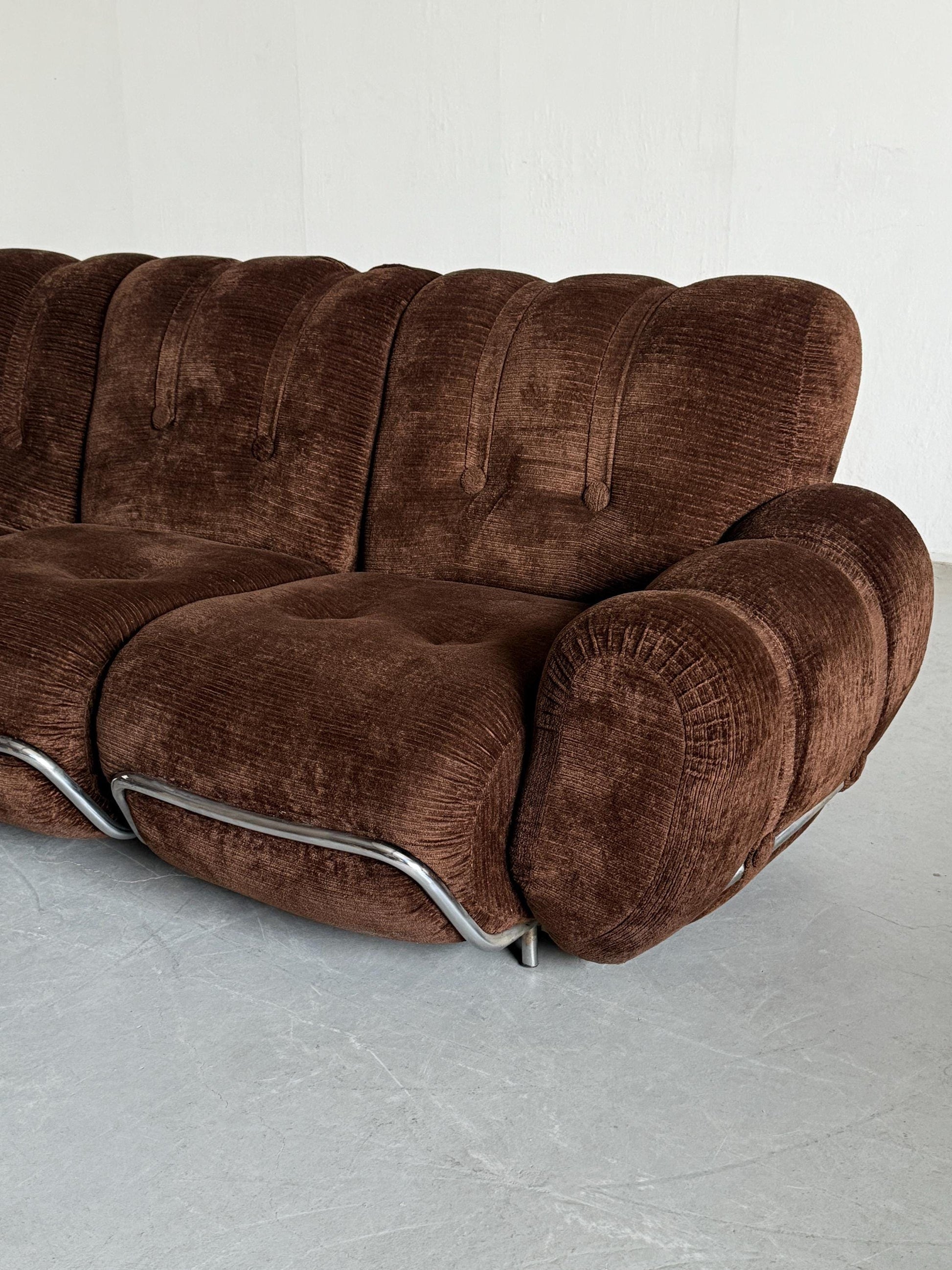 Vintage sofa set of 5 modules, Italian, black, 1970s, curved chrome frame