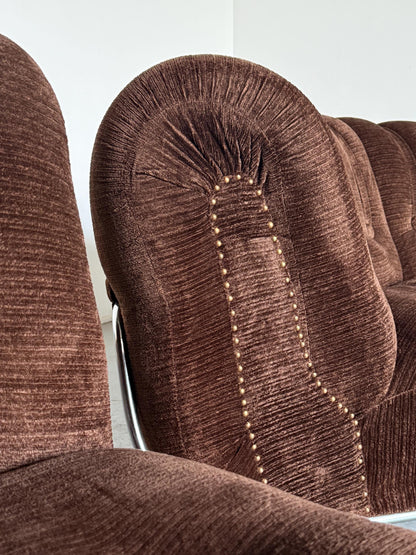 Vintage modular seat by Loschi+Malavasi in brown checkered 1970s Italy set of 7