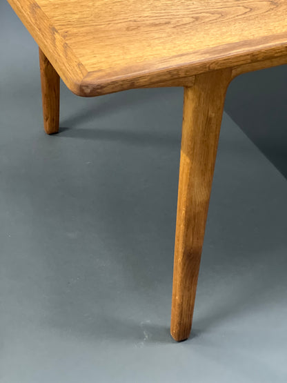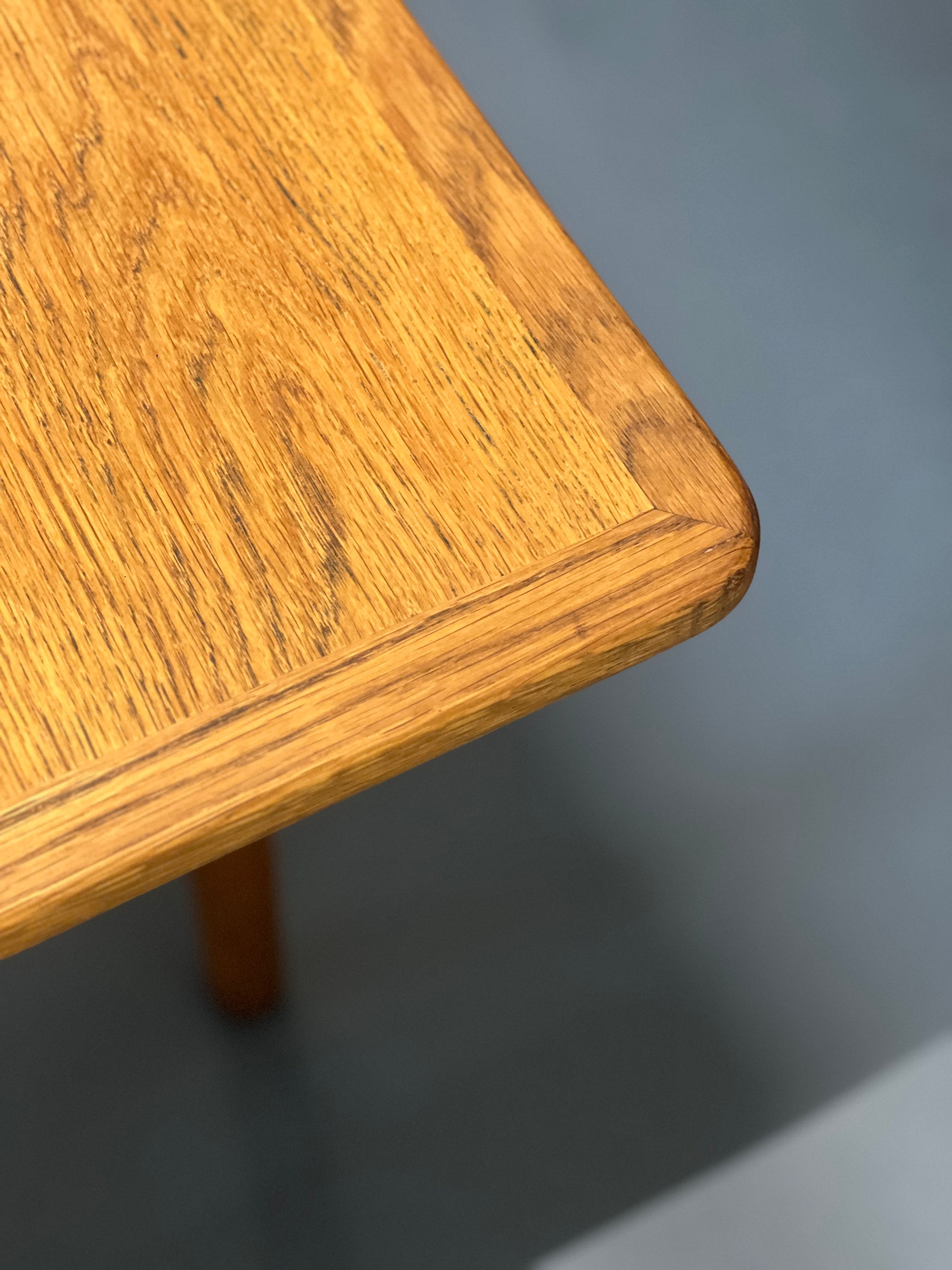 A dining table by Thorald Madsen that exudes tranquility. Clean proportions, 180 by 90 centimeters, oak with a naturally grown patina. Mid-century modern, with a subtle hint of space age. The craftsmanship is high-quality, the design thoughtful. A centerpiece in the dining room or a spacious workspace. Here, material, craftsmanship, and dimensions are paramount. A design that blends in seamlessly yet makes a statement. Conceived for longevity, timeless in its effect. The surface speaks of use without sacrificing elegance. A serene focal point in the room.