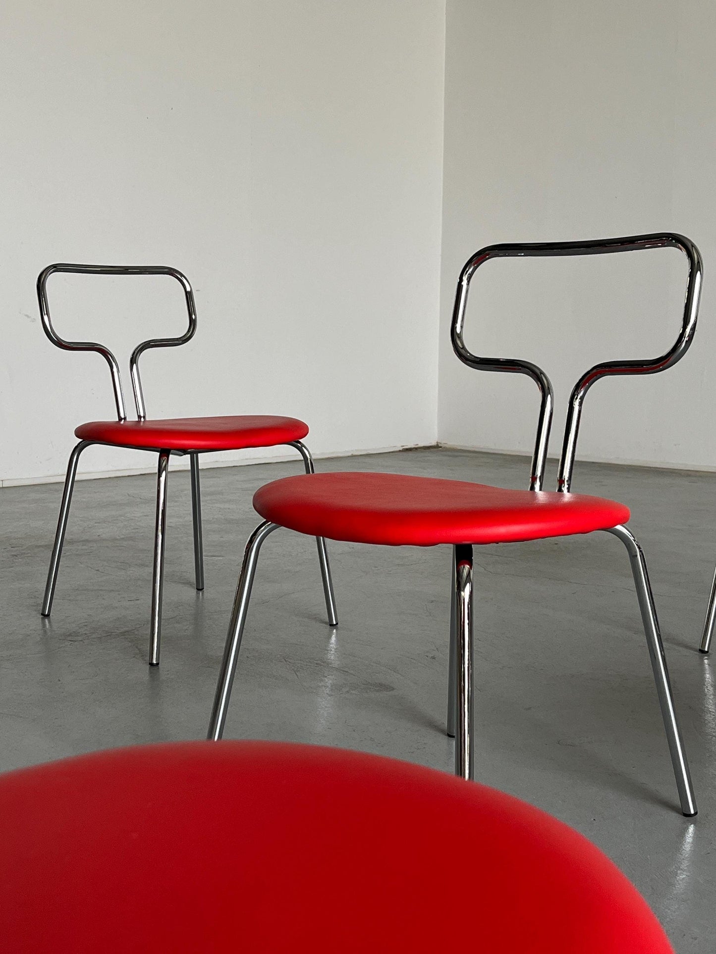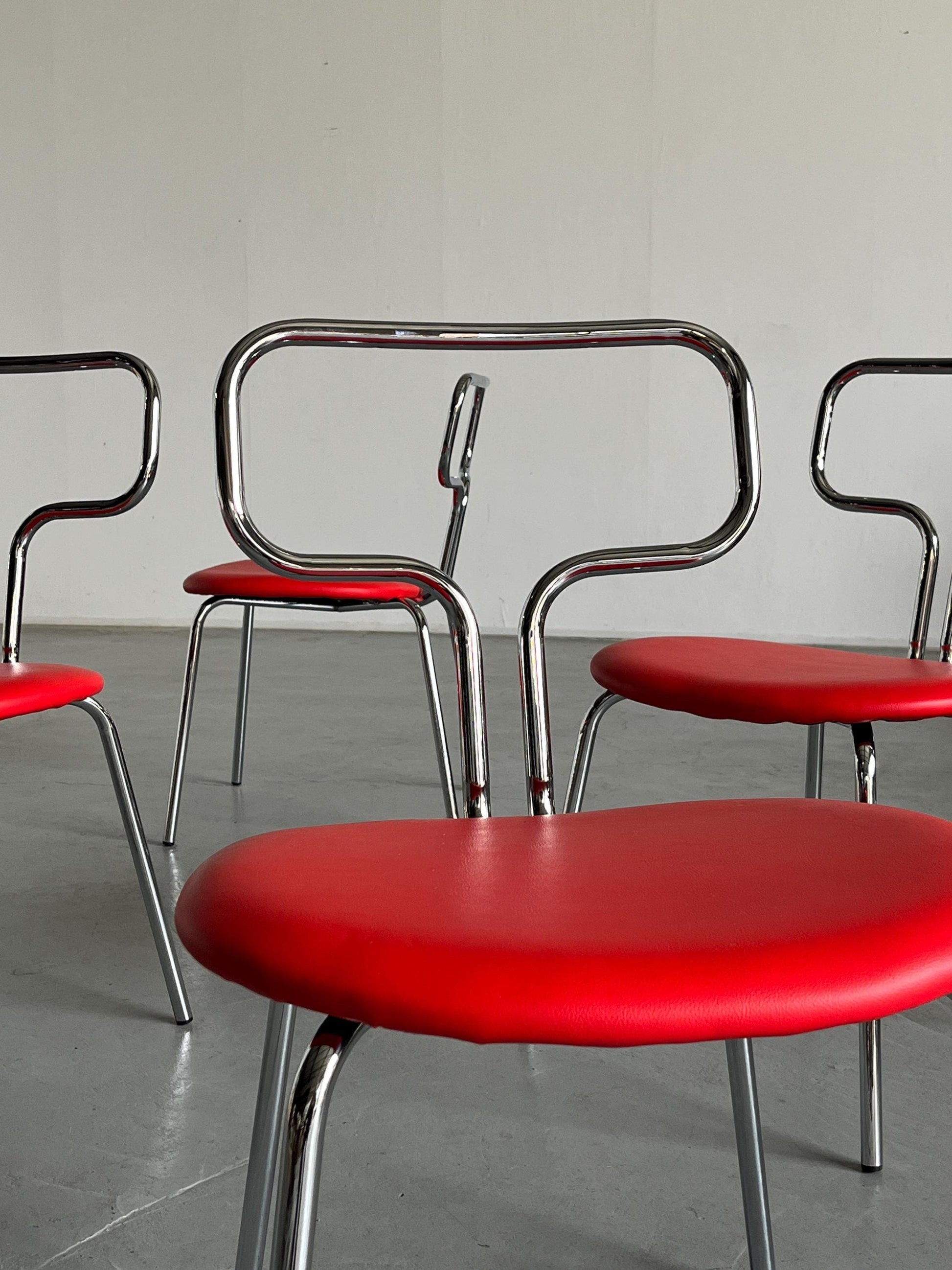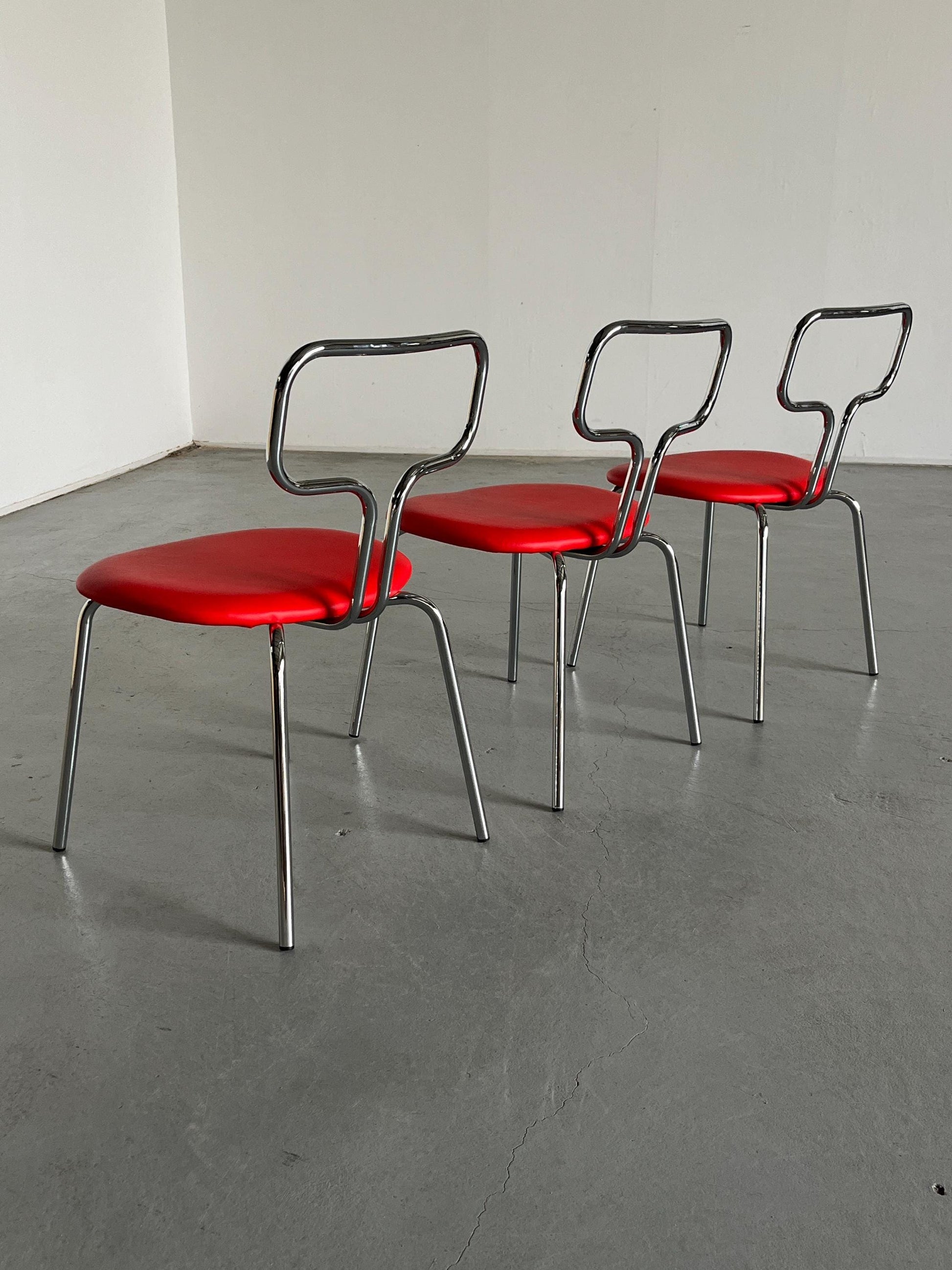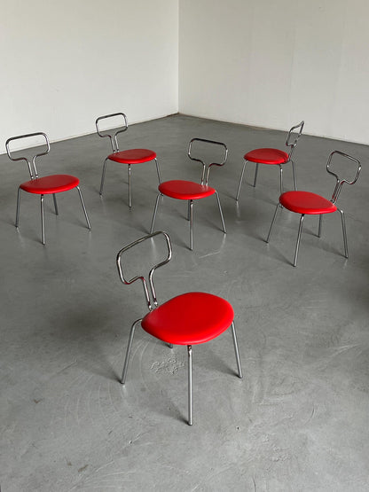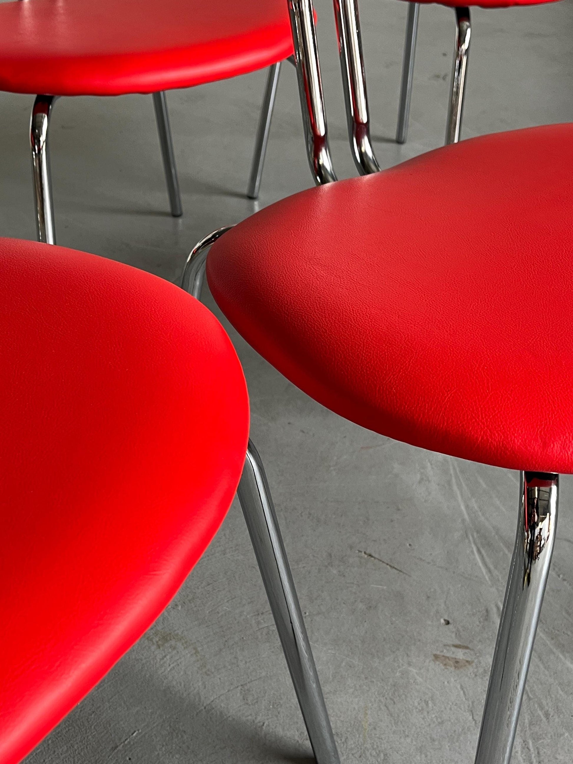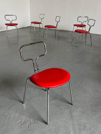 Vintage dining chair Bauhaus design chrome steel and imitation leather